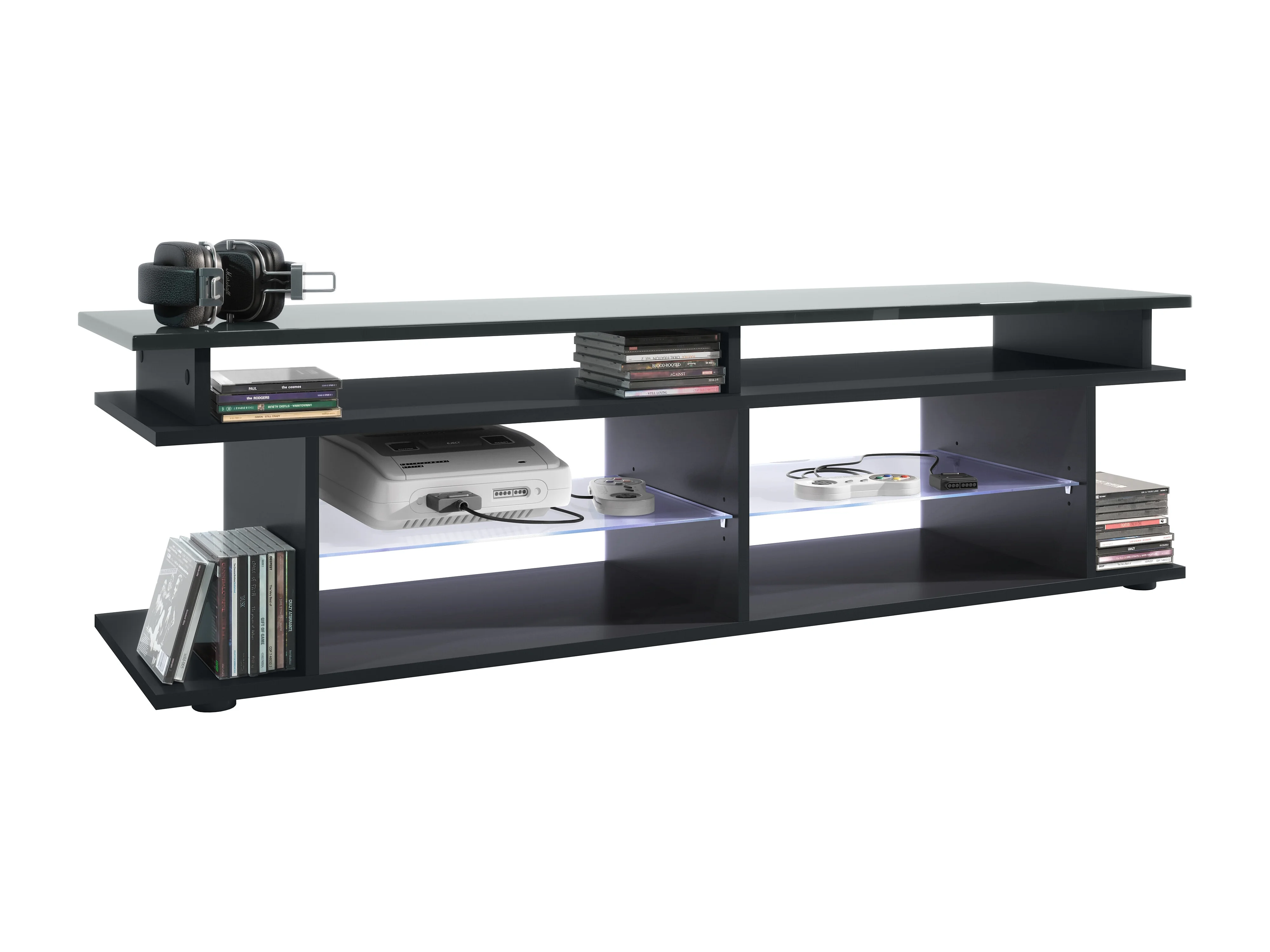 TV Board Movie V3 Game On 138,5 x 39 x 37,5 cm éclairage LED inclus Blanc, caisson en noir mat, élément supérieur en gris haute brillance