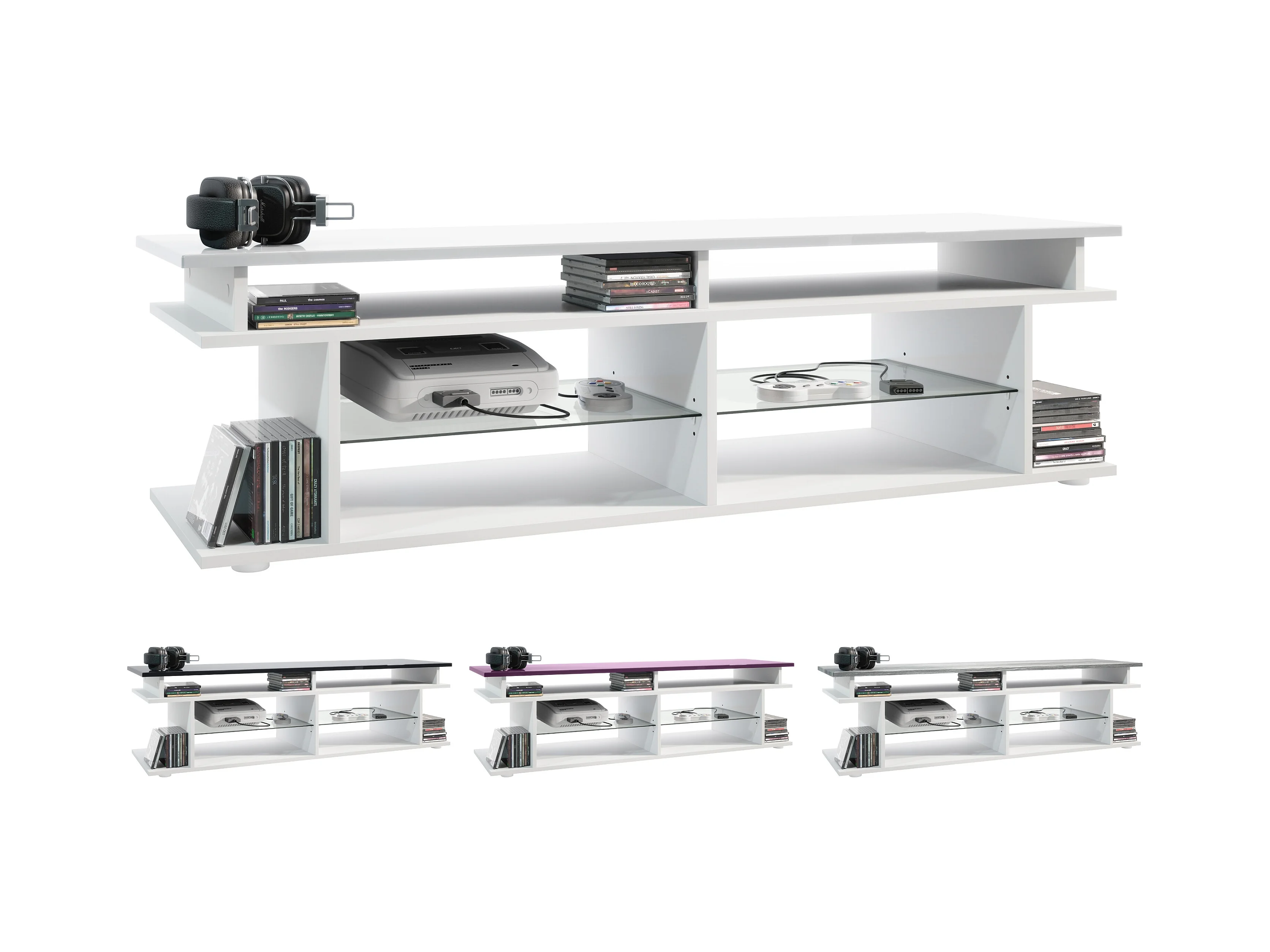 TV Board Movie V3 Game On 138,5 x 39 x 37,5 cm éclairage LED inclus Bleu, caisson en blanc mat, élément supérieur en crème haute brillance