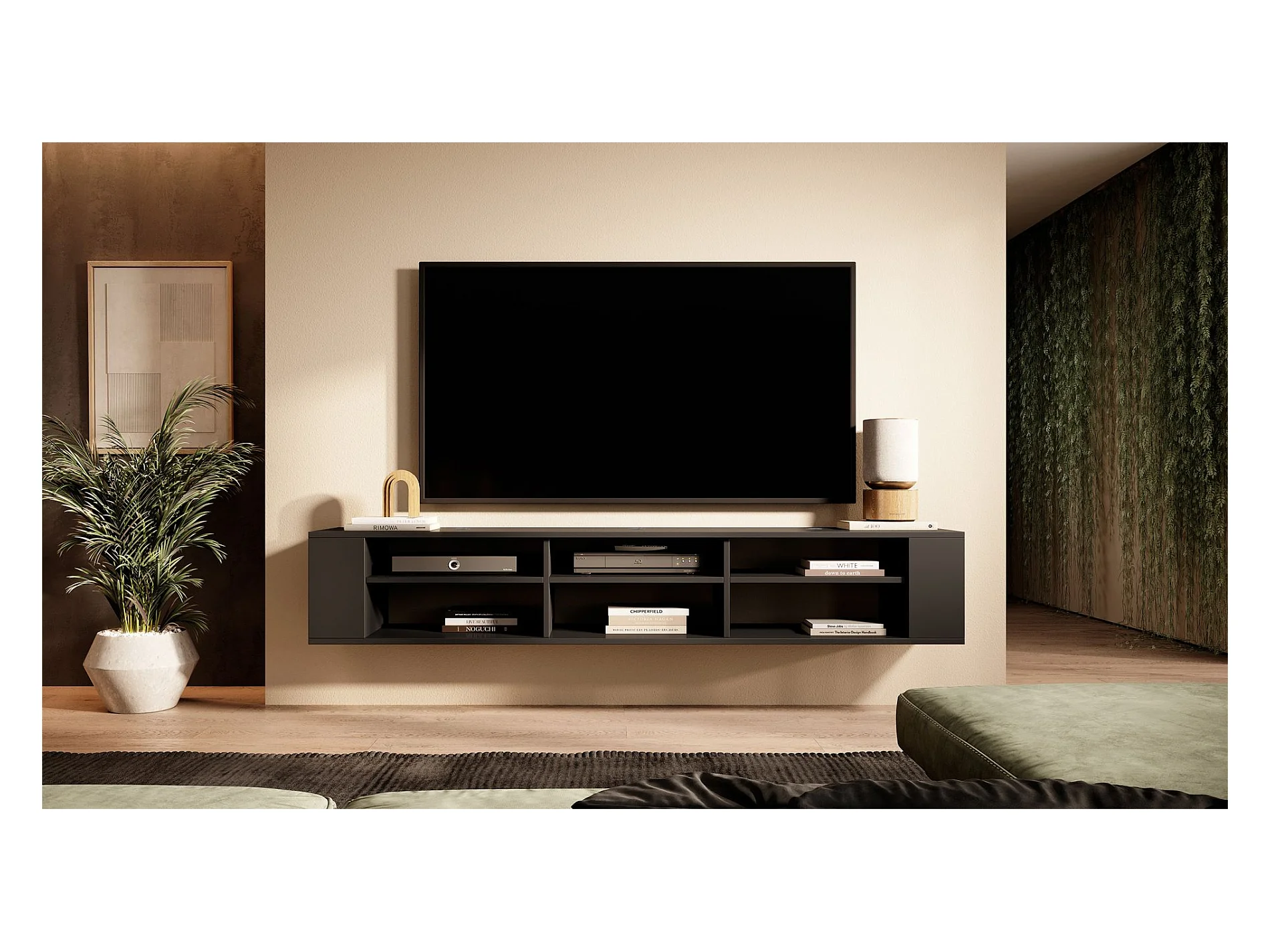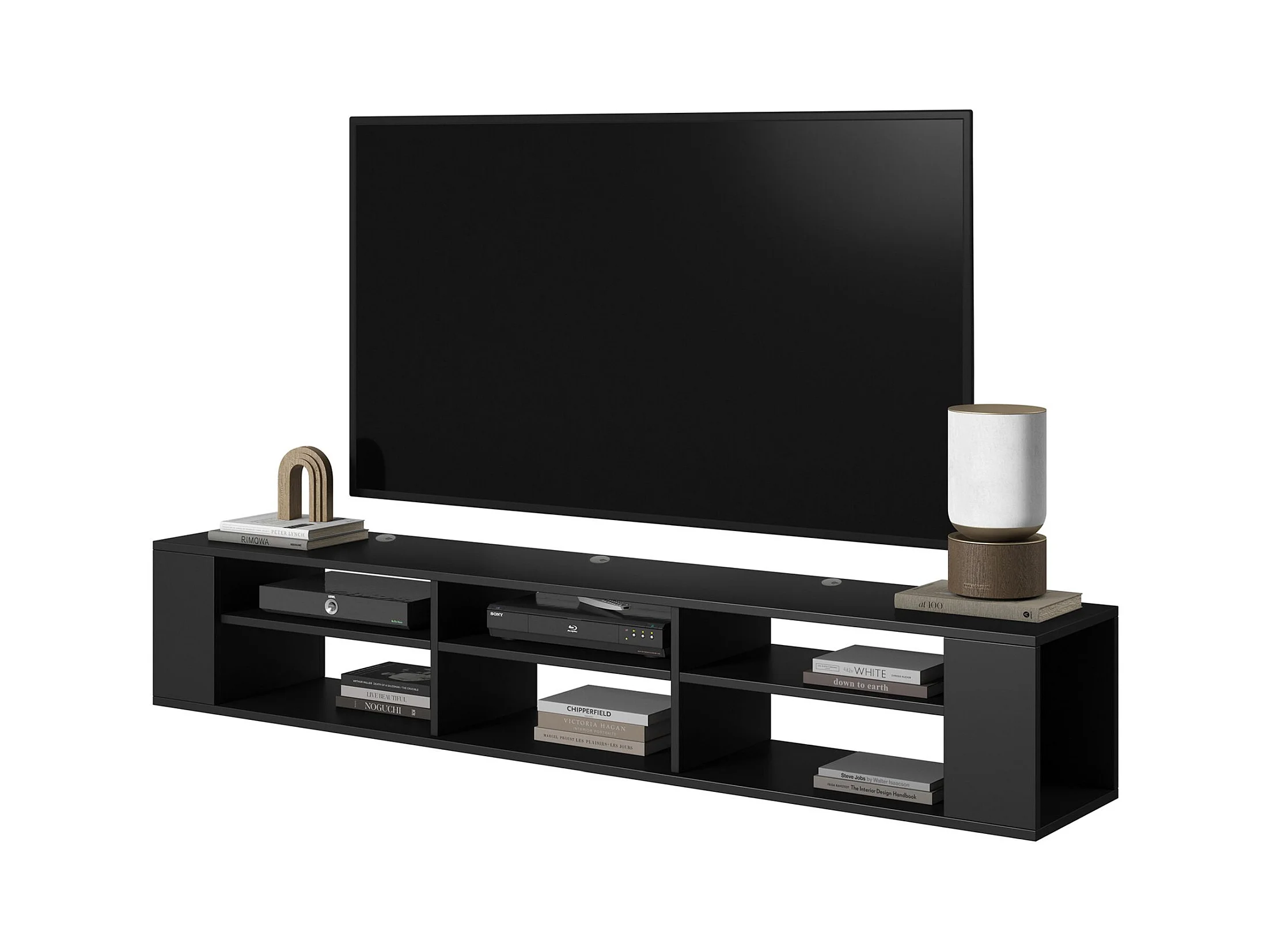 TV-meuble avec 6 compartiments - Noir - 175 cm - WALL