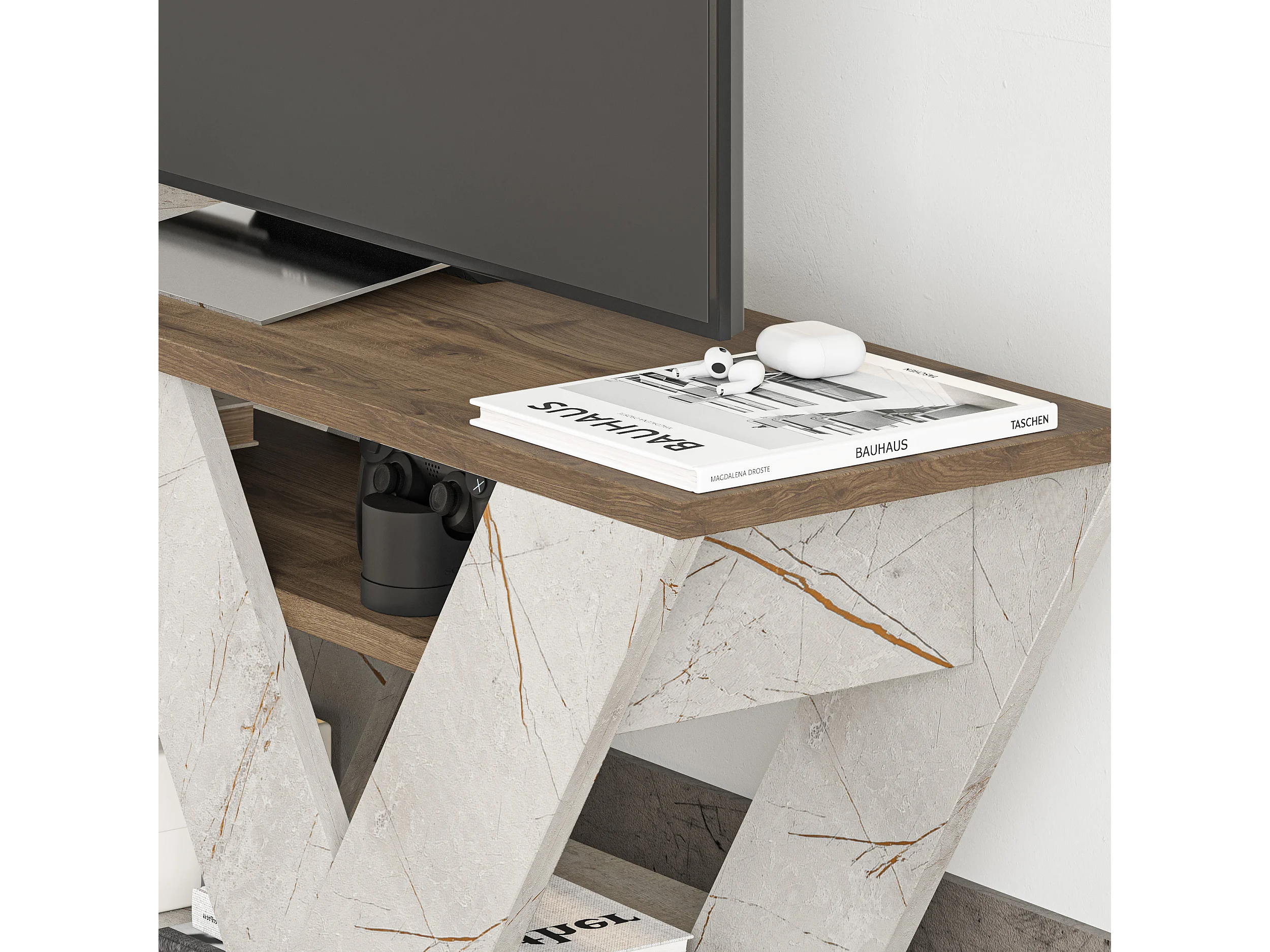 Decortie Chêne Foncé, Effet Marbre Doré 30x110x40cm Meuble TV Jusqu'à 42" Pouces TV's Panneau de Particules Centre Multimédia