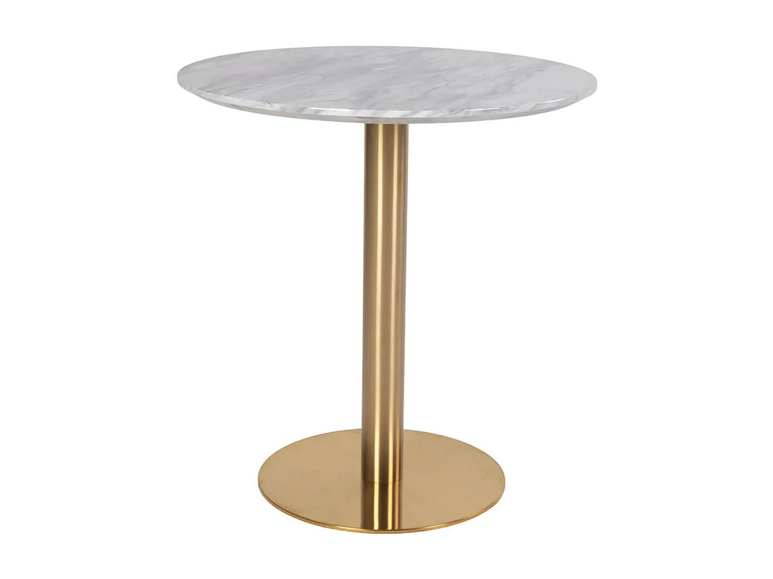 TYROL - Table Repas Ø70cm Plateau MDF Aspect Marbré et Pied Métal Doré