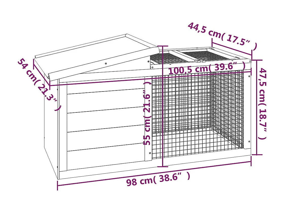 Coalton Clapier Moka 310x70x87 cm Pin massif et sapin