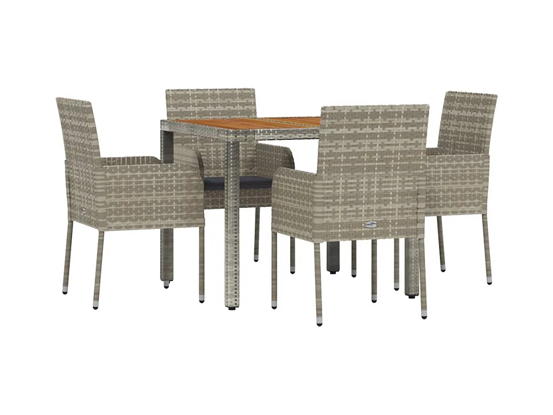 Tyron Ensemble à manger de jardin 5 pcs coussins gris résine tressée