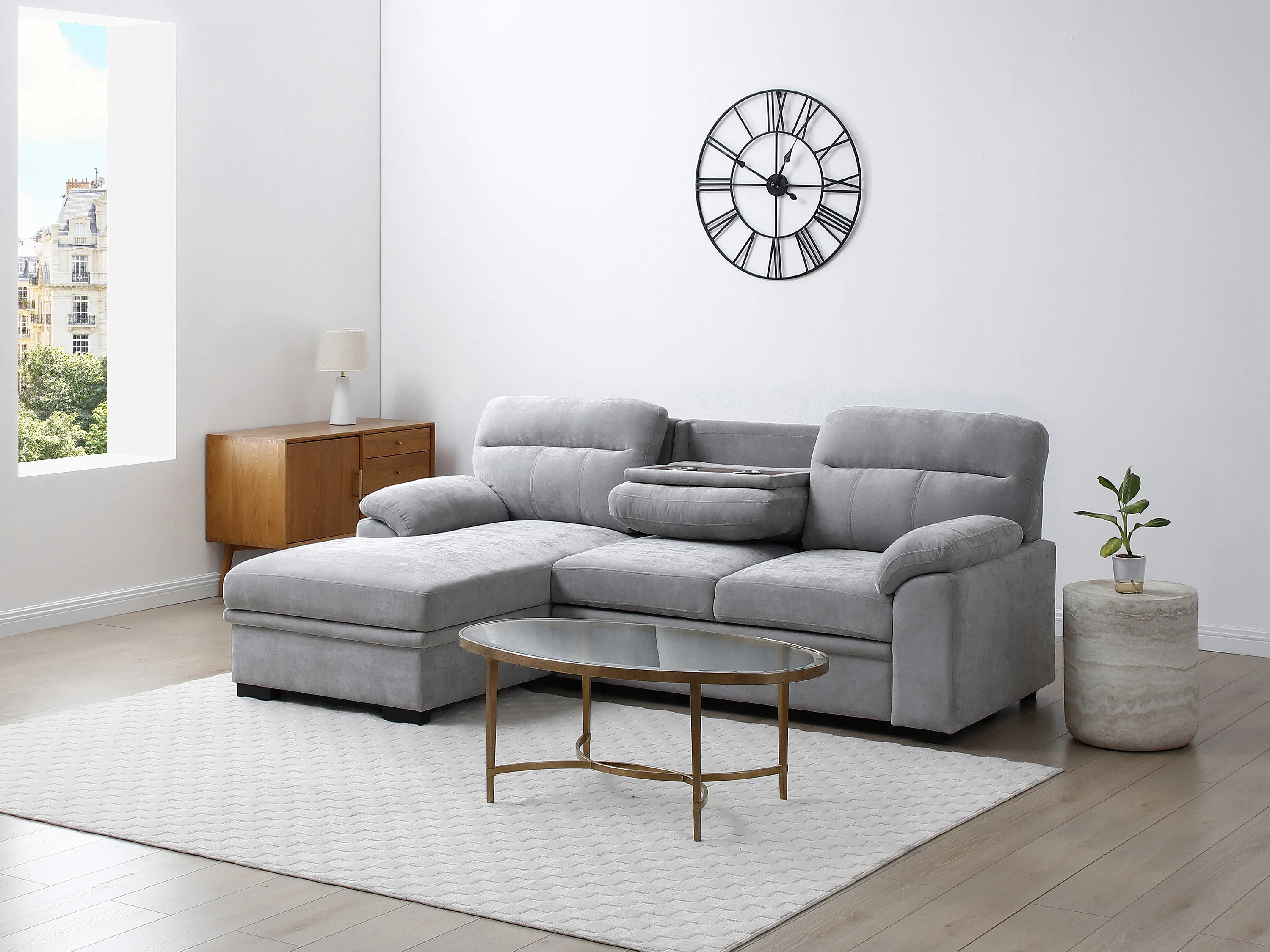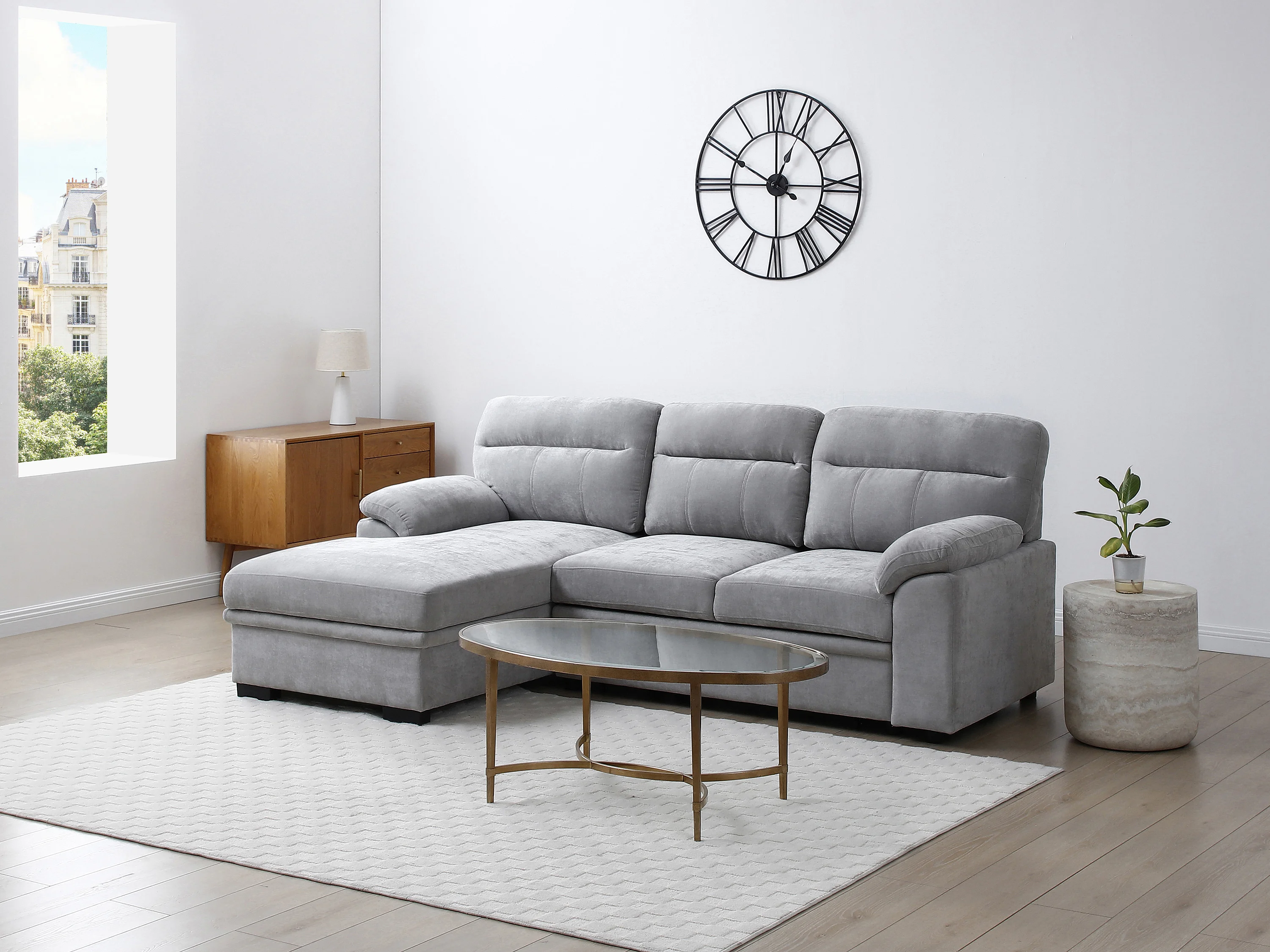 Canapé d'angle gauche convertible en tissu gris ULENIO