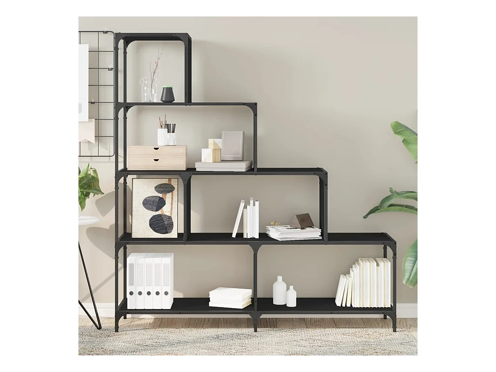 Unaris Bibliothèque à 4 niveaux noir 139x33,5x149 cm bois d'ingénierie