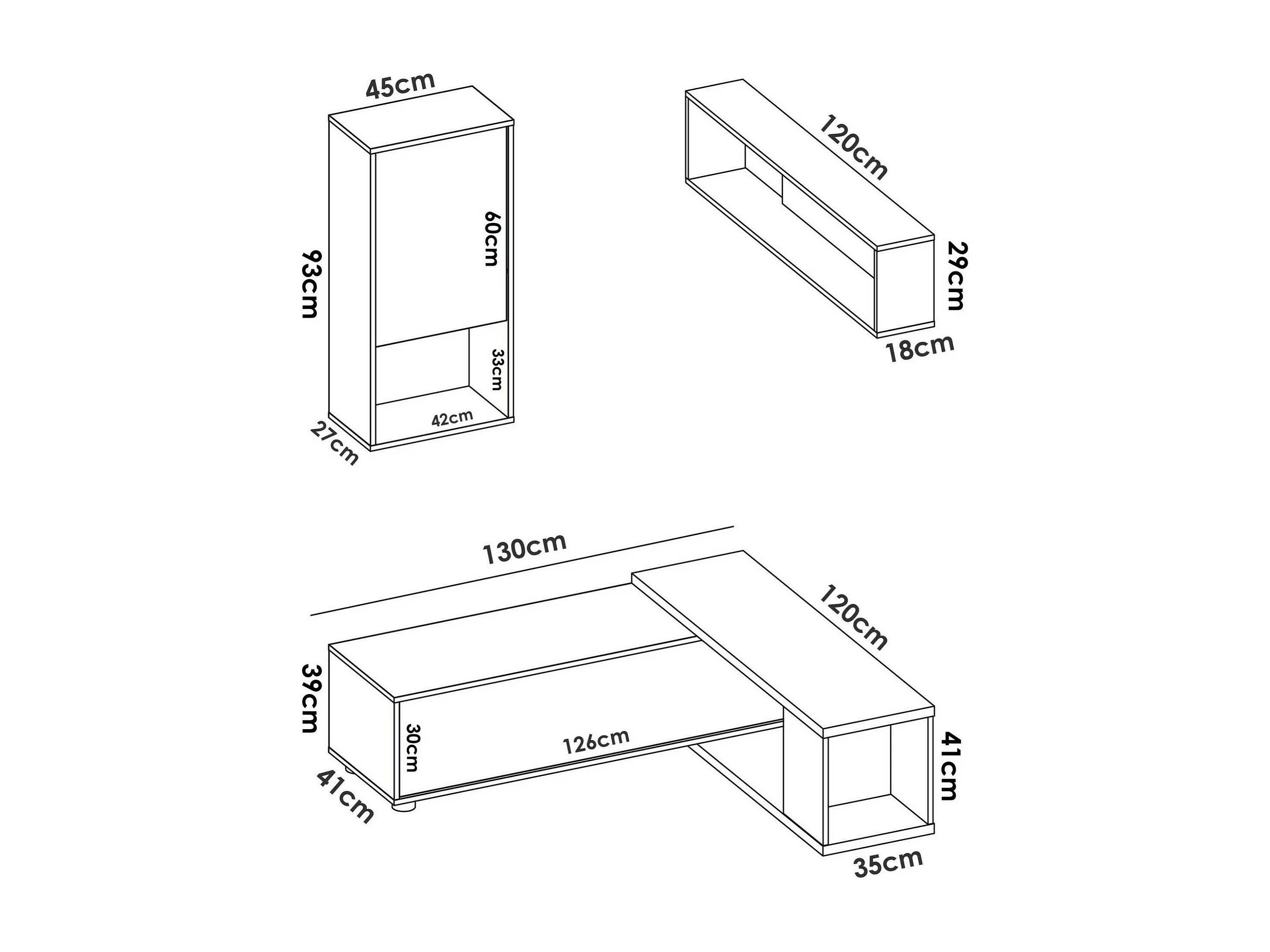 Système mural Legnone, Ensemble de salon d'angle modulable, Meubles de salon multi-positions, 230x41h180 cm, Blanc et Chêne