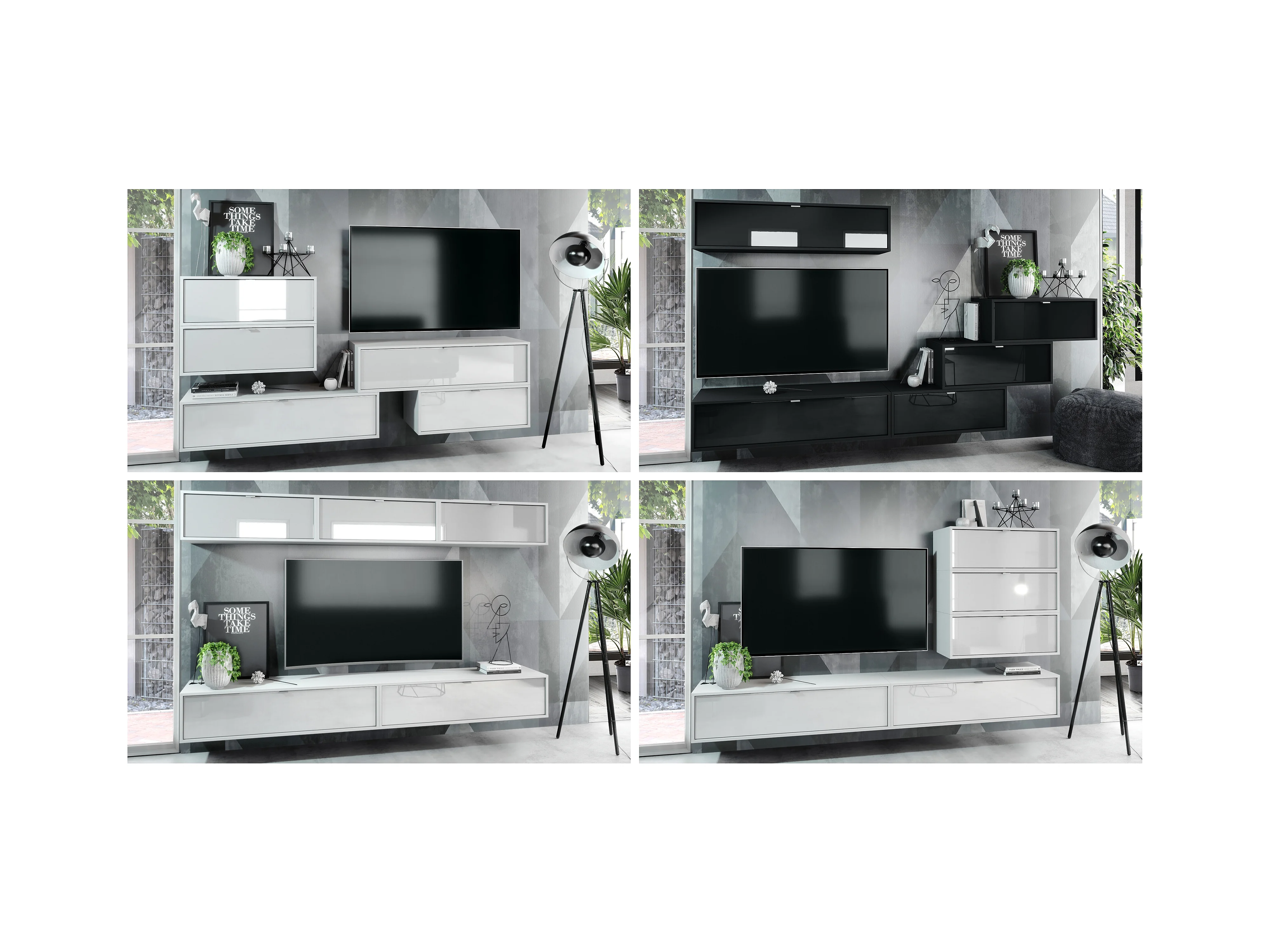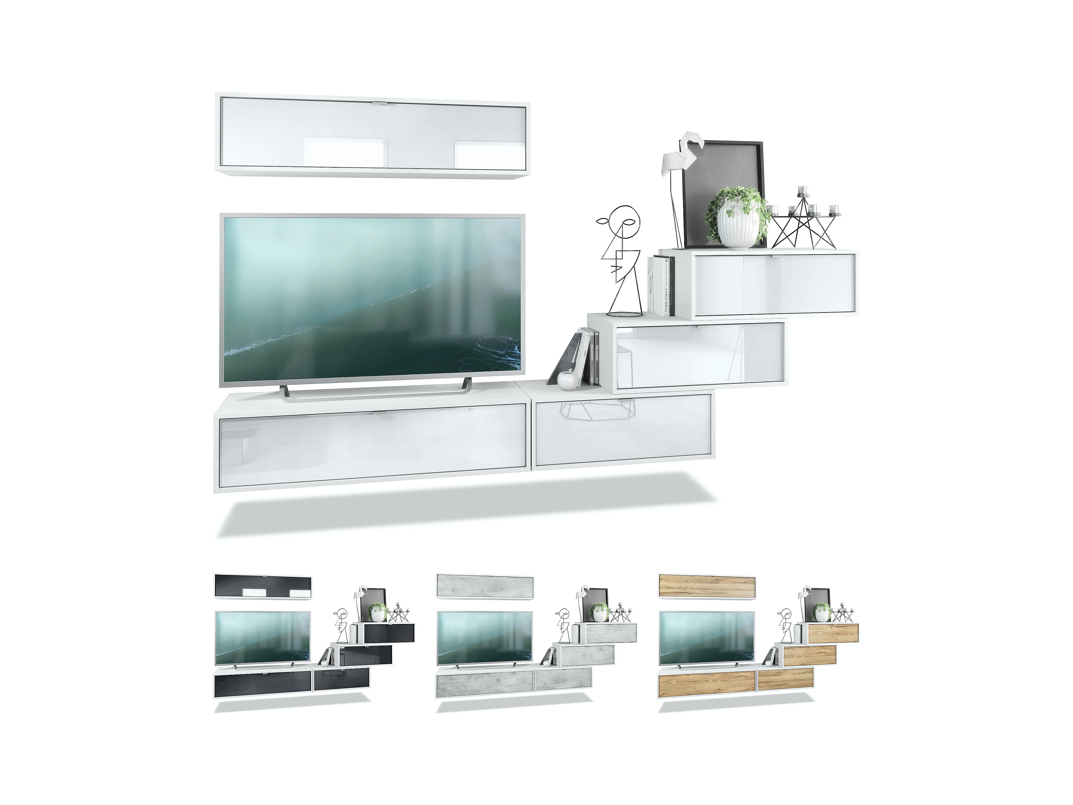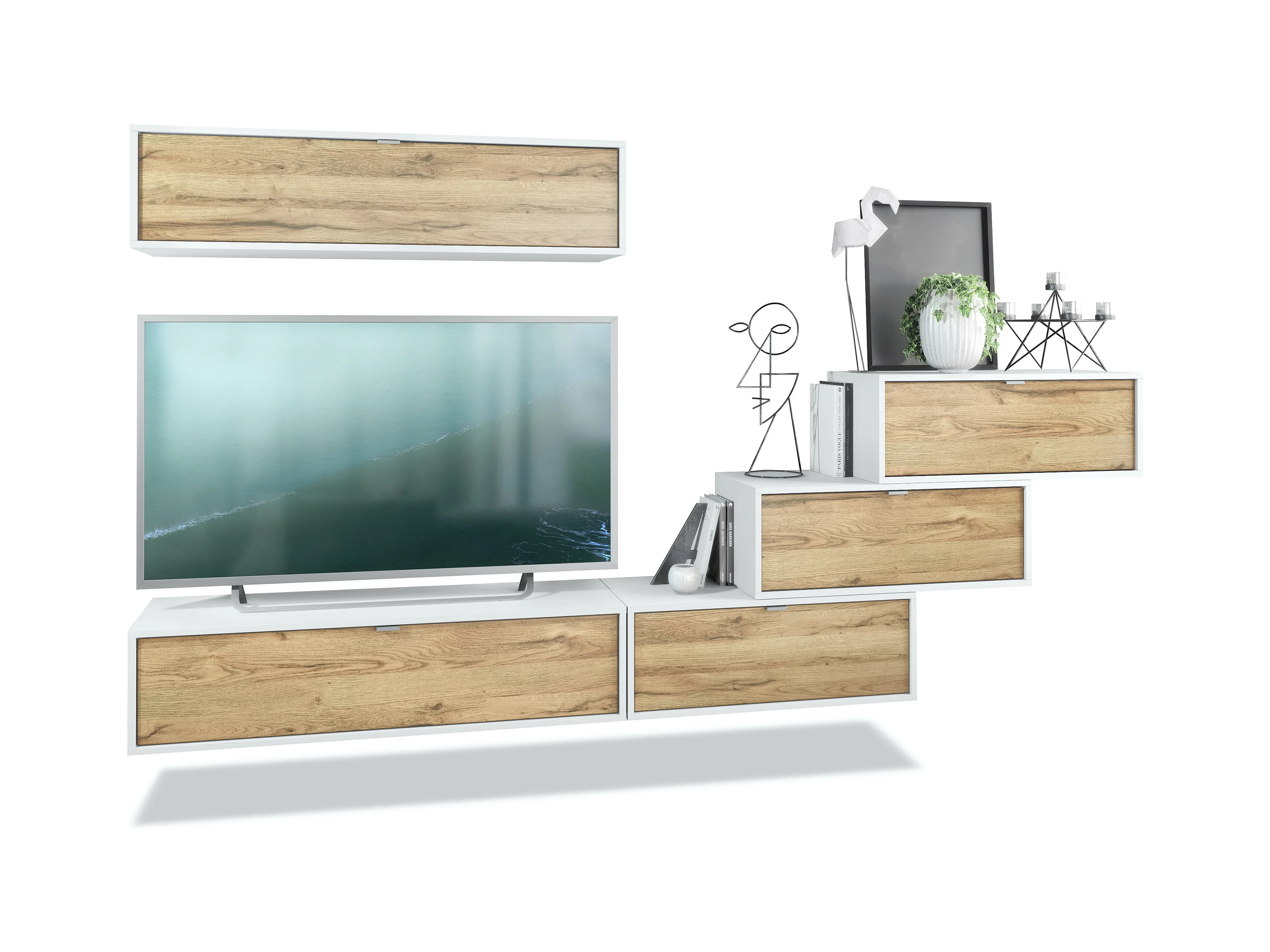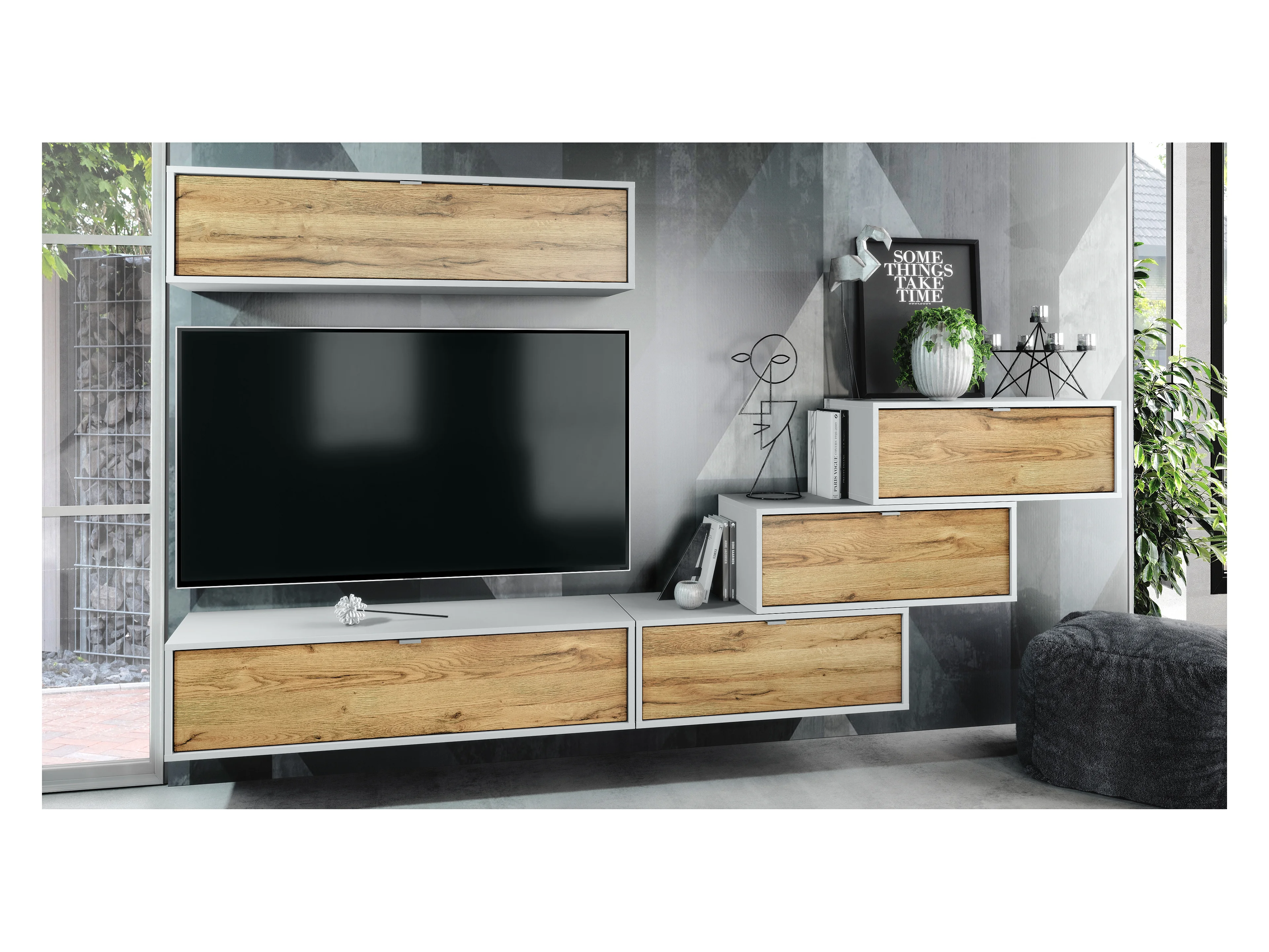 Unité murale Lana V1 composée de 5 unités murales à 12 compartiments, caisson en Blanc mat, façades en Chêne Nature | Grand choix de couleurs