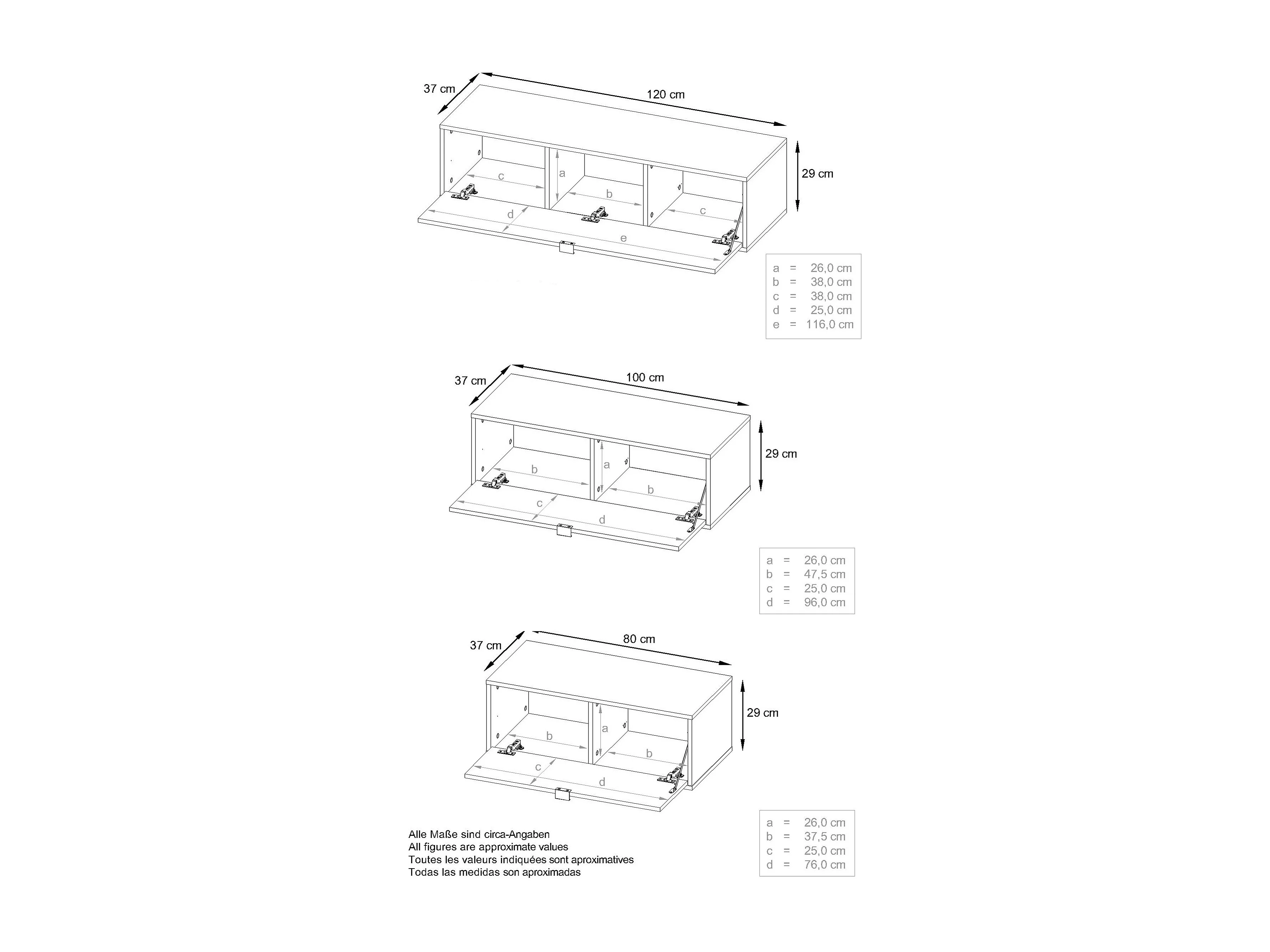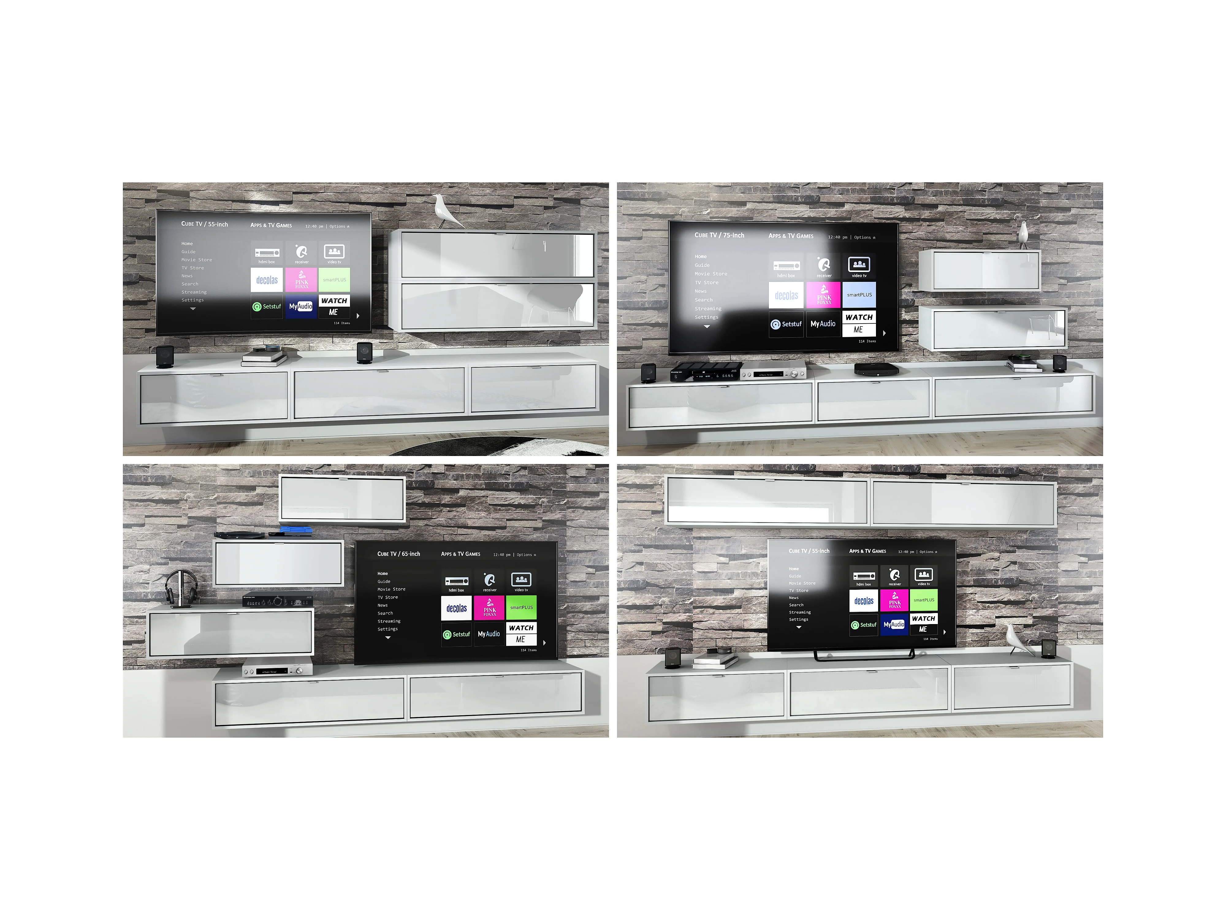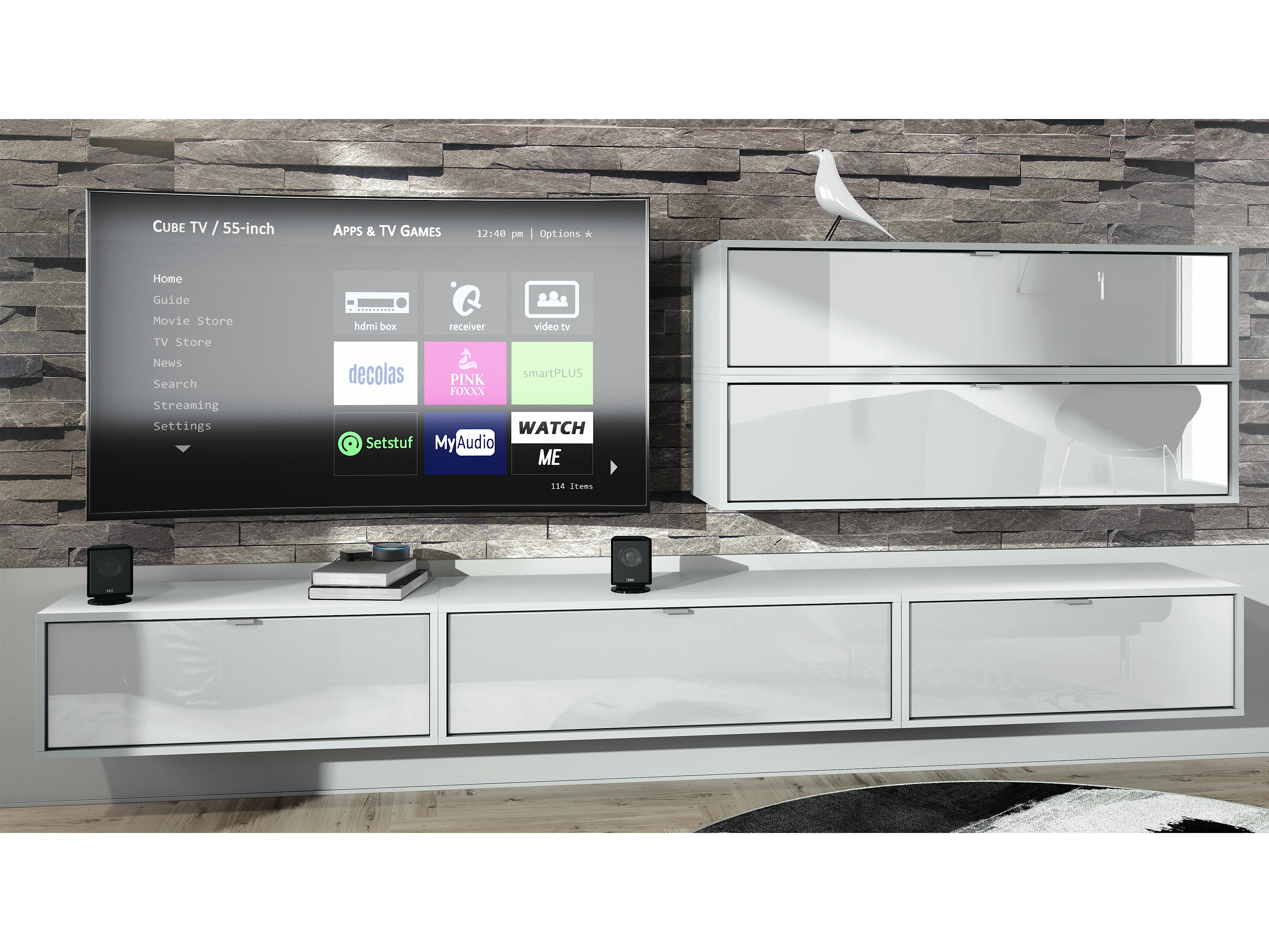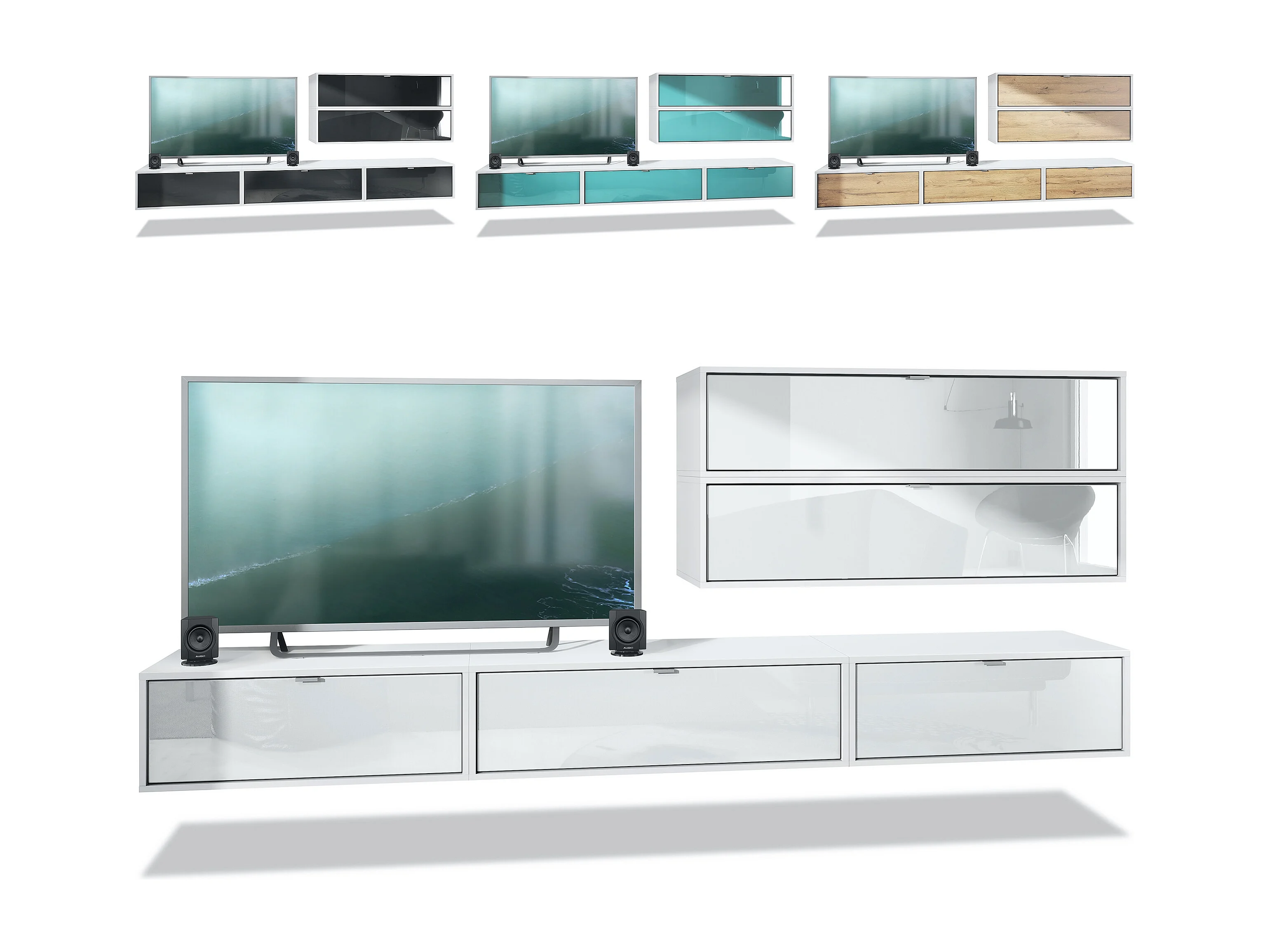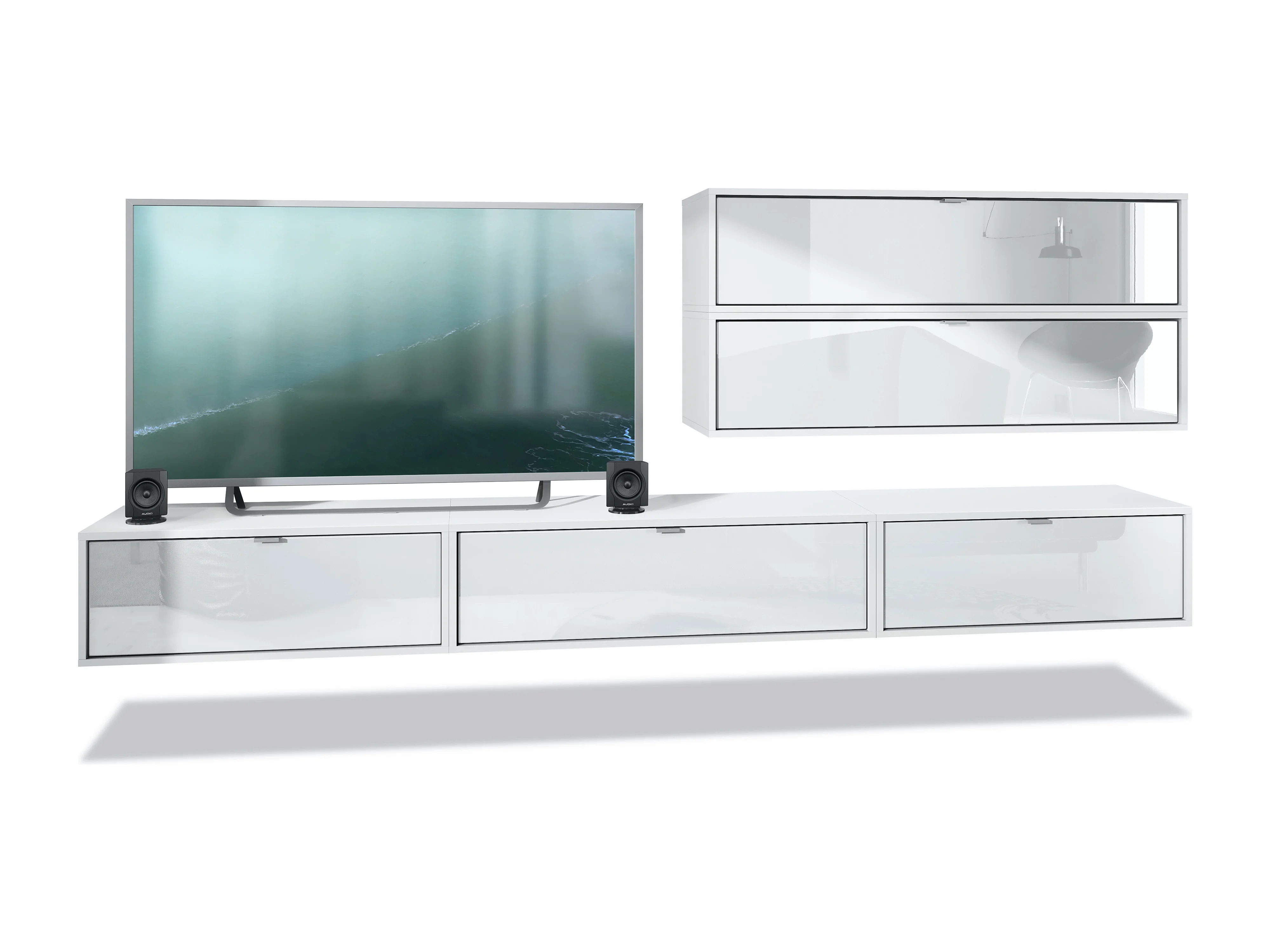 Unité murale Lana V2 composée de 5 unités murales à 12 compartiments, caisson en Blanc mat, façades en Blanc haute brillance