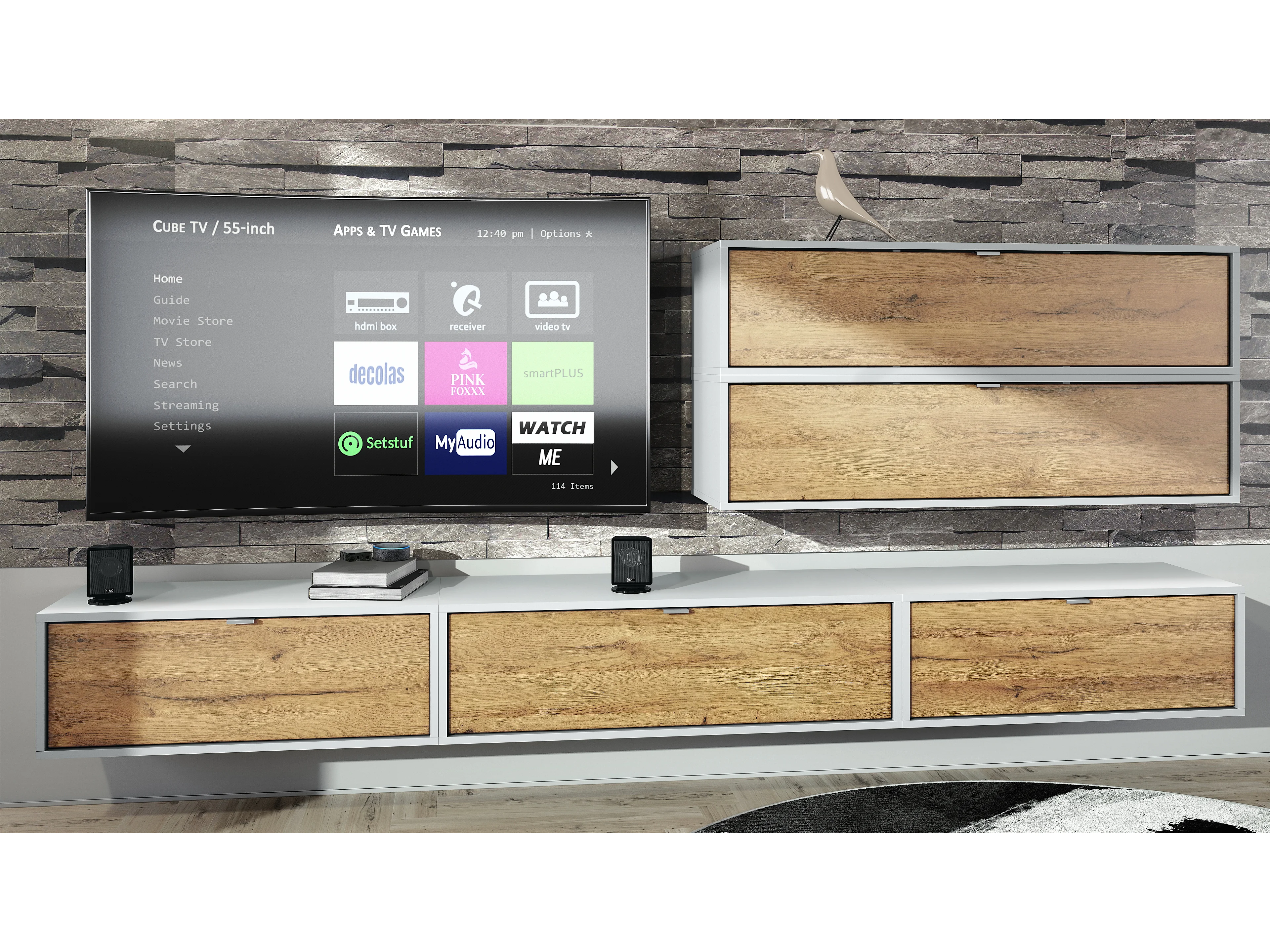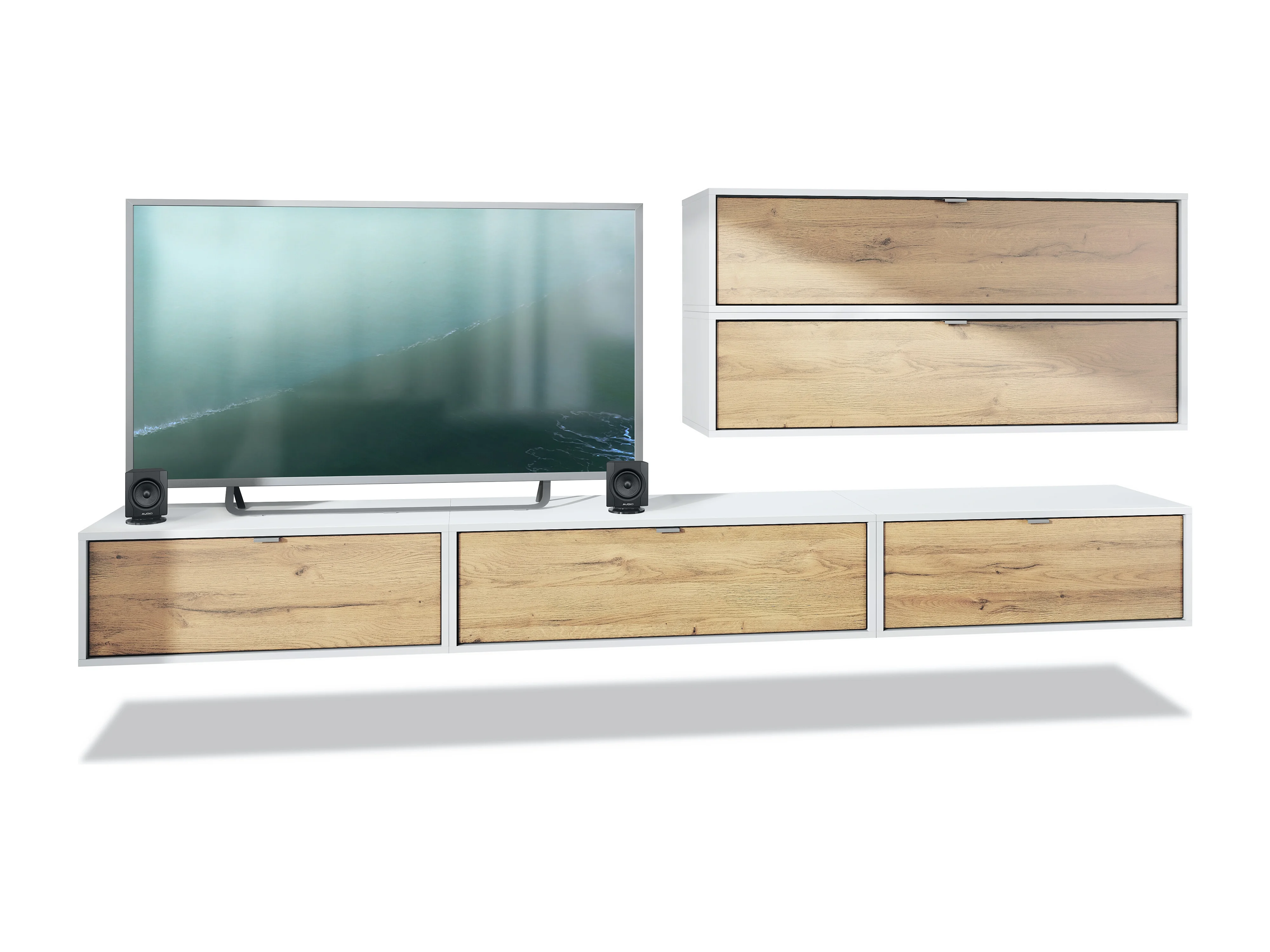Unité murale Lana V2 composée de 5 unités murales à 12 compartiments, caisson en Blanc mat, façades en Chêne Nature