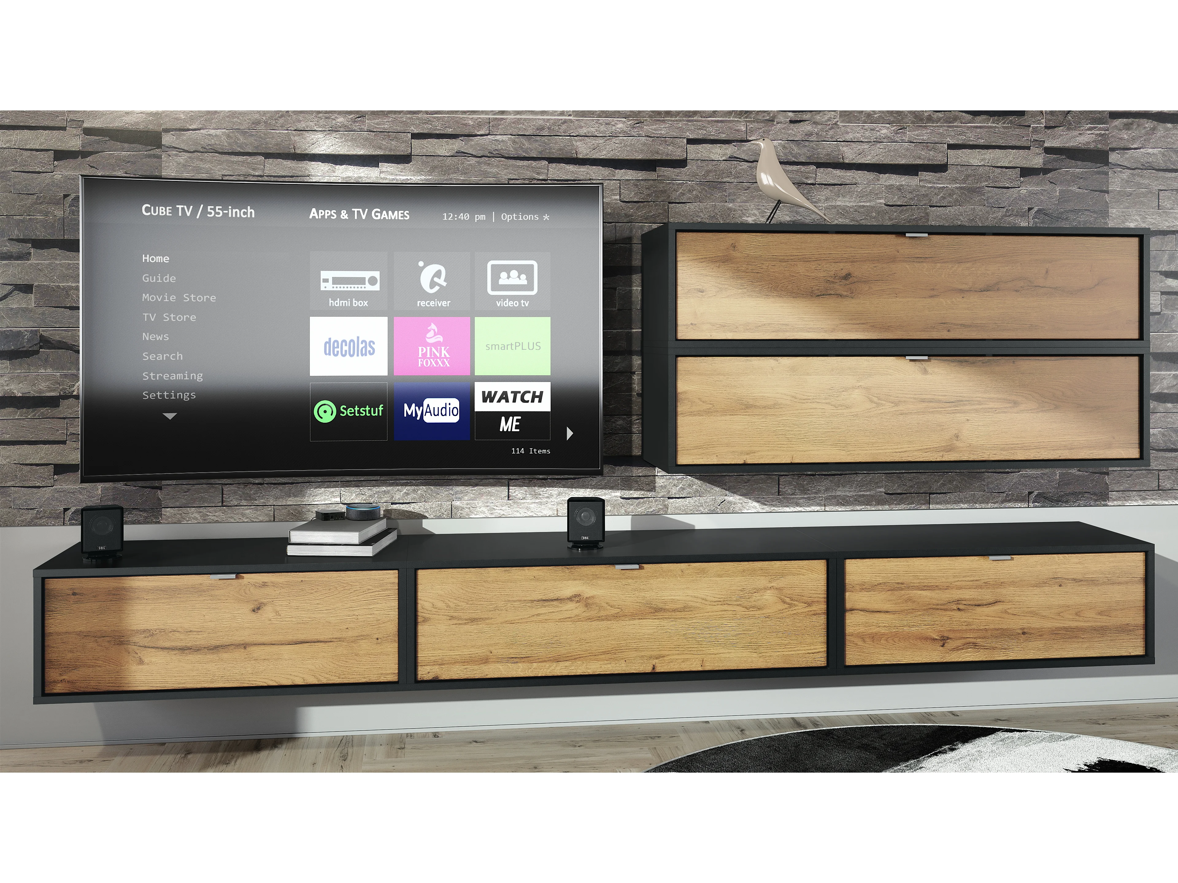 Unité murale Lana V2 composée de 5 unités murales à 12 compartiments, caisson en Noir mat, façades en Chêne Nature