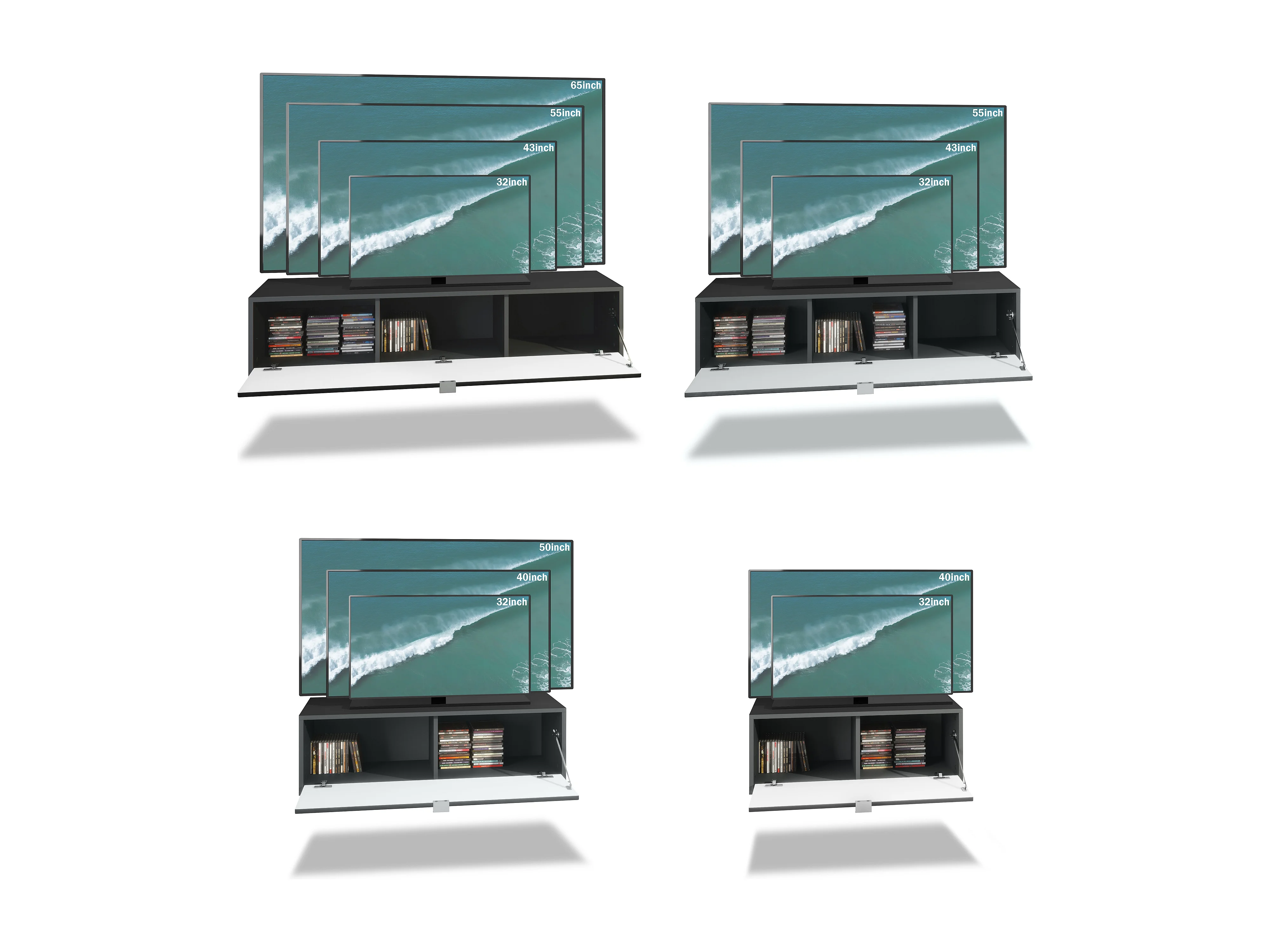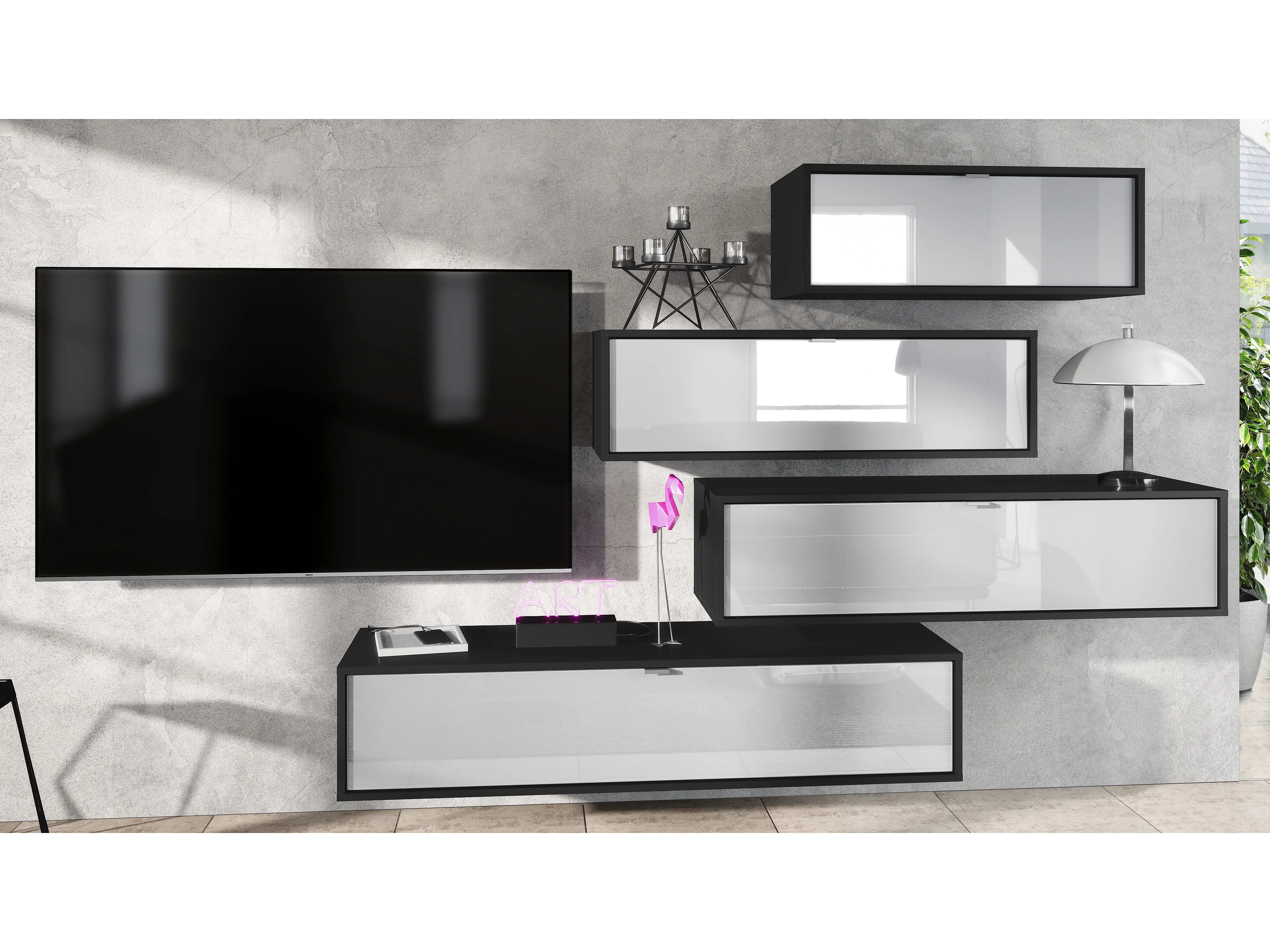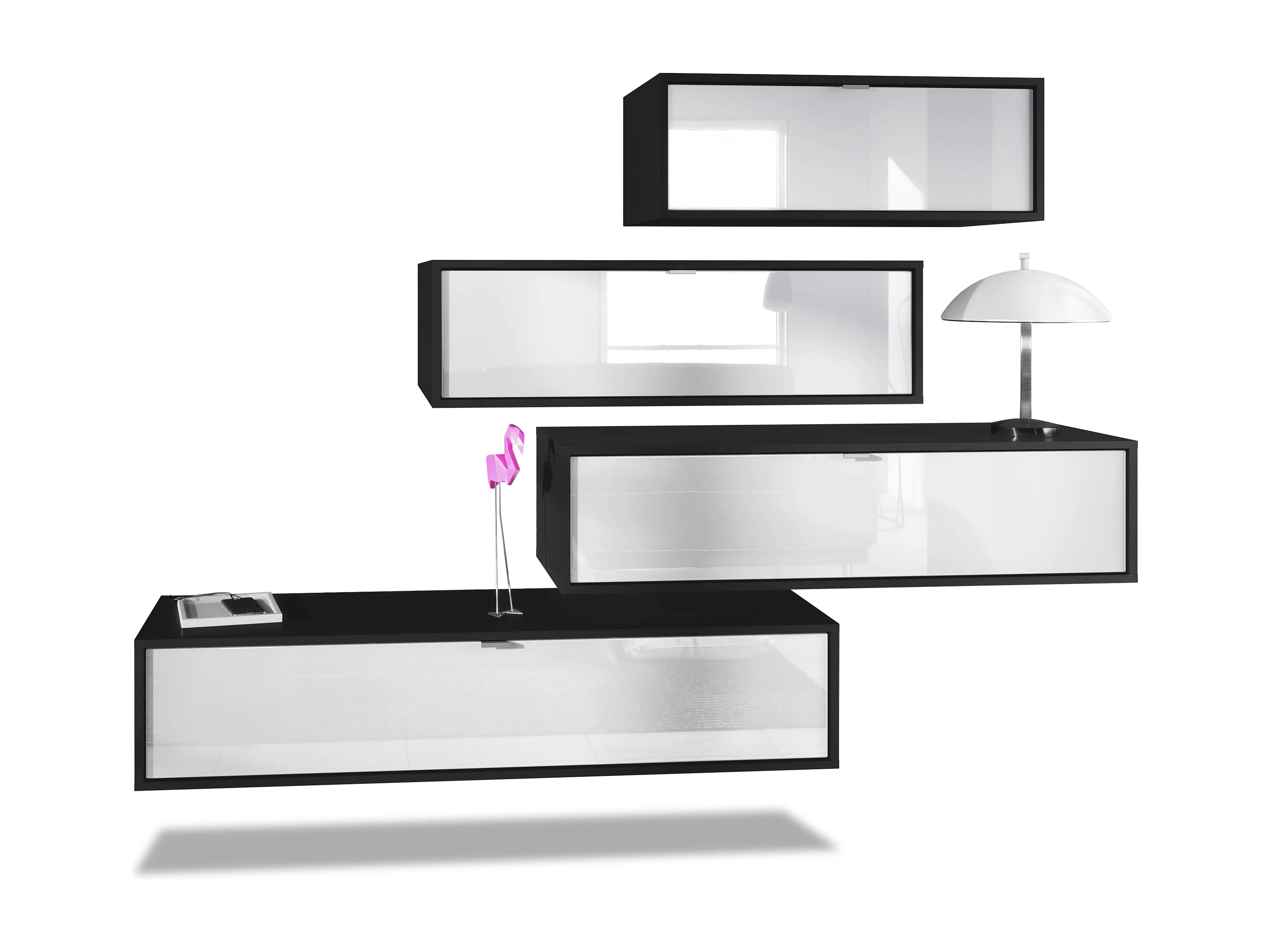 Unité murale Lana V3 composée de 4 unités murales à 10 compartiments, caisson en Noir mat, façades en Blanc haute brillance