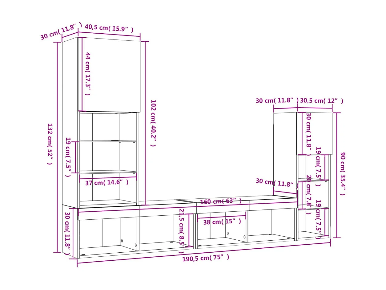 Unités murales TV avec LED 4 pcs blanc bois d'ingénierie