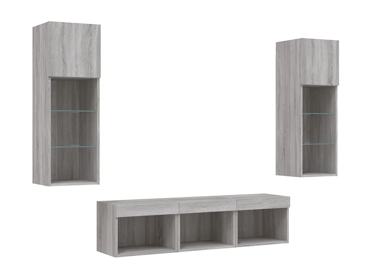 Unités murales TV avec LED 5 pièces gris sonoma bois d'ingénierie