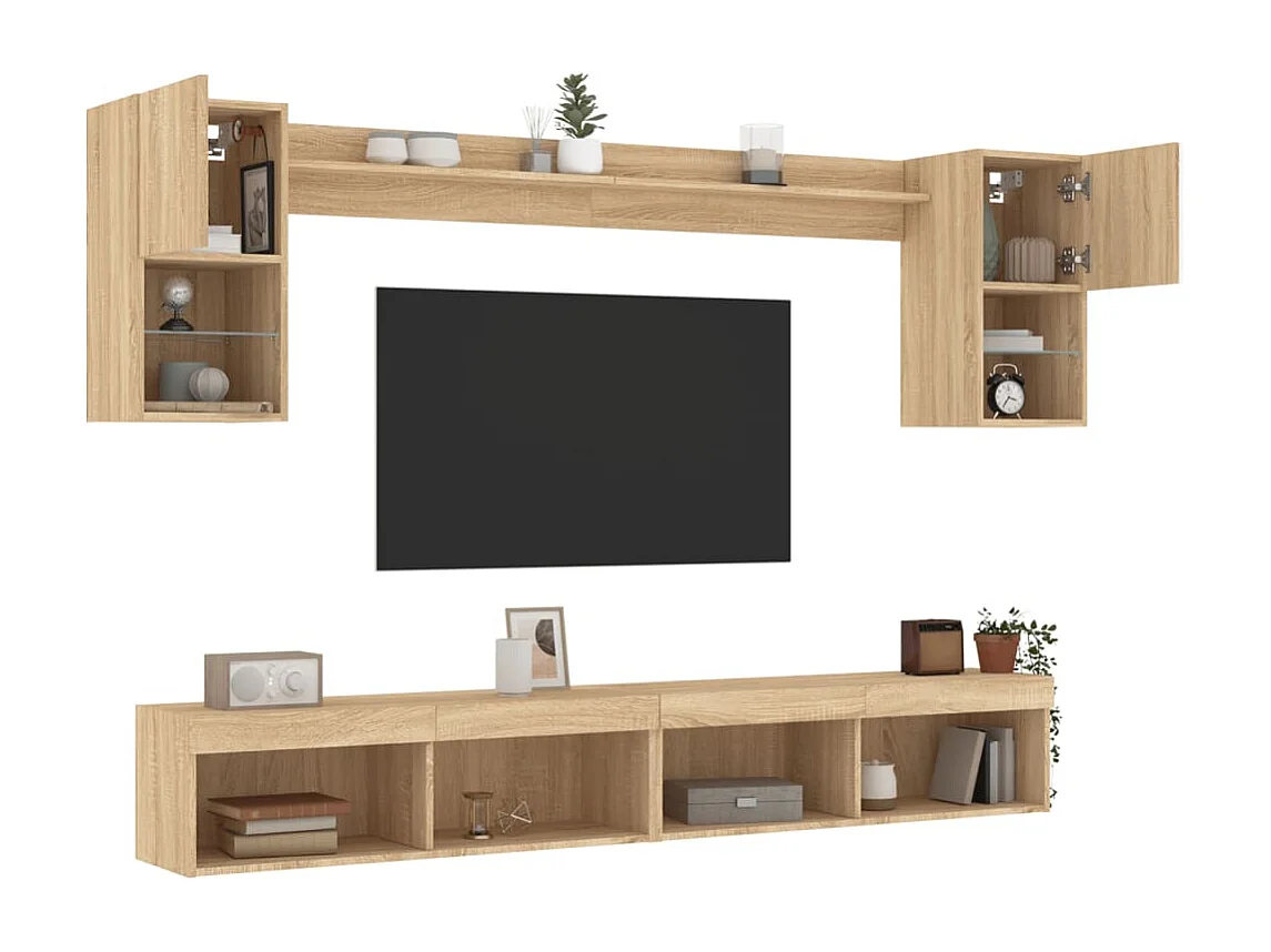 Unités murales TV avec LED 6 pcs chêne sonoma bois d'ingénierie