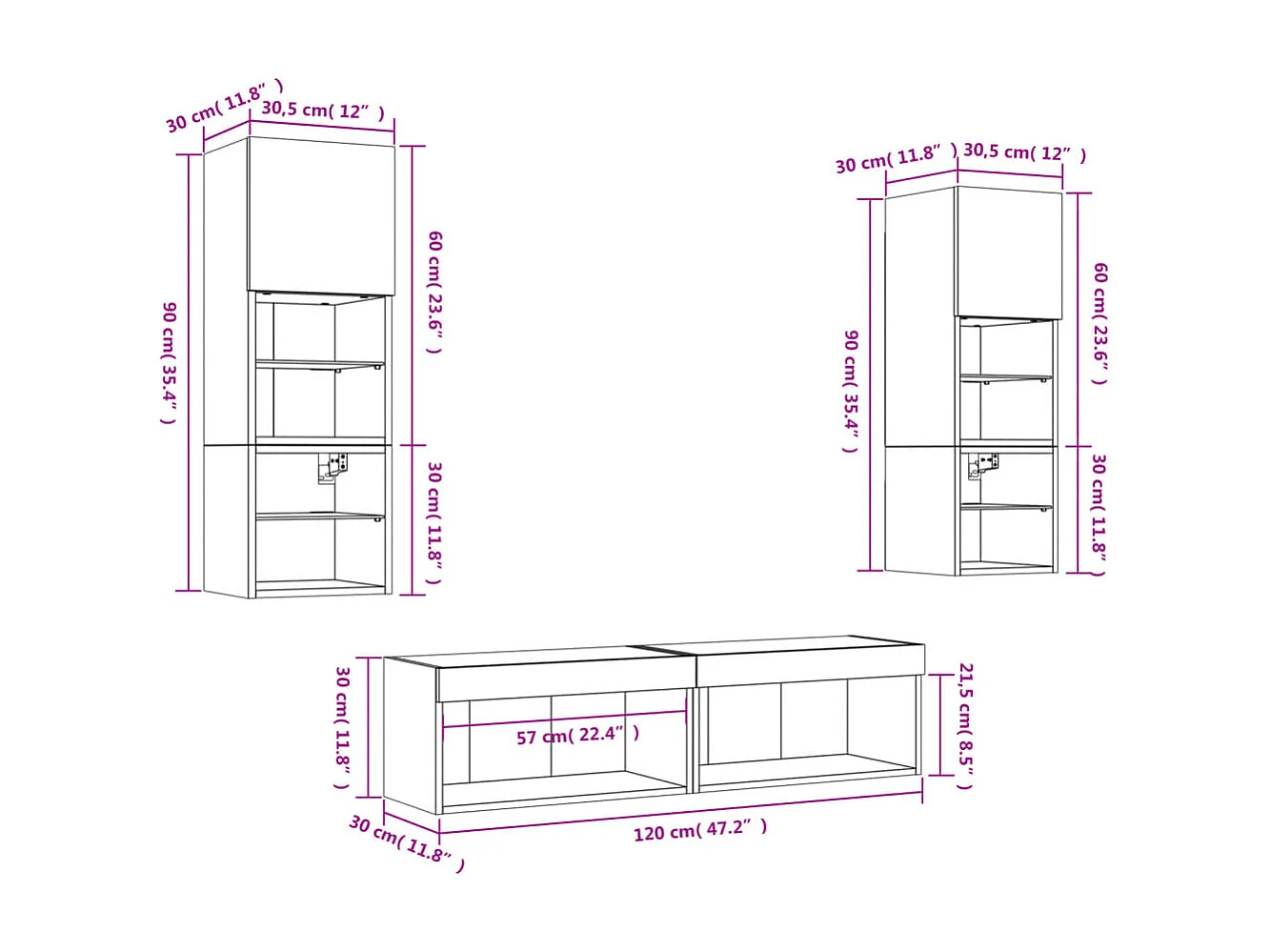 Unités murales TV avec LED 6 pcs gris béton bois d'ingénierie