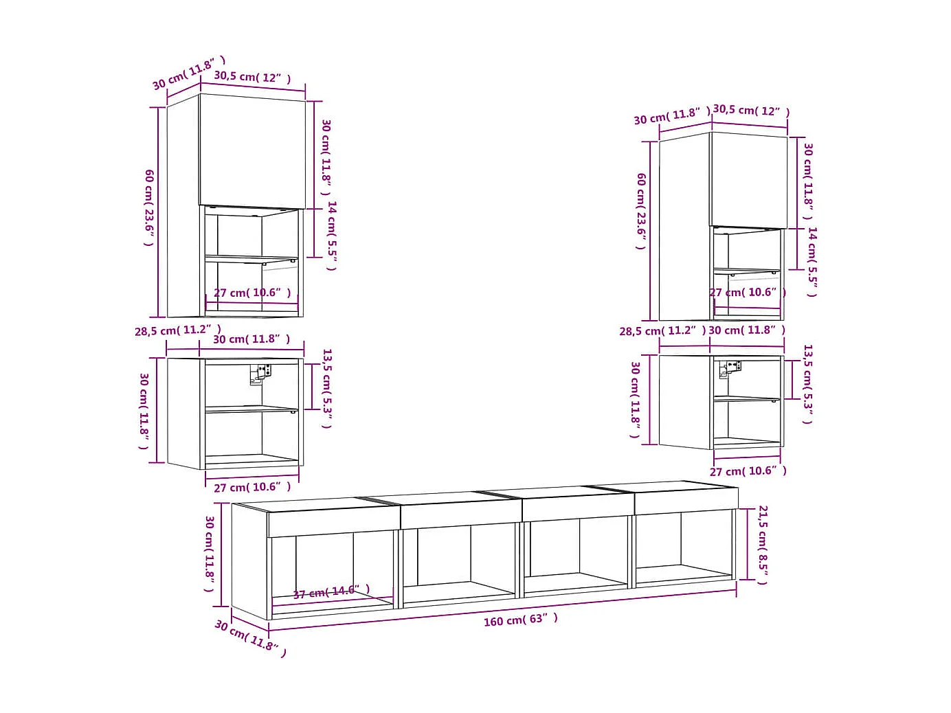 Unités murales TV avec LED 8 pcs gris sonoma bois d'ingénierie