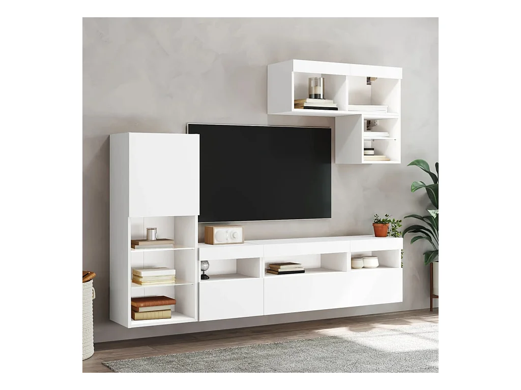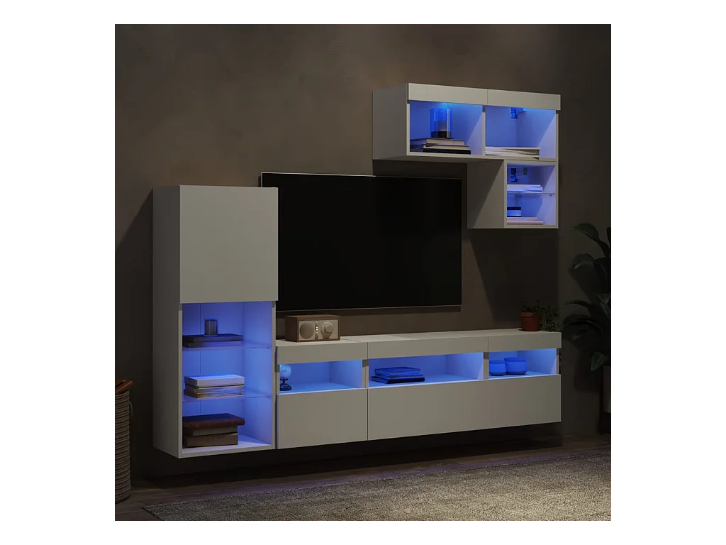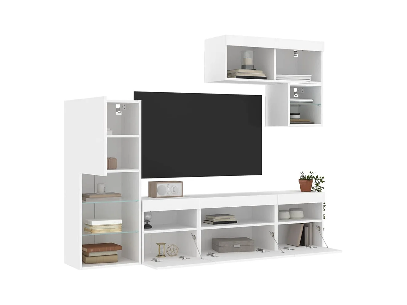 Unités murales TV | Bancs TV | Armoires TV avec LED 6 pcs blanc bois d'ingénierie