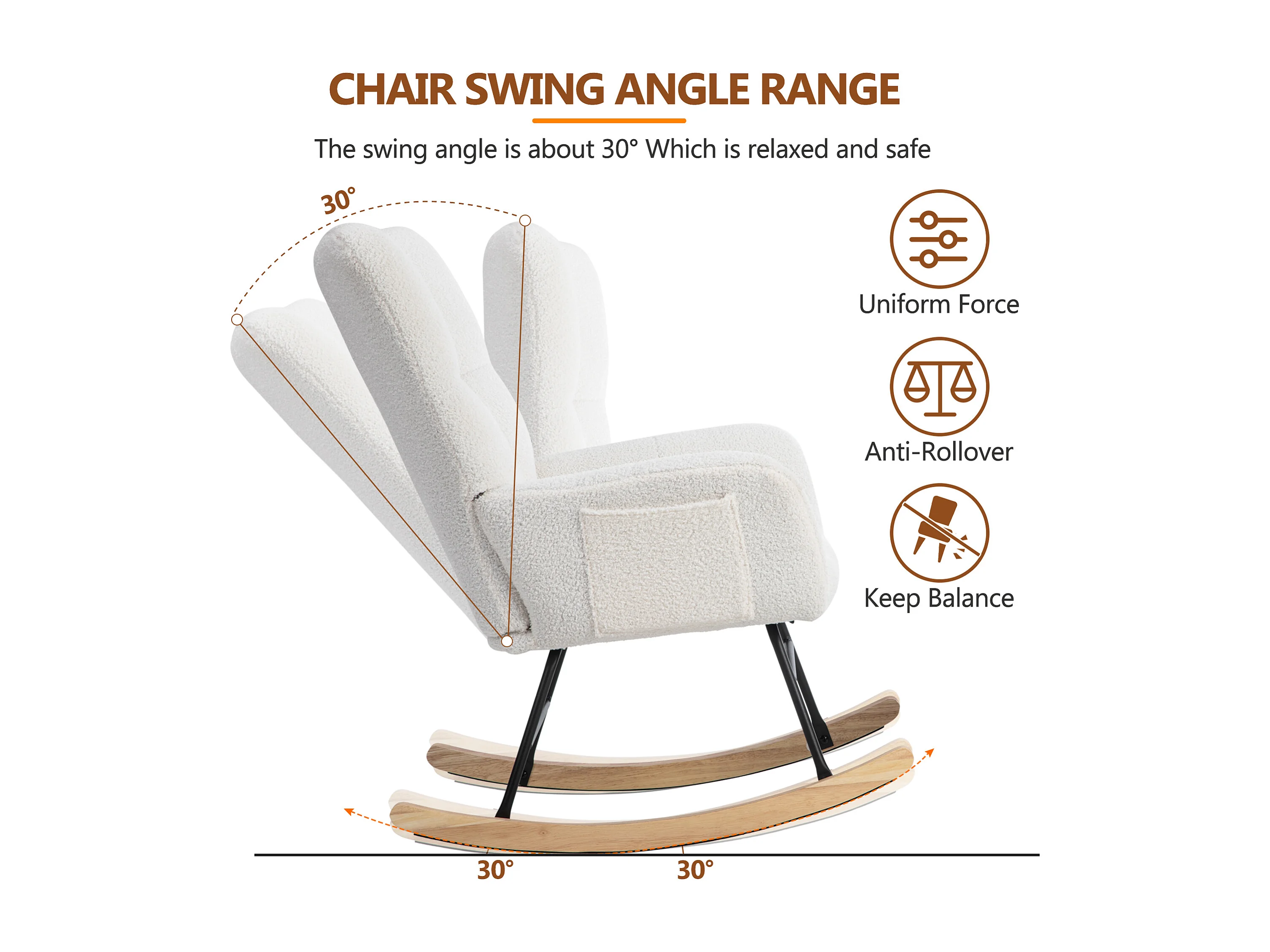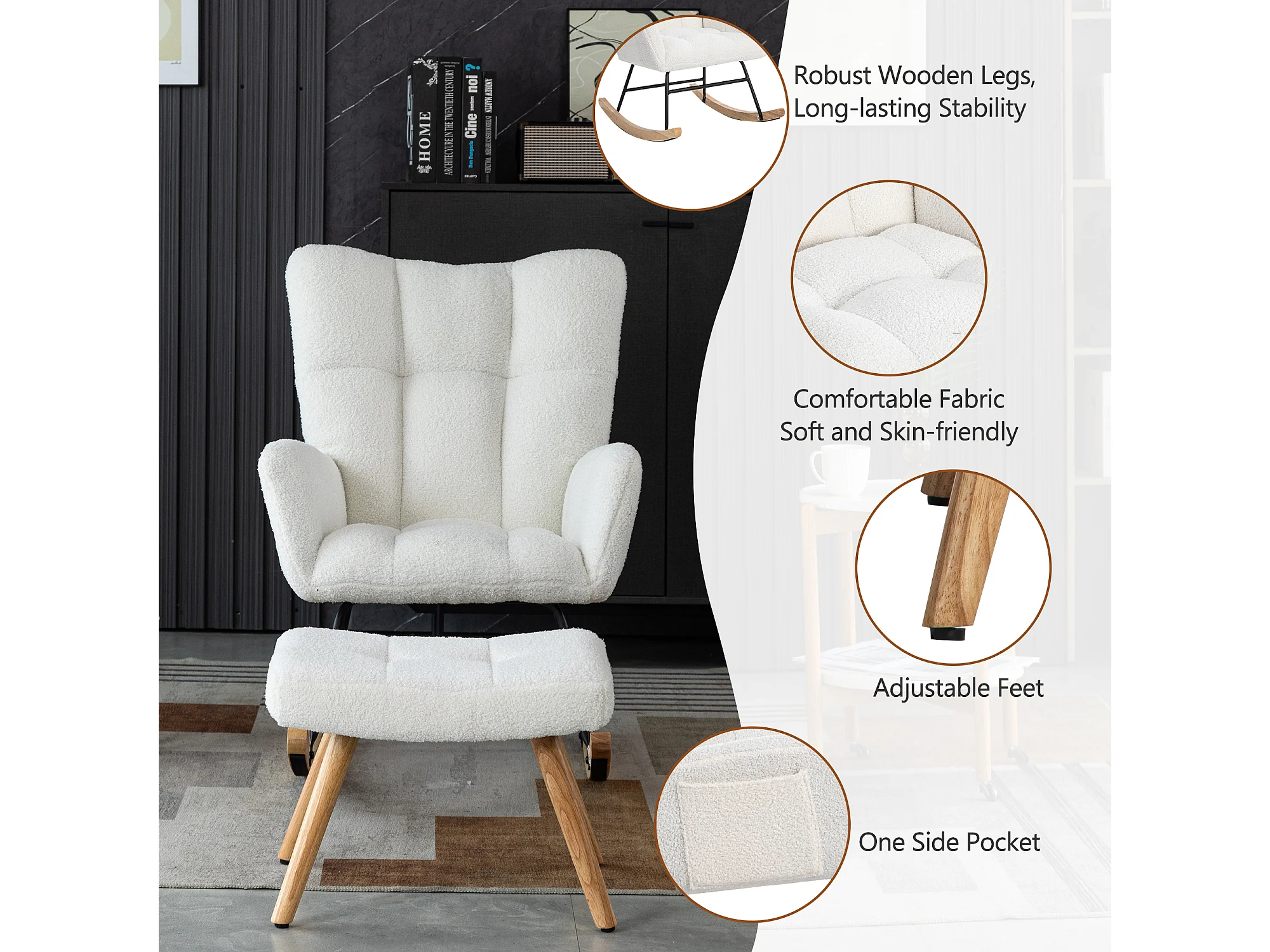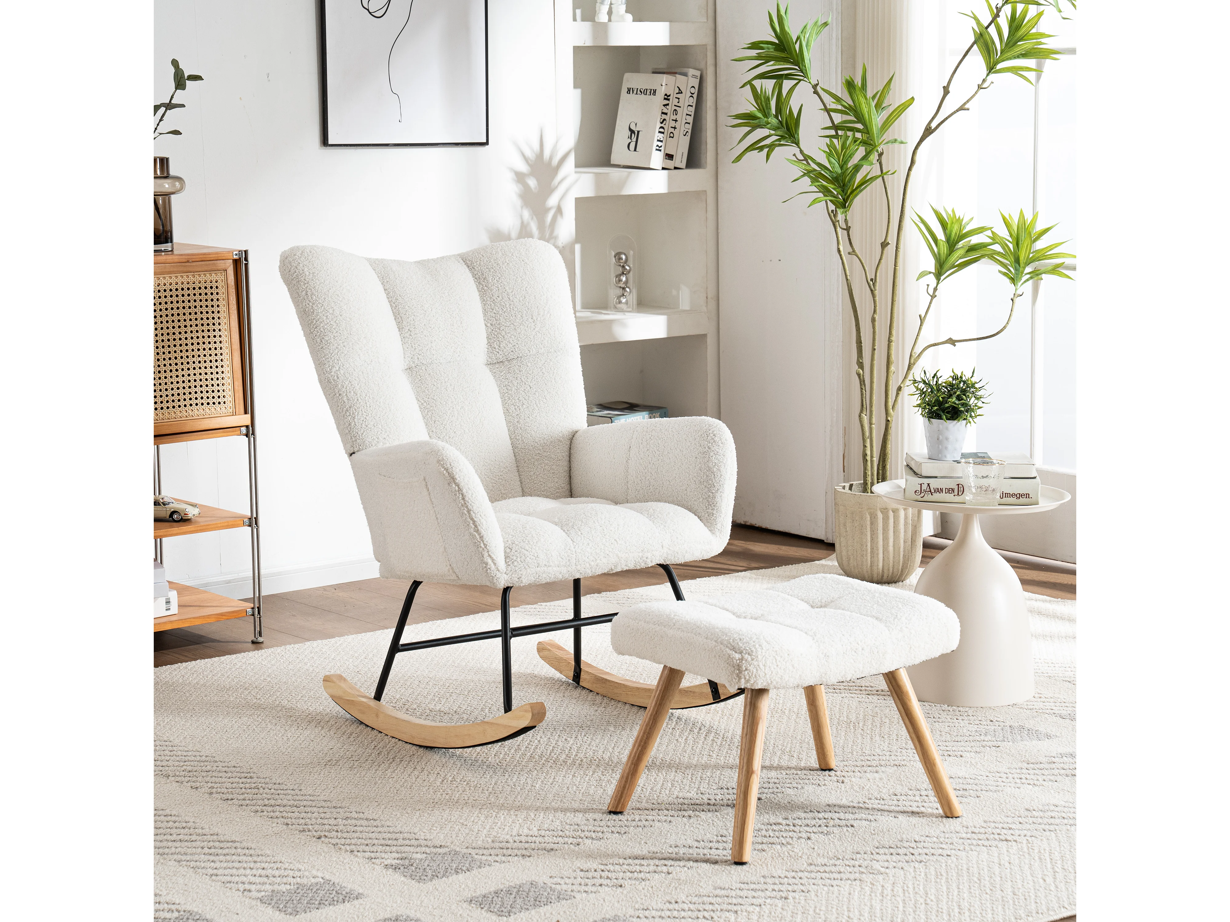 URBAN MEUBLE Chaise à bascule en polaire effet peluche blanche dossier haut avec repose-pieds
