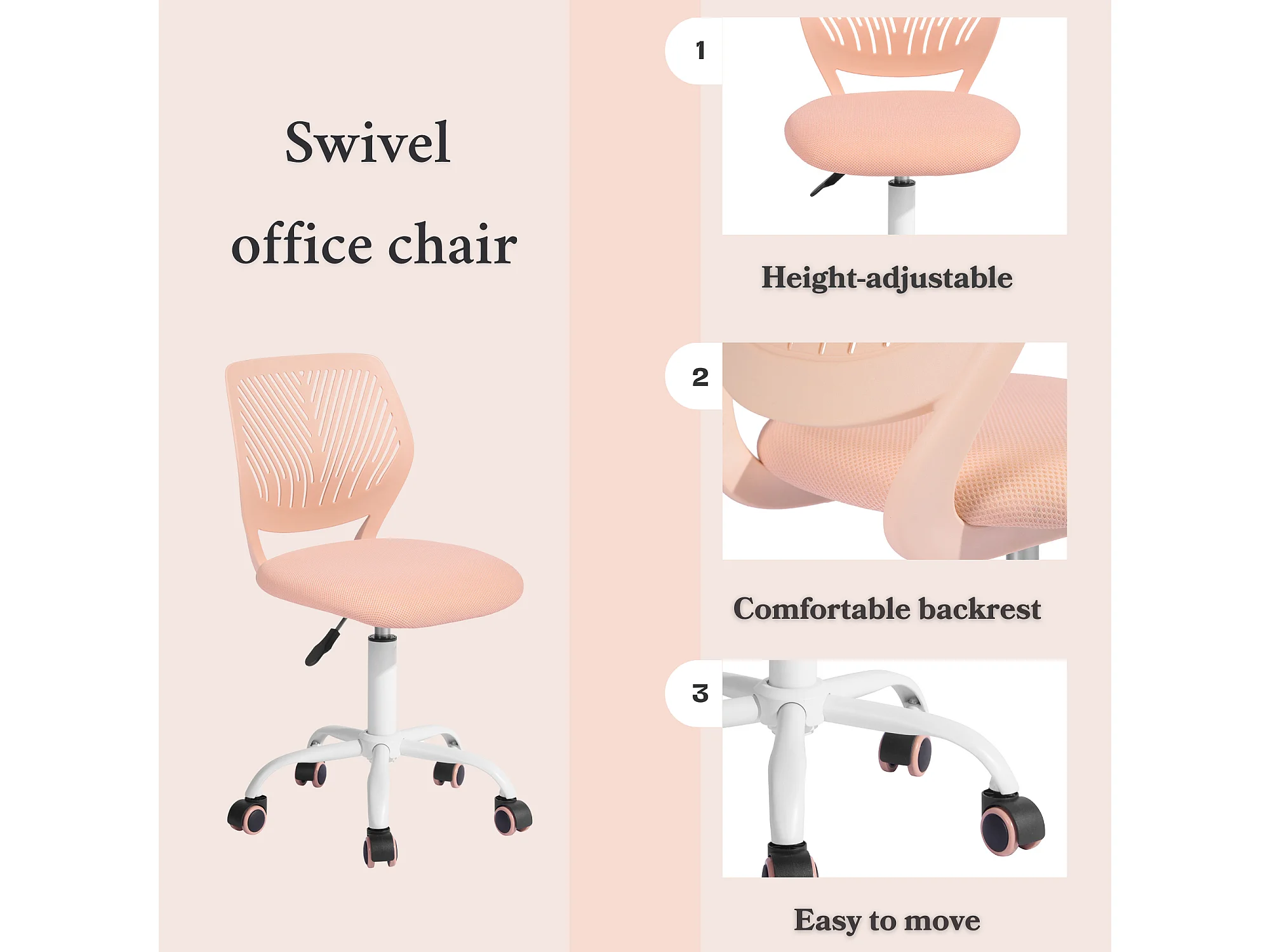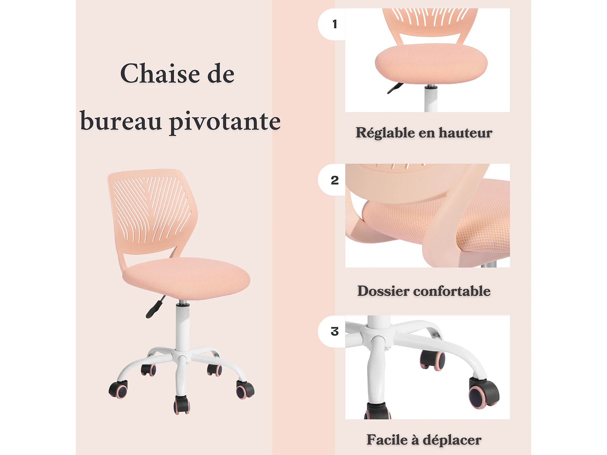 Chaise de bureau ergonomique hauteur réglable pivotante 360° revêtement maille rose