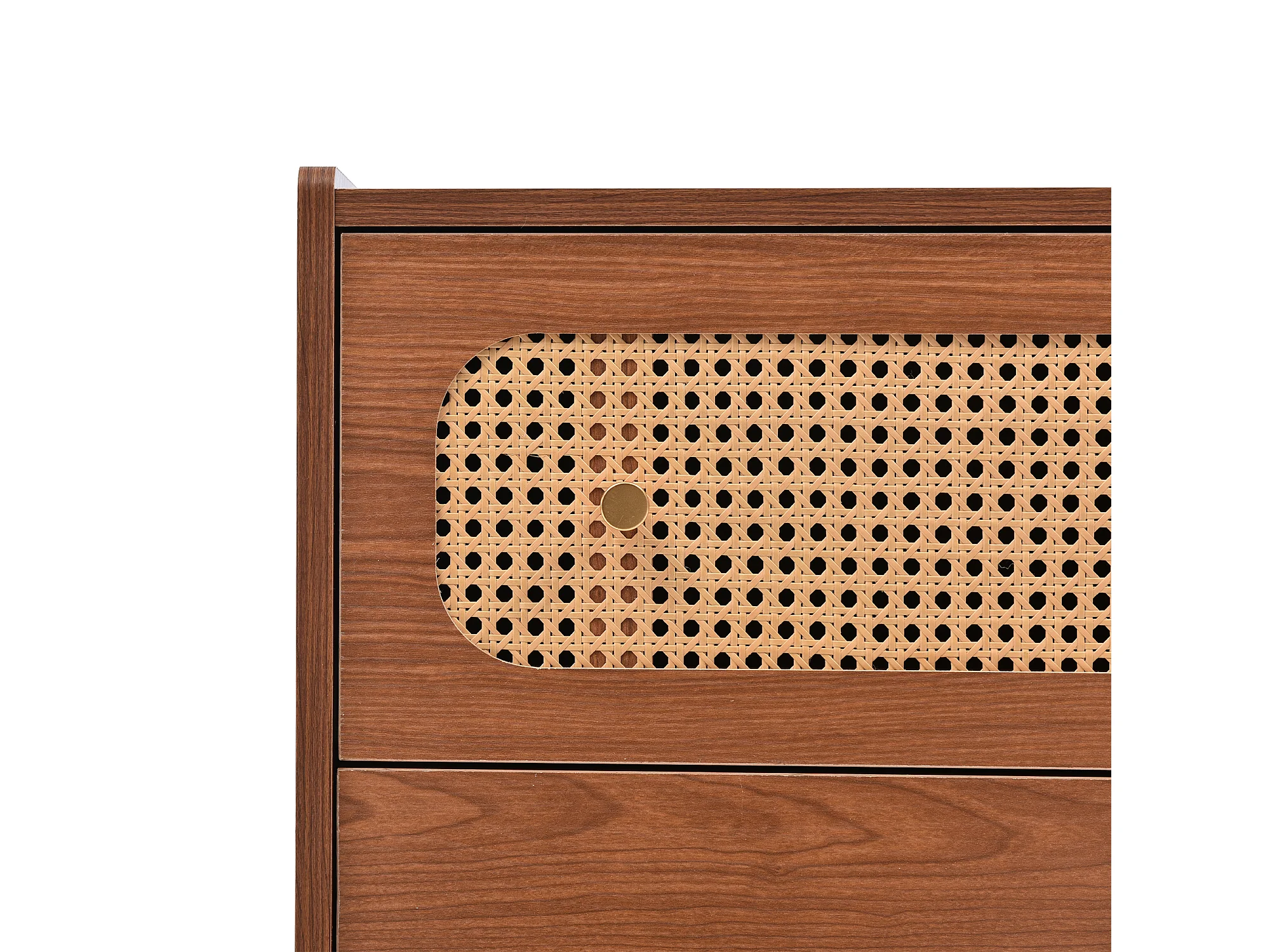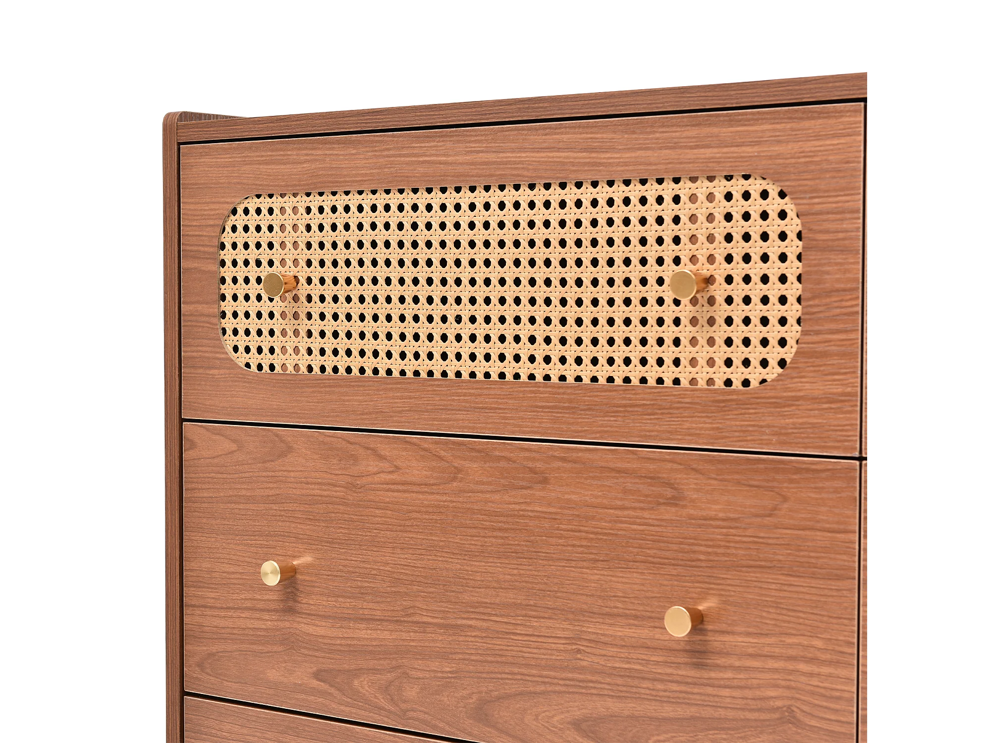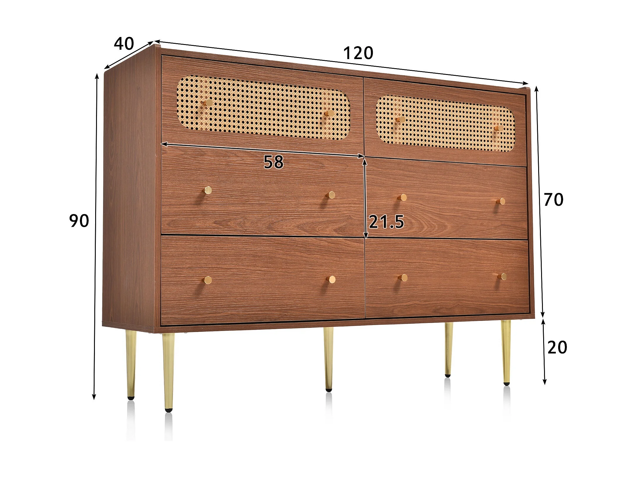 URBAN MEUBLE Commode vintage 6 tiroir en rotin poignées et pieds dorés 120*90*40cm DELMO