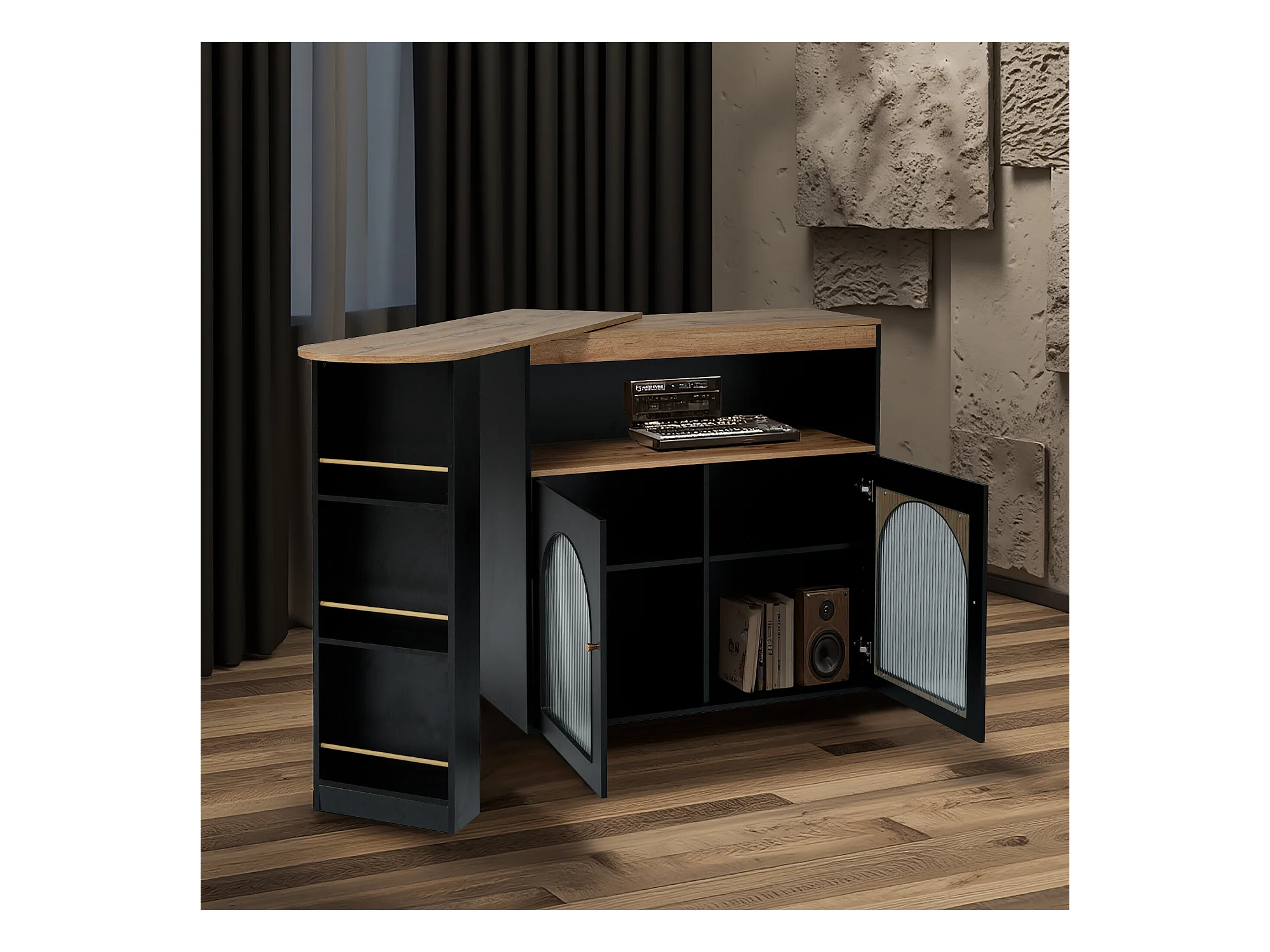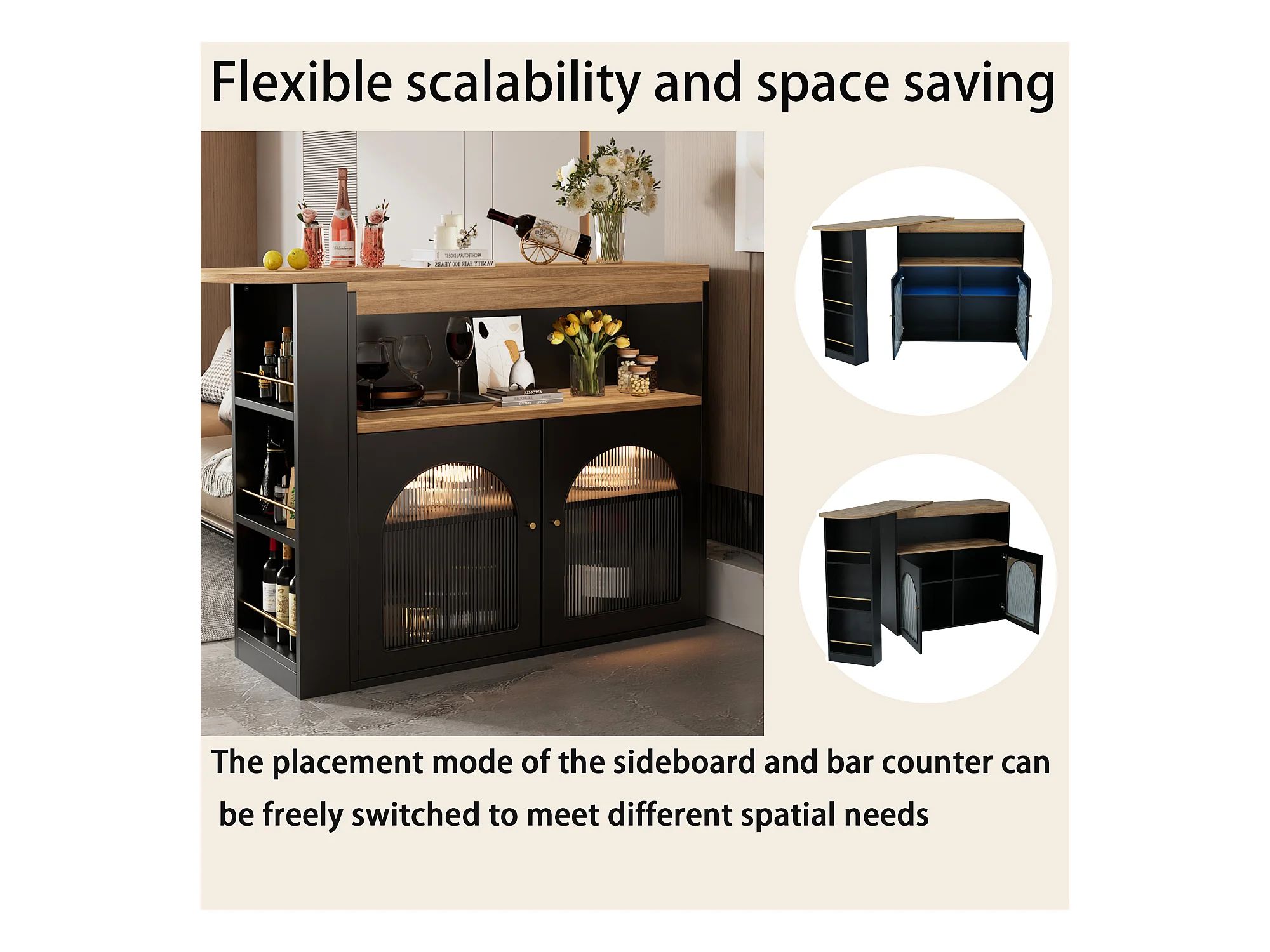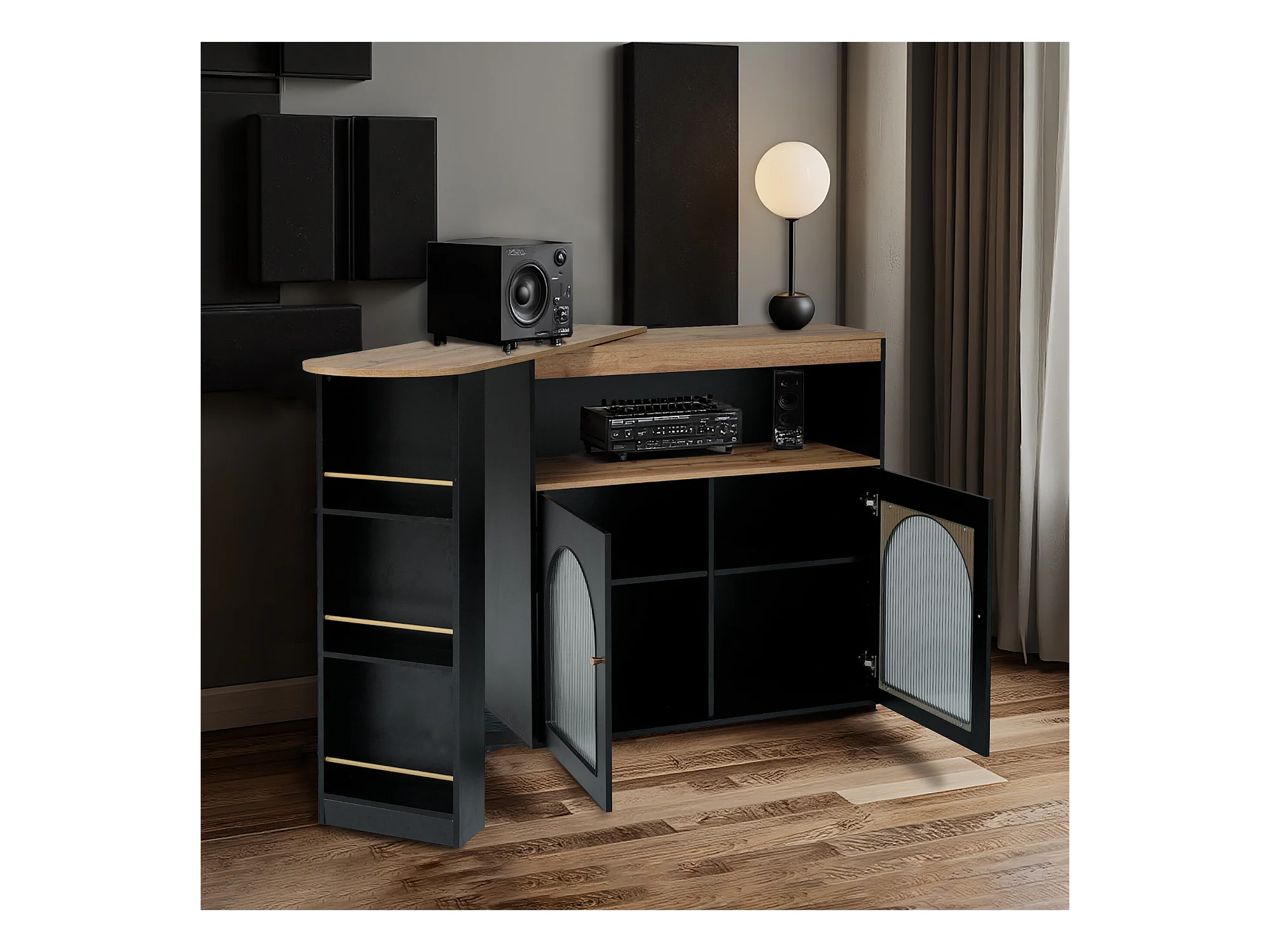 URBAN MEUBLE Console Table à manger extensible rotative moderne noir avec rangement et bande lumineuse LED
