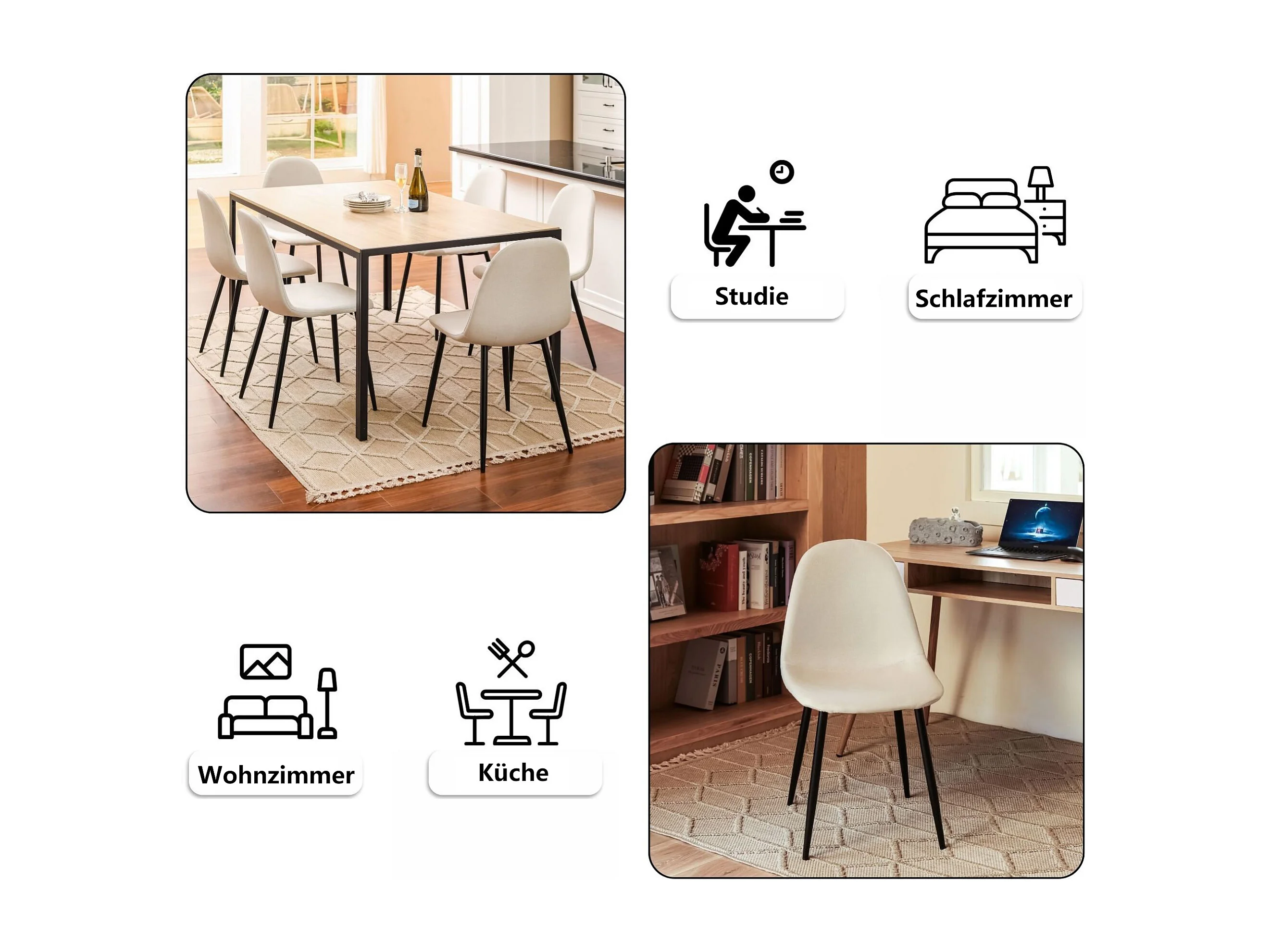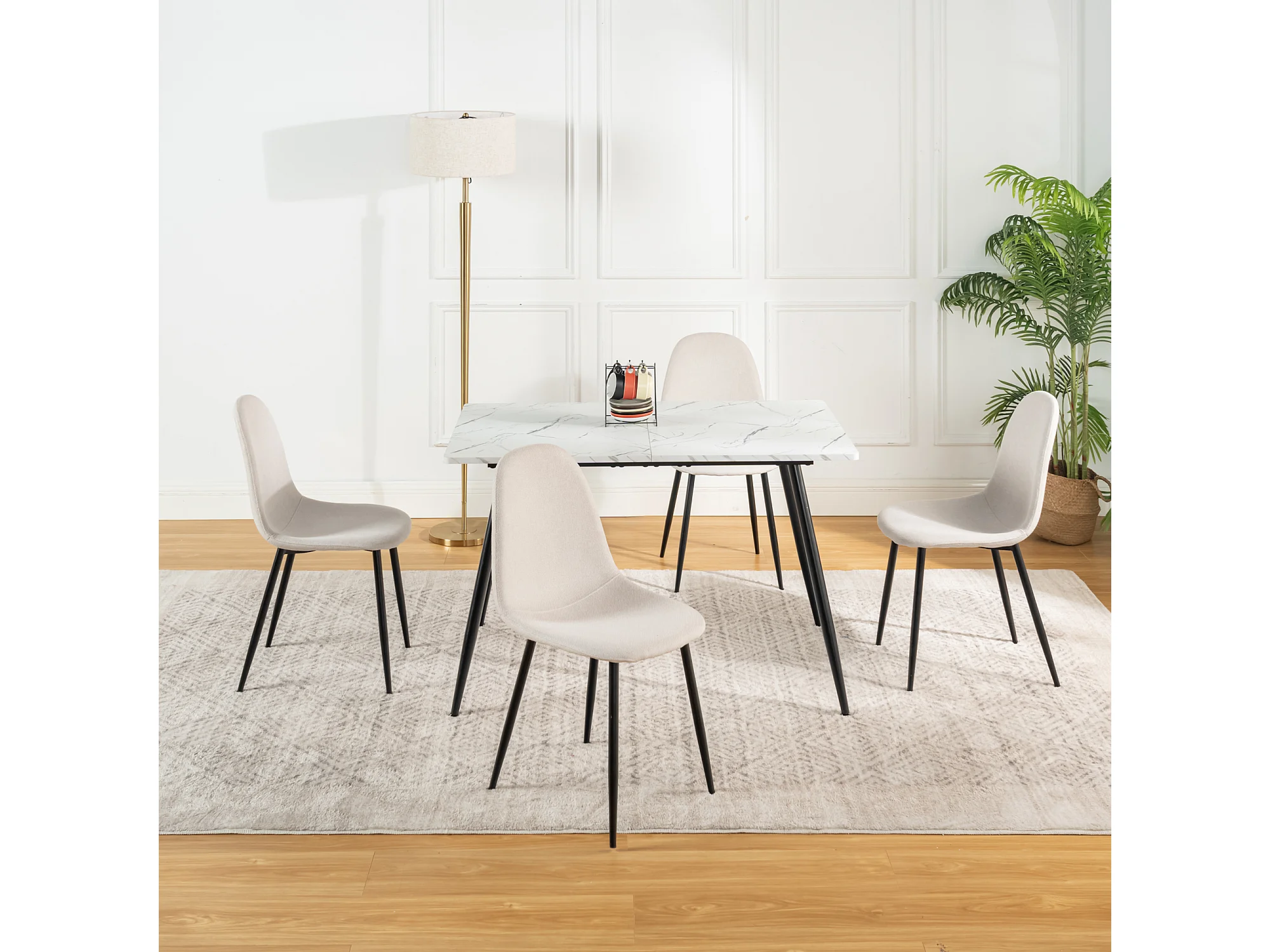 URBAN MEUBLE Ensemble table effet marbre blanc et 4 chaises tissu beige