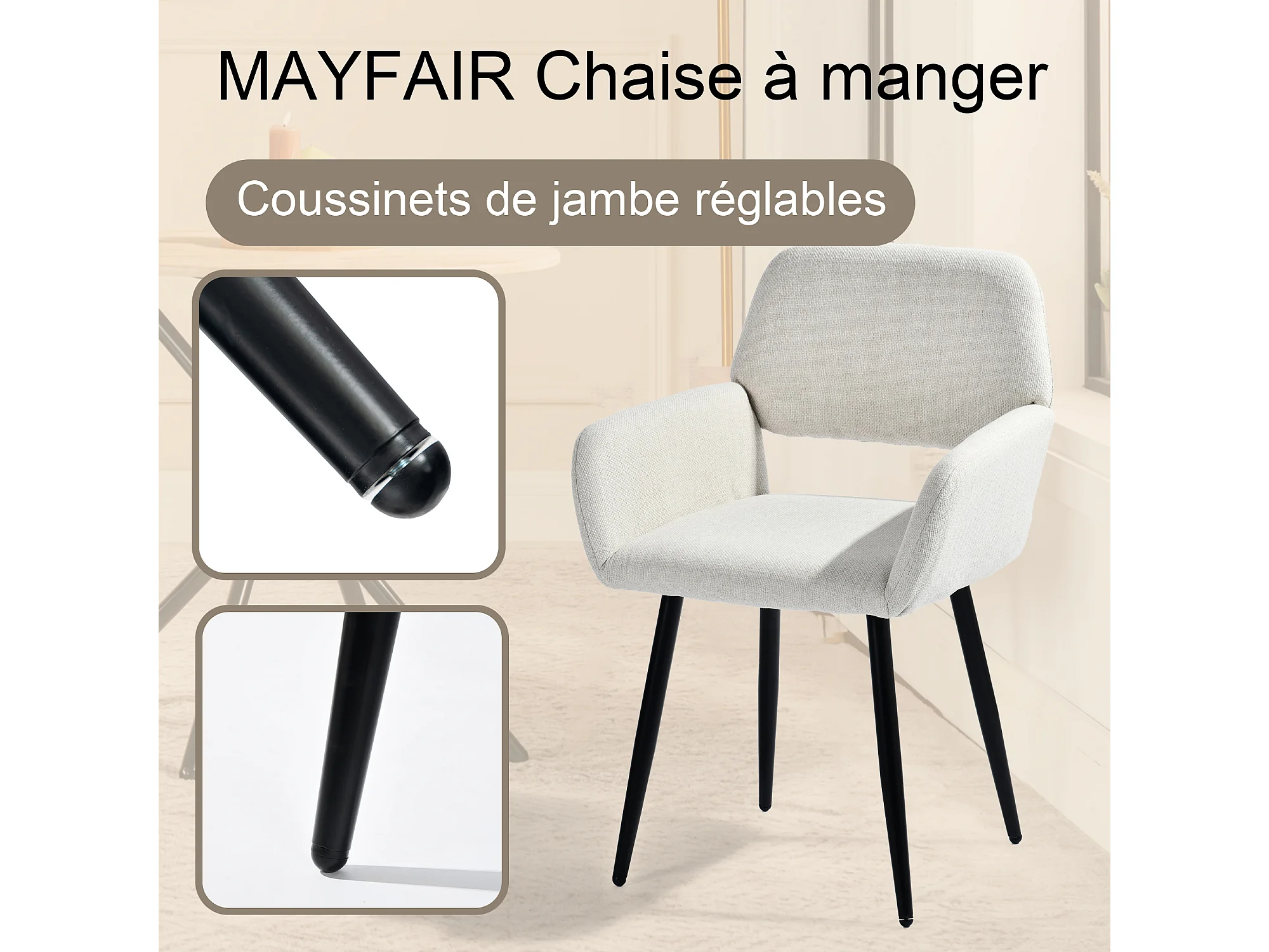 URBAN MEUBLE Ensemble table effet marbre blanc et 4 chaises tissu beige