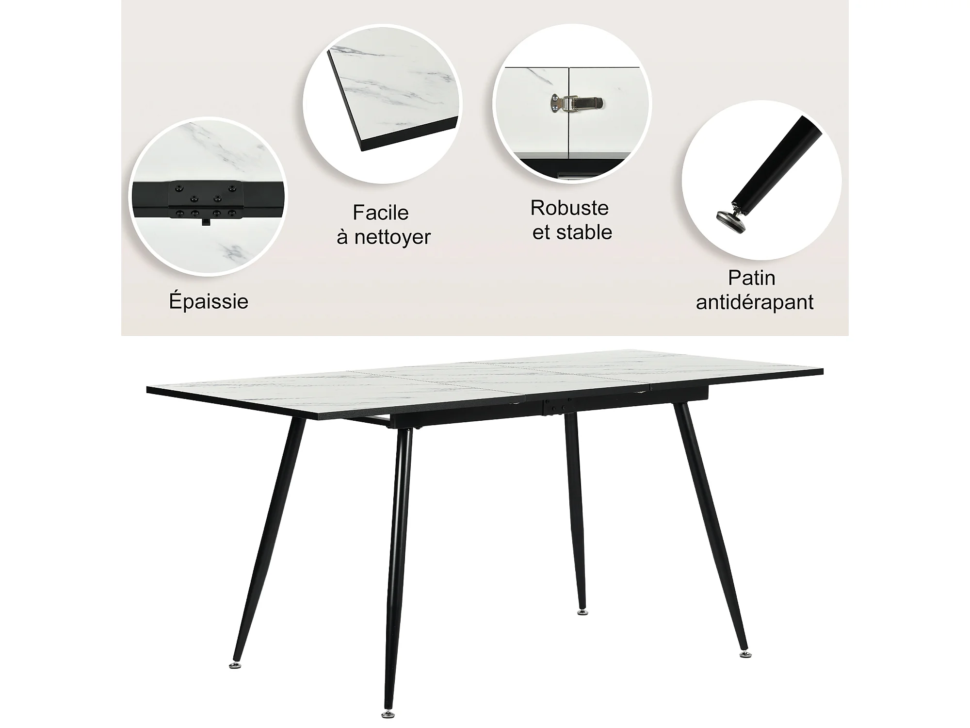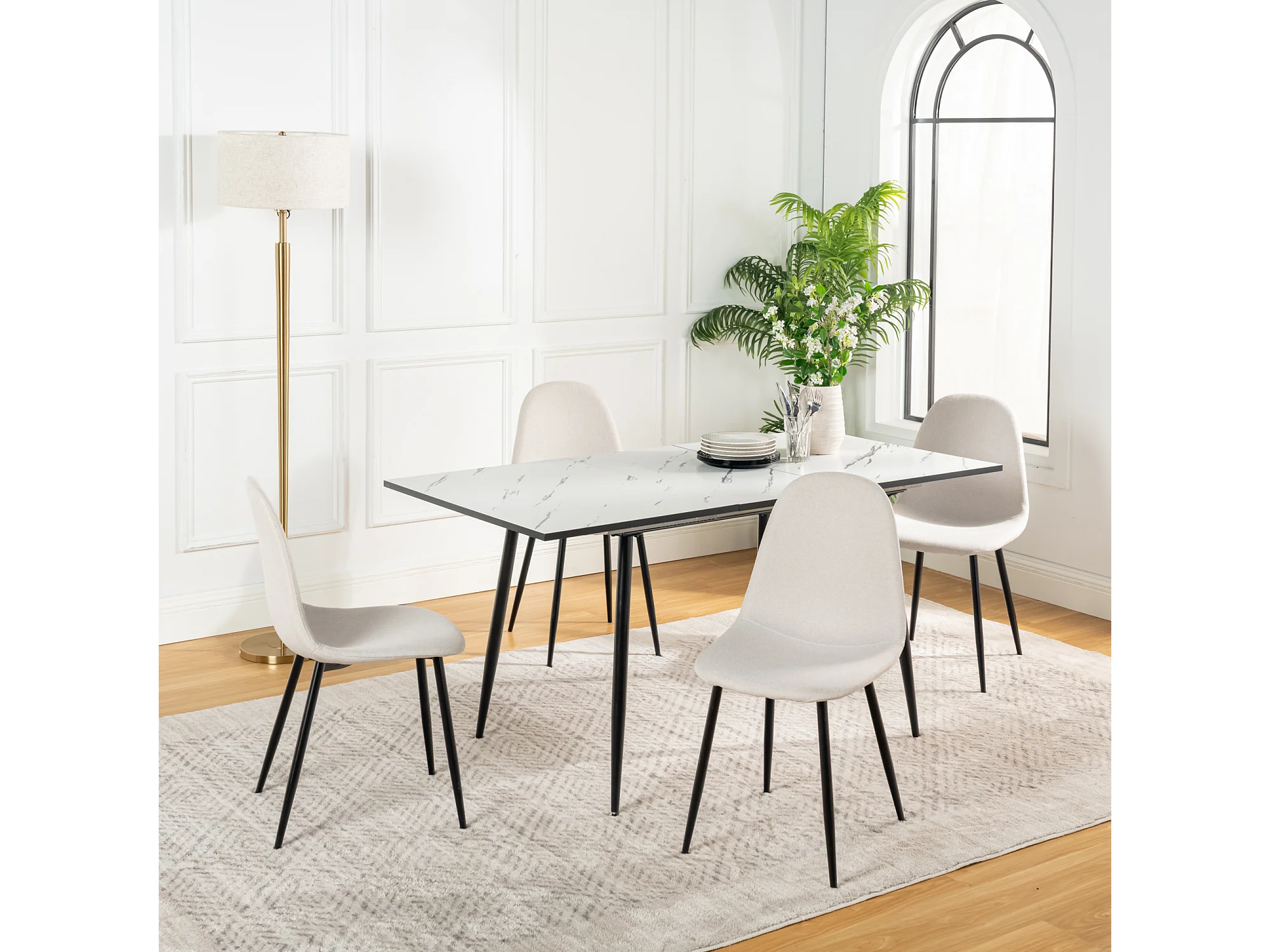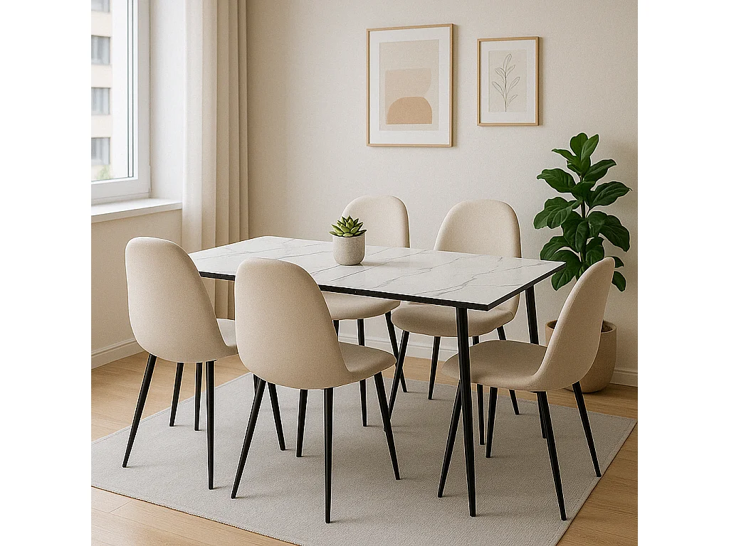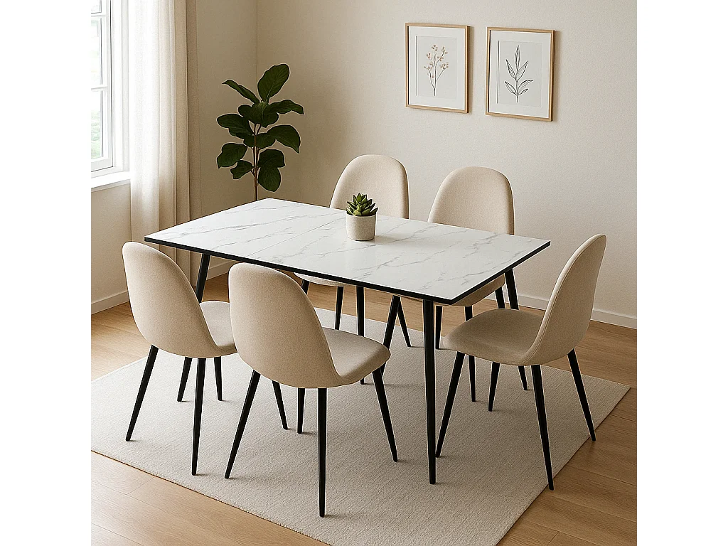 URBAN MEUBLE Ensemble table extensible marbre blanc et 4 chaises tissu beige