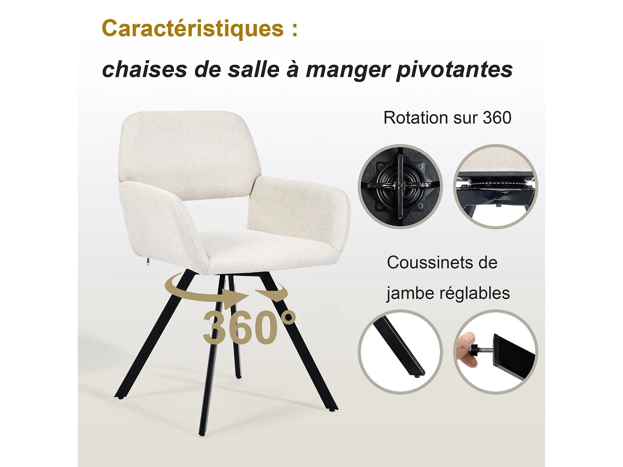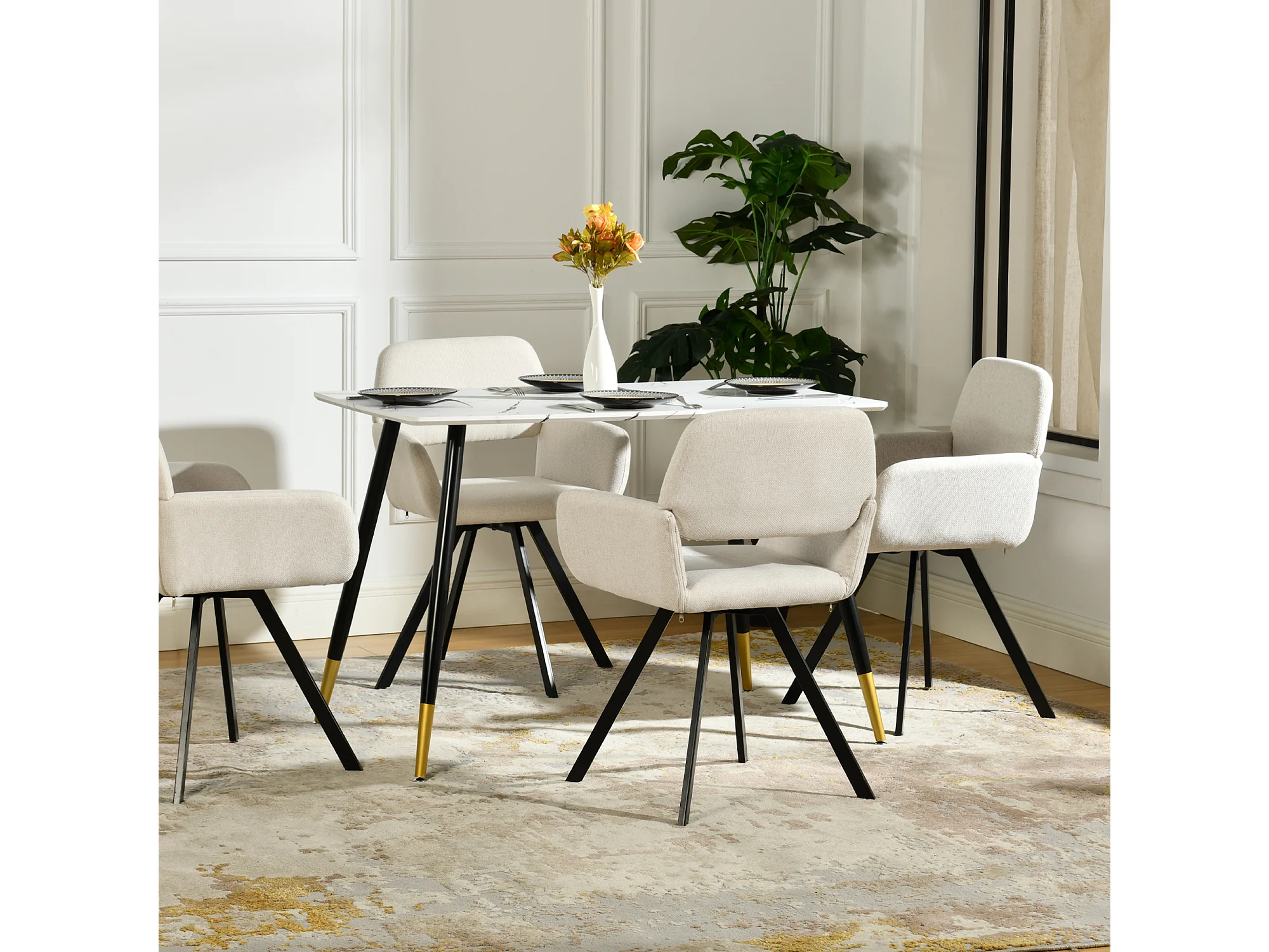 URBAN MEUBLE Ensemble table marbre blanc et 4 chaises tissu beige
