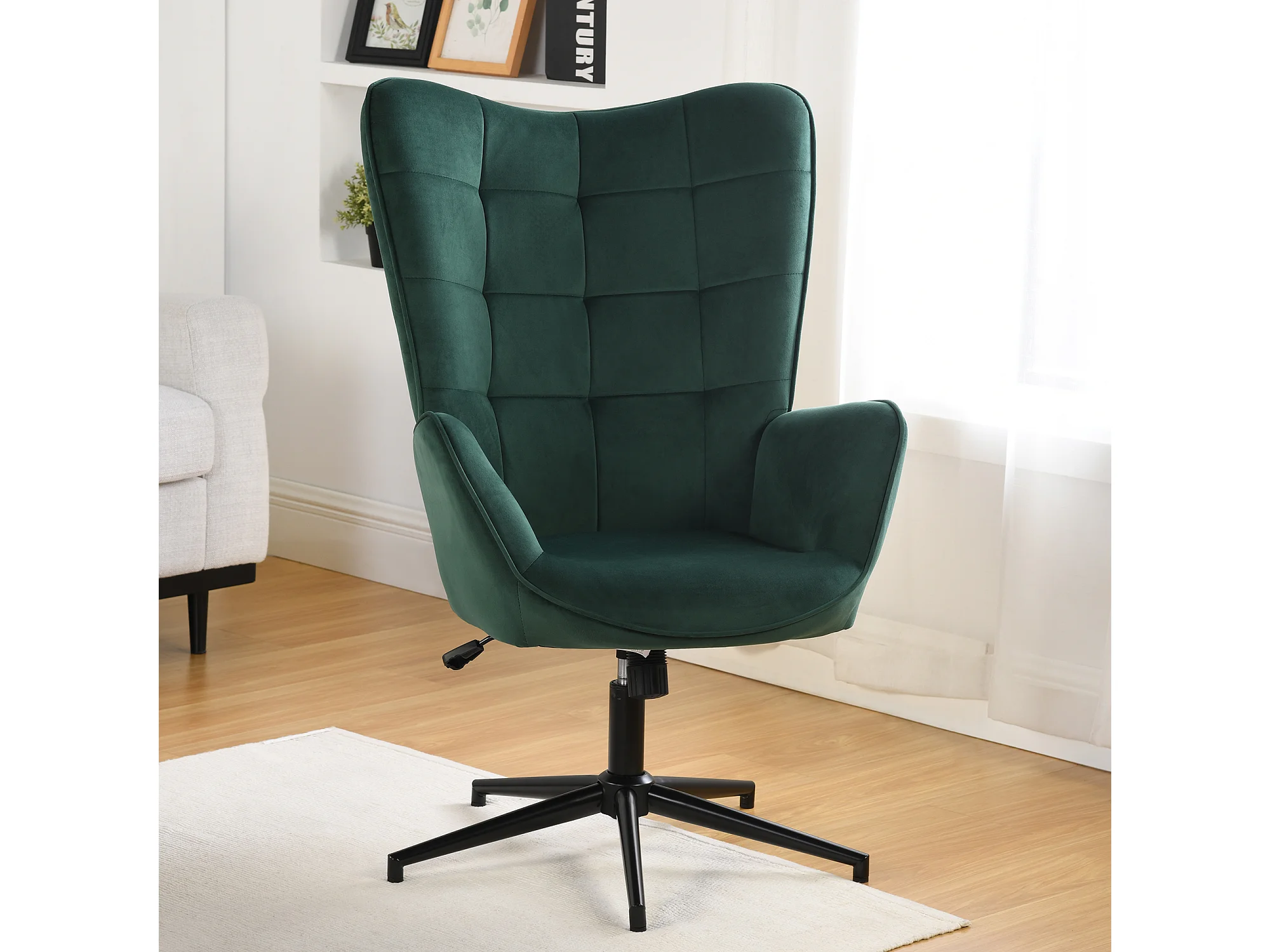 URBAN MEUBLE Fauteuil Scandinave Chaise Pivotant pour Bureau Salon Chambre avec Un revêtement en Velours des Accoudoirs Rembourés, Métal, vert, 70*80*100CM