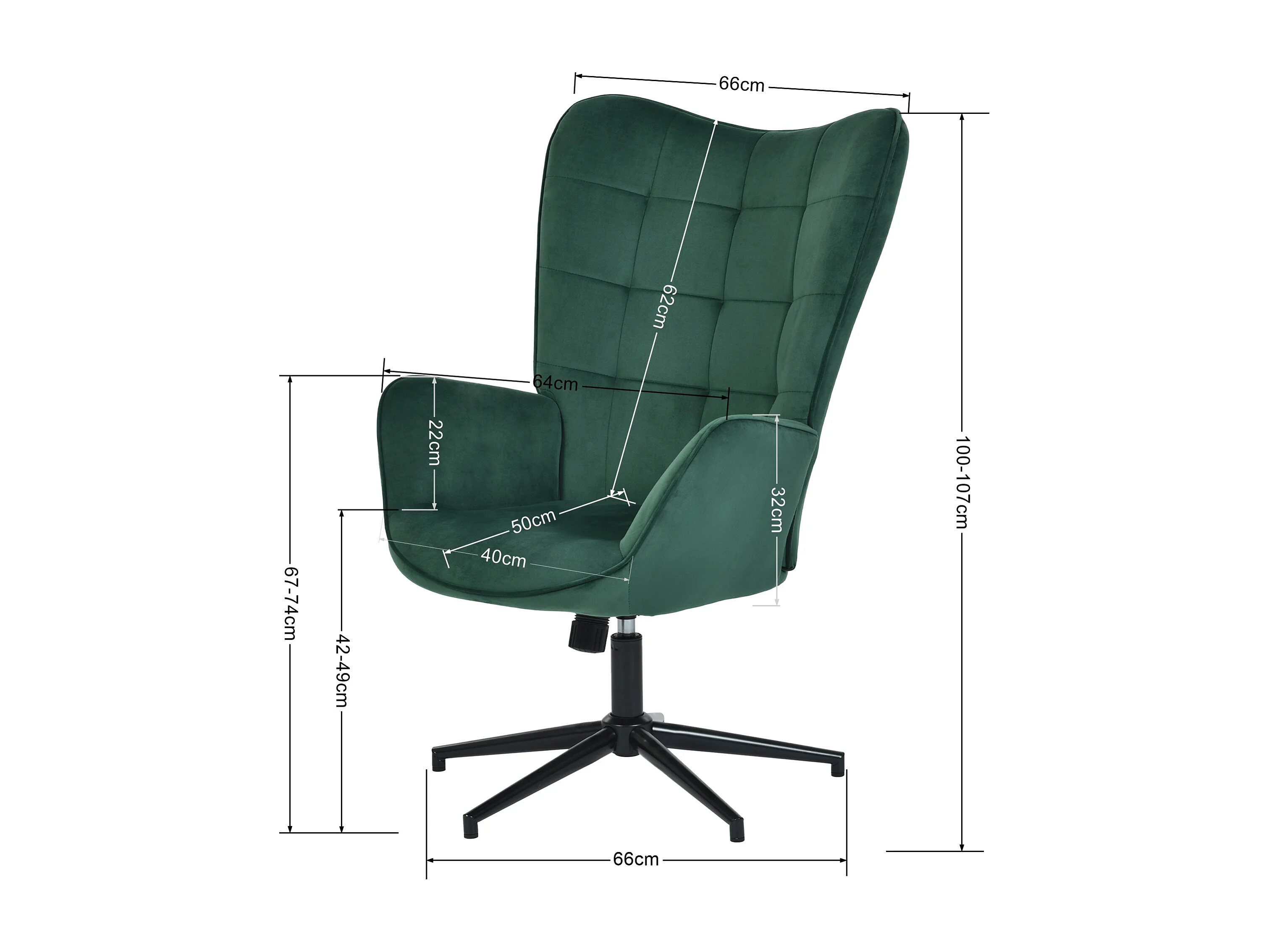 URBAN MEUBLE Fauteuil de bureau scandinave avec accoudoirs, 360°, en velours vert IRIS SMALL VELVET GREEN