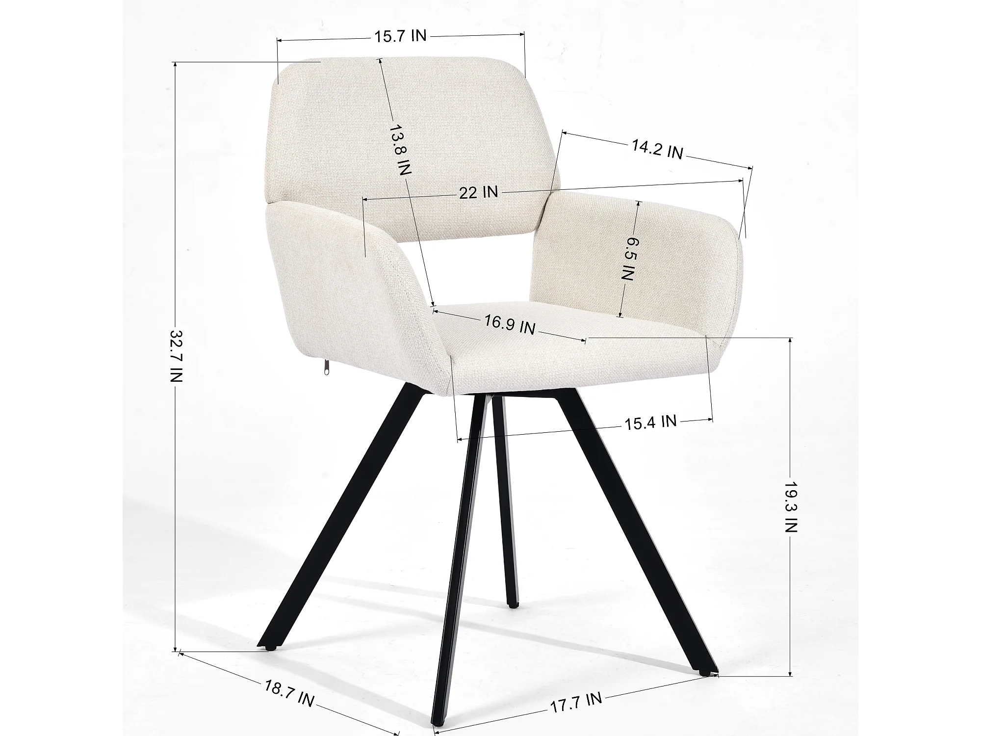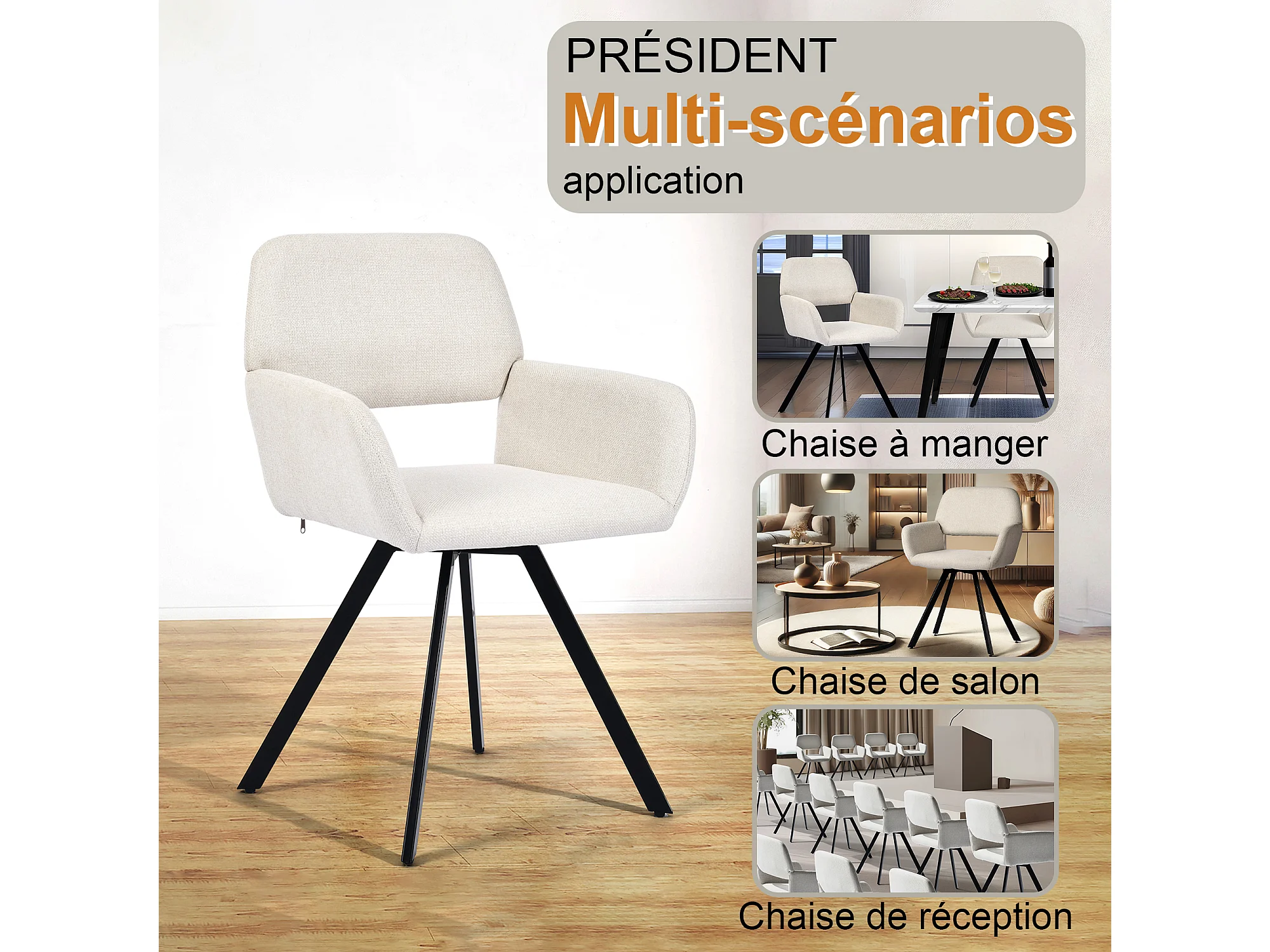 URBAN MEUBLE Lot de 2 chaises de salle à manger scandinaves rotative tissu beige