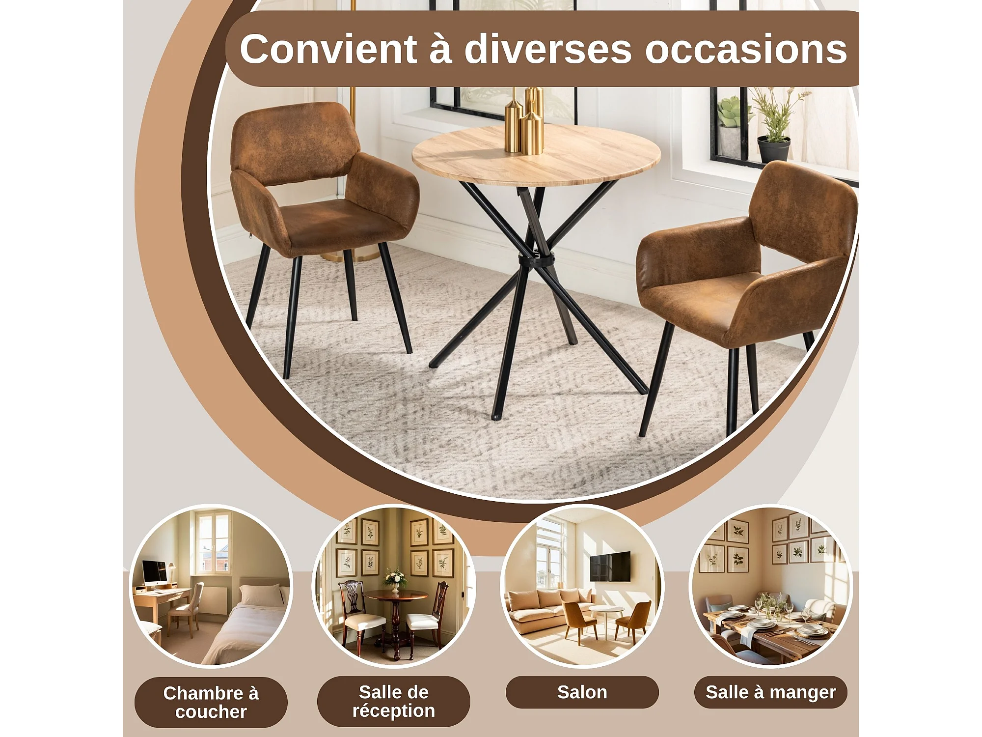 Chaises à manger avec accoudoirs lot de 2 marron tissu