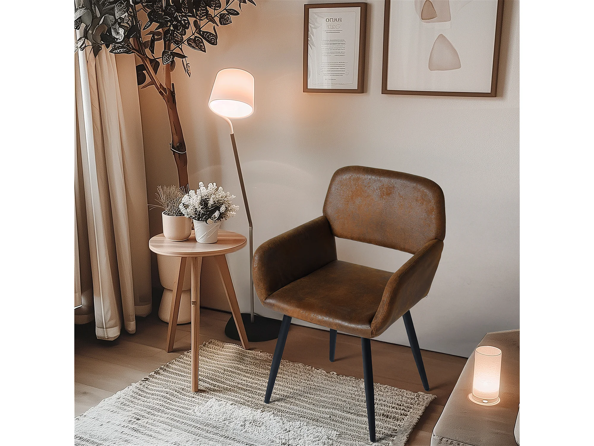 URBAN MEUBLE Lot de 2 chaises de salle à manger style industriel tissu marron rétro pieds noirs MAYFAIR SUEDE BROWN