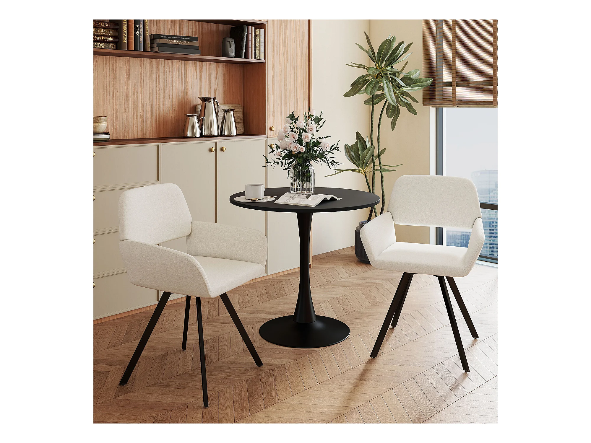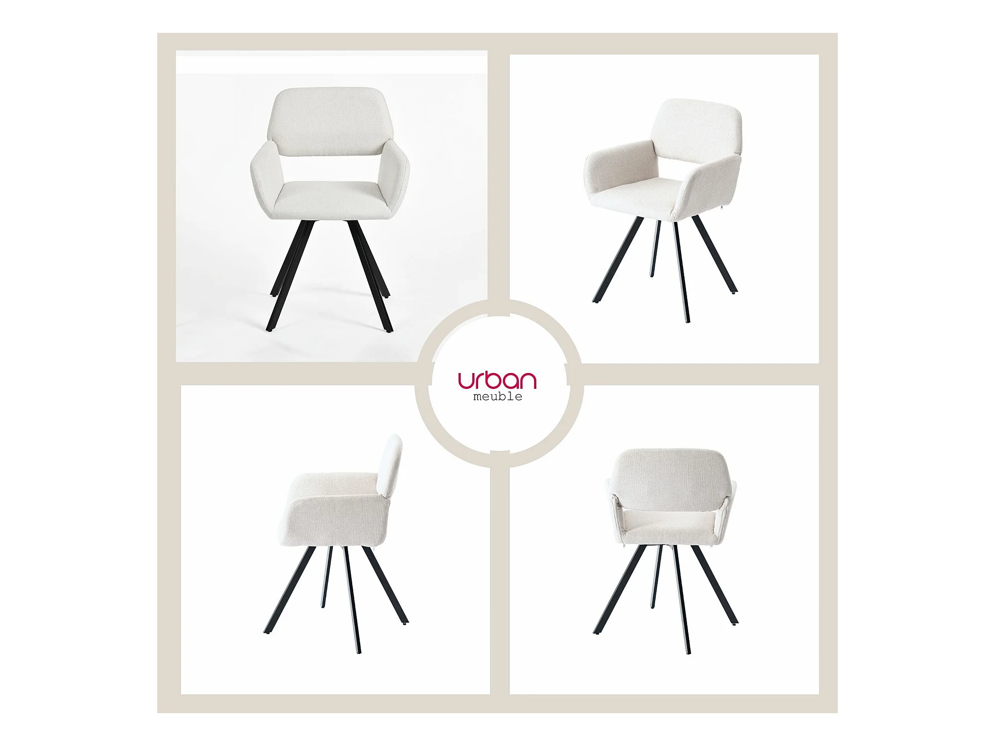URBAN MEUBLE Lot de 4 chaises de salle à manger scandinaves rotative tissu beige