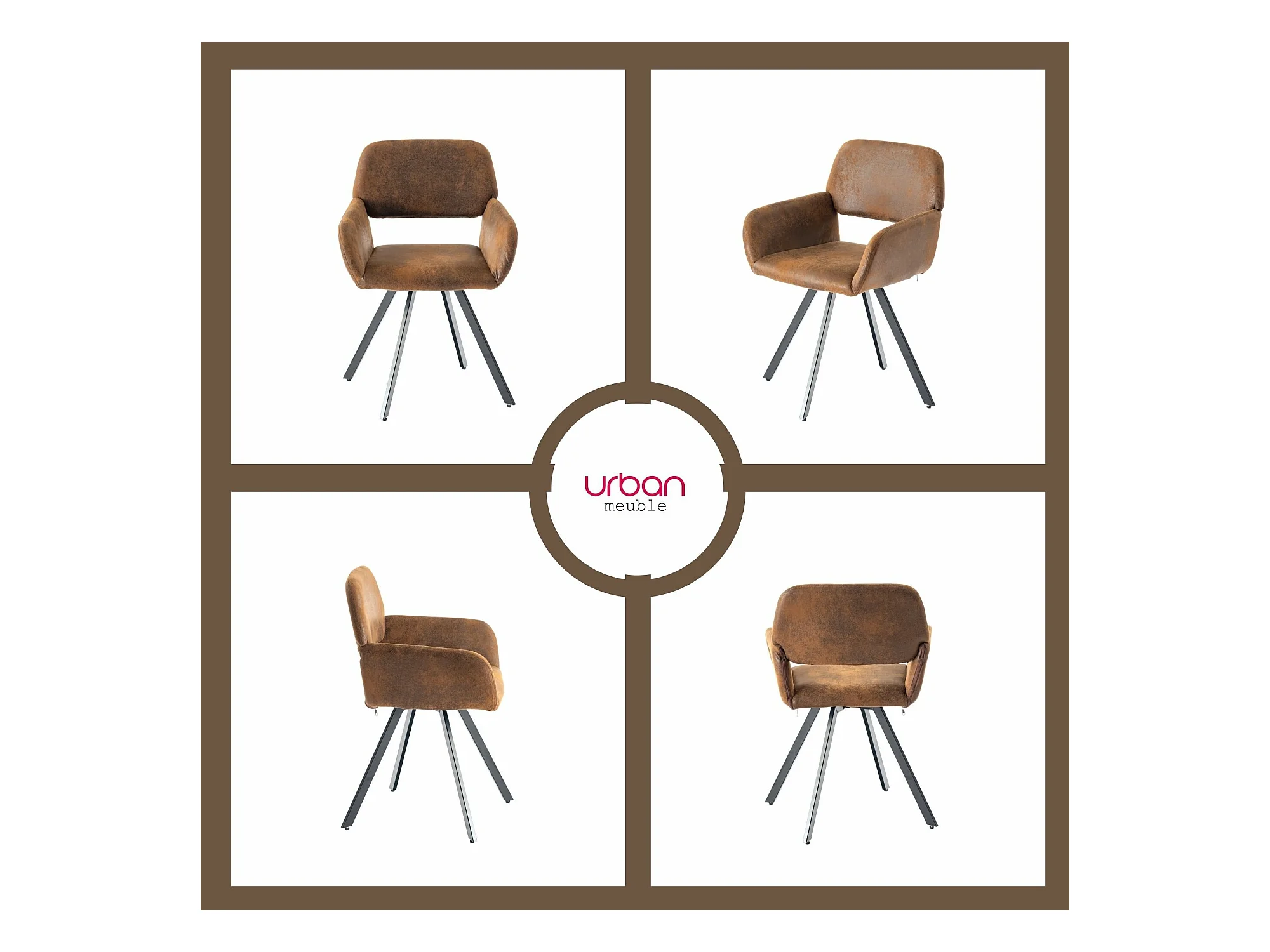 URBAN MEUBLE Lot de 4 chaises de salle à manger vintage pivotant tissu suède marron