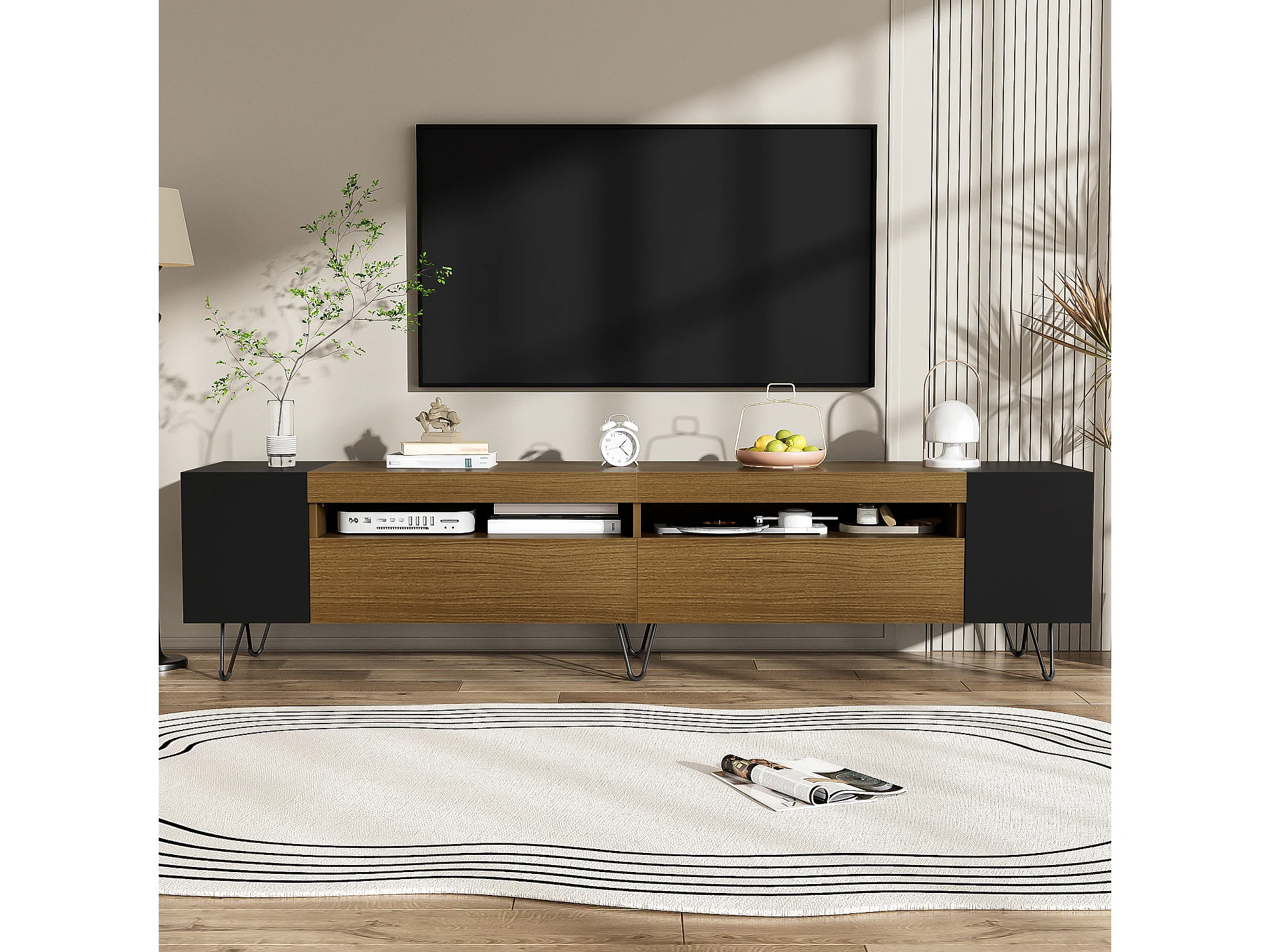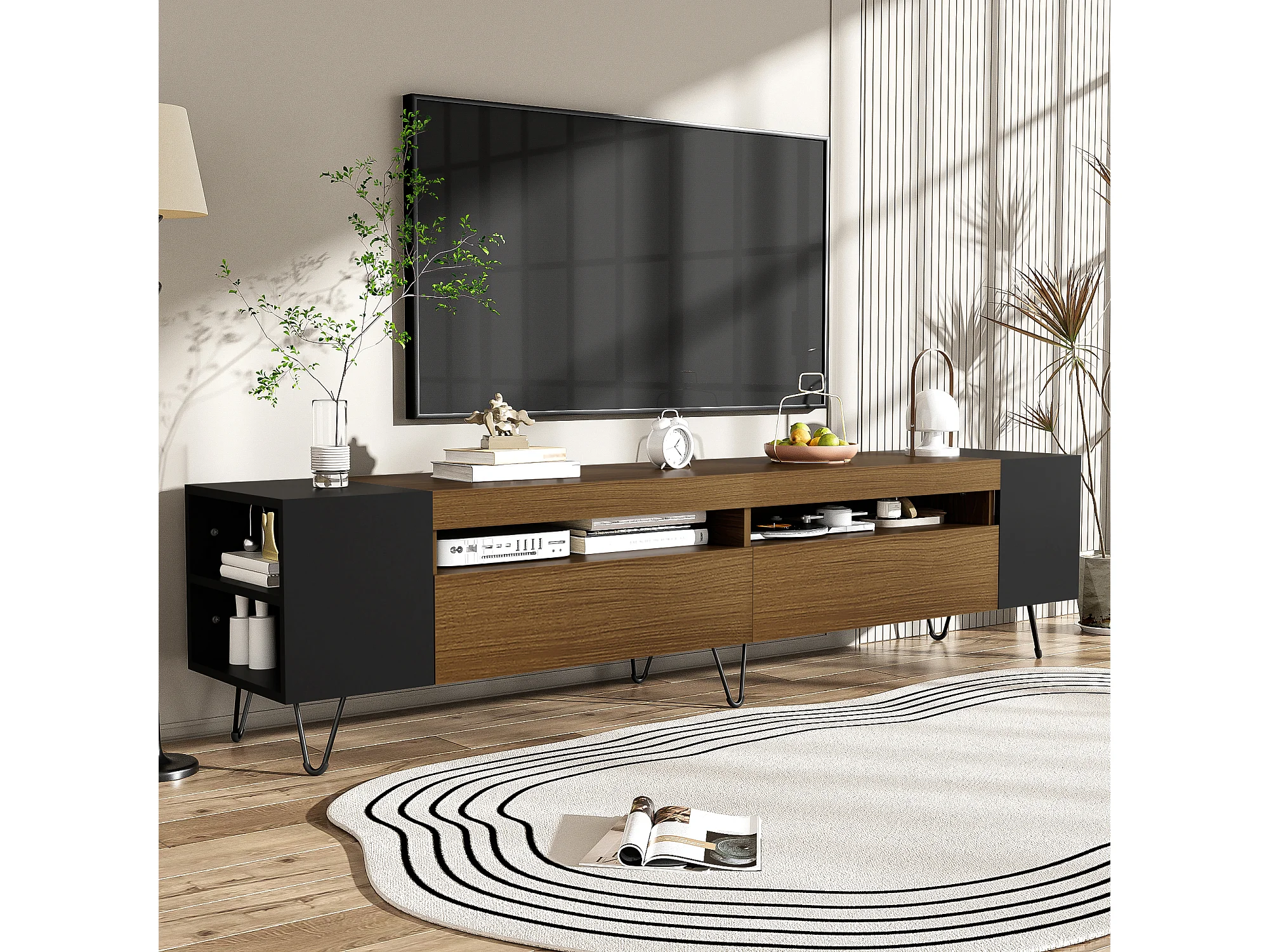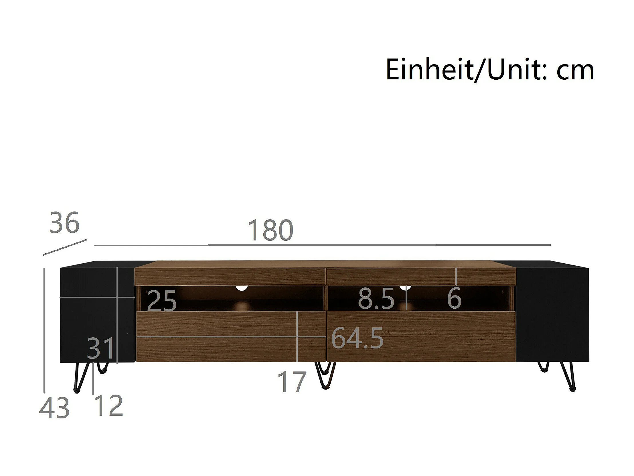 URBAN MEUBLE Meuble TV noir et effet bois 2 porte battantes étagère ouvertes cotés 180*36*43cm