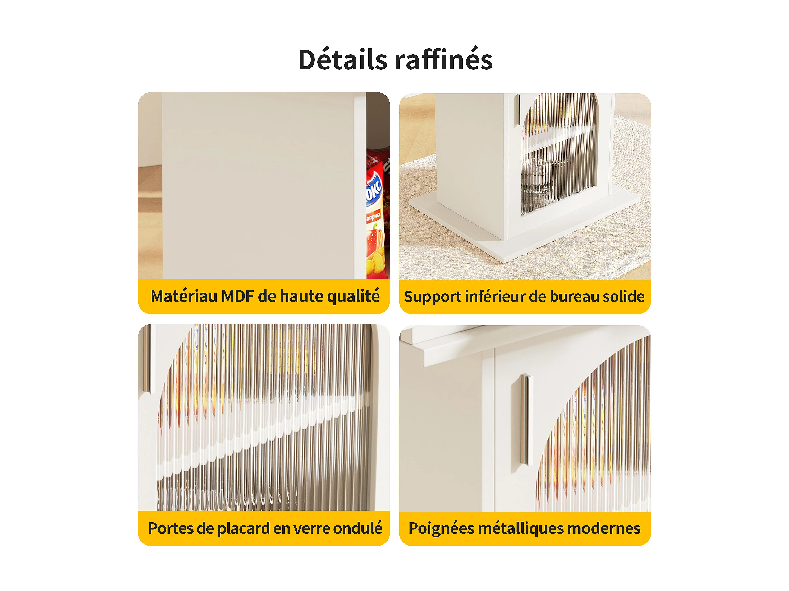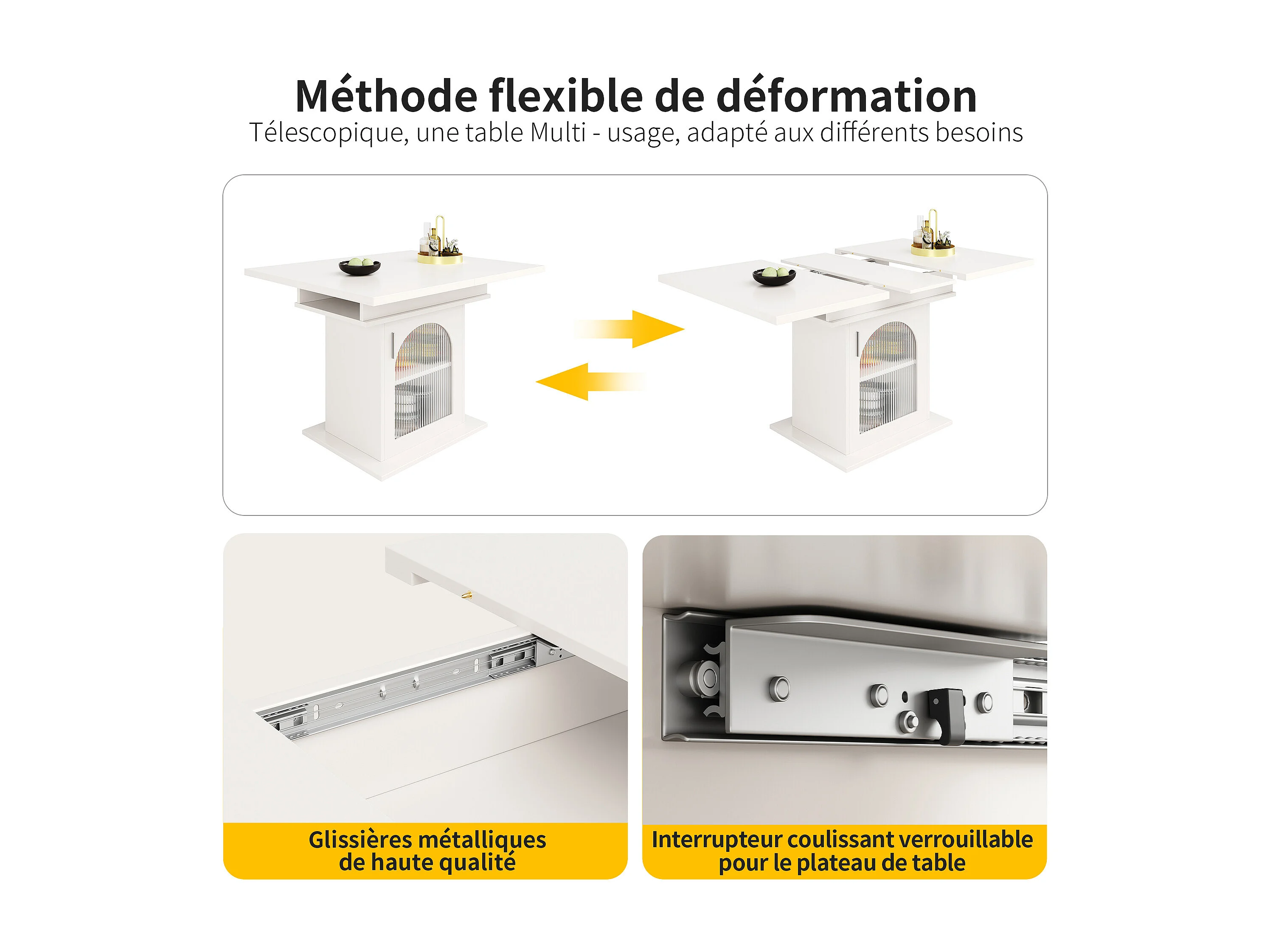 URBAN MEUBLE Table de salle à manger extensible blanche avec espace de rangement et verre 110-140*70cm