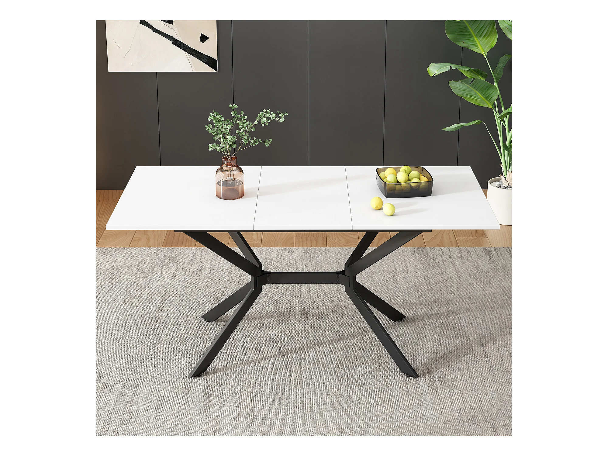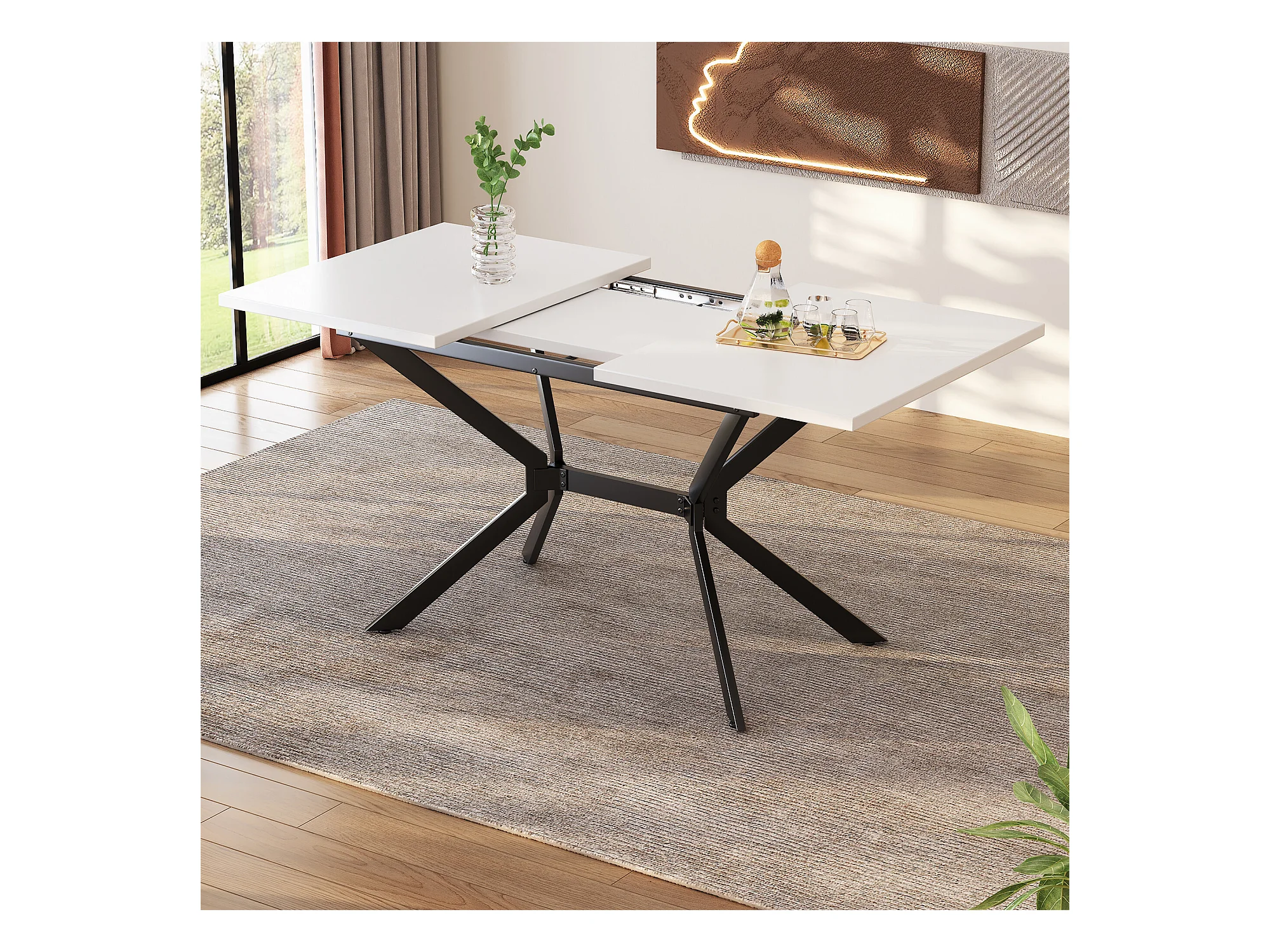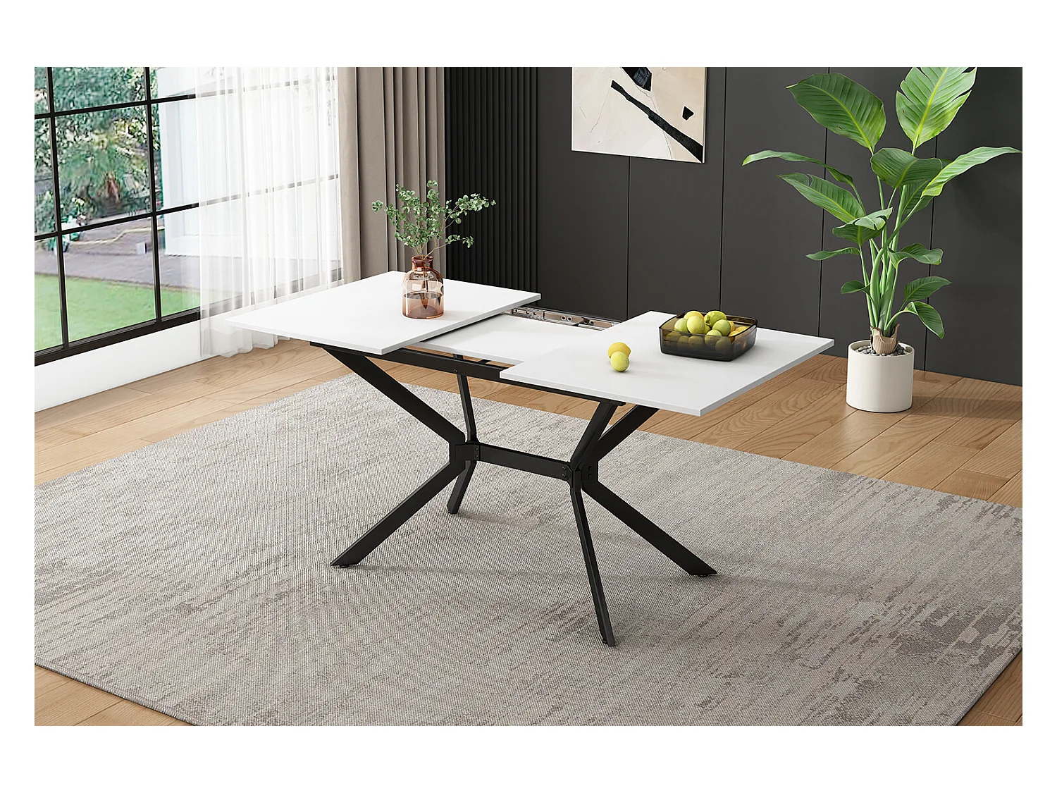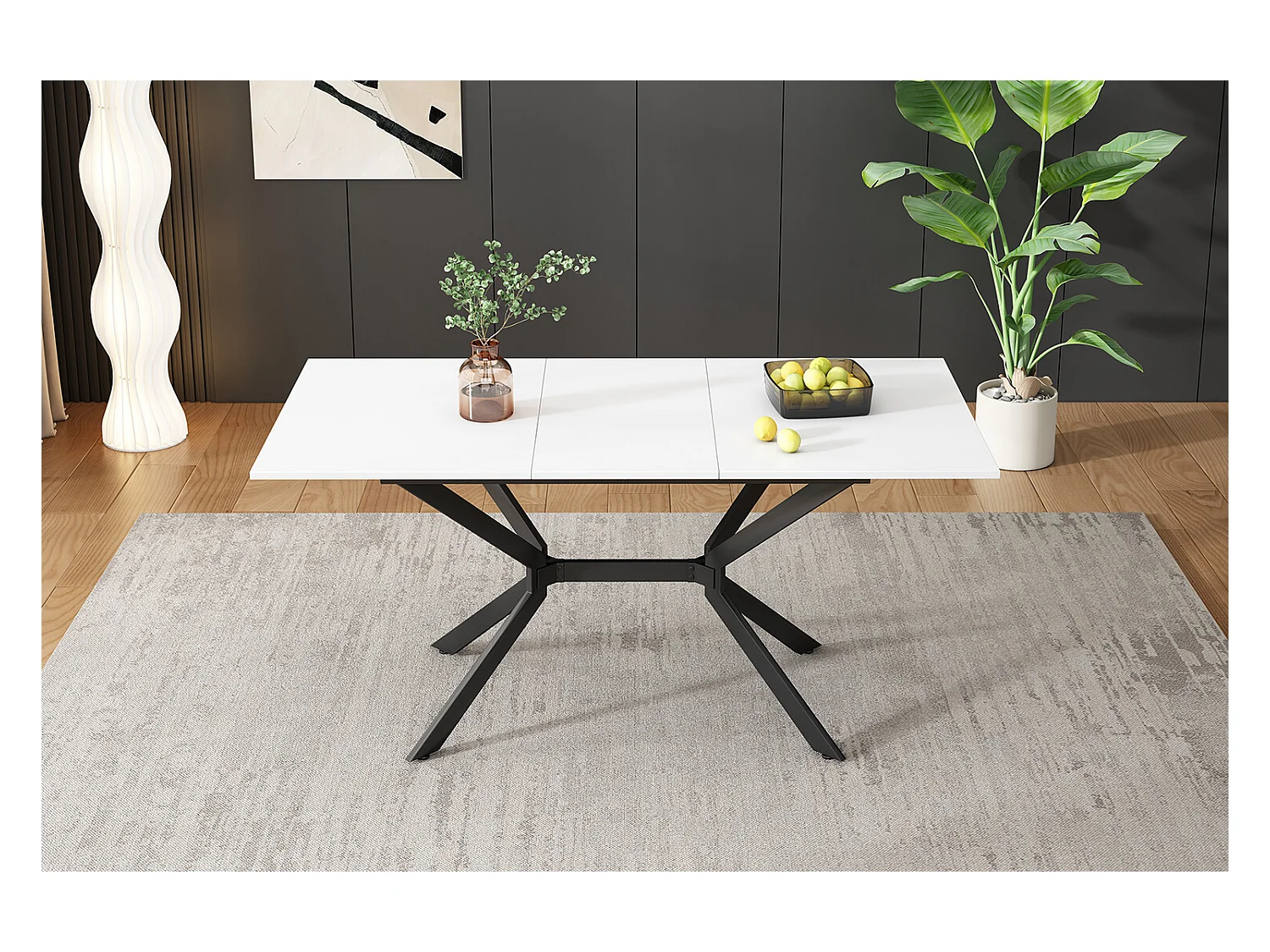 URBAN MEUBLE Table de salle à manger rectangulaire extensible blanche pieds noirs 120-160*80cm