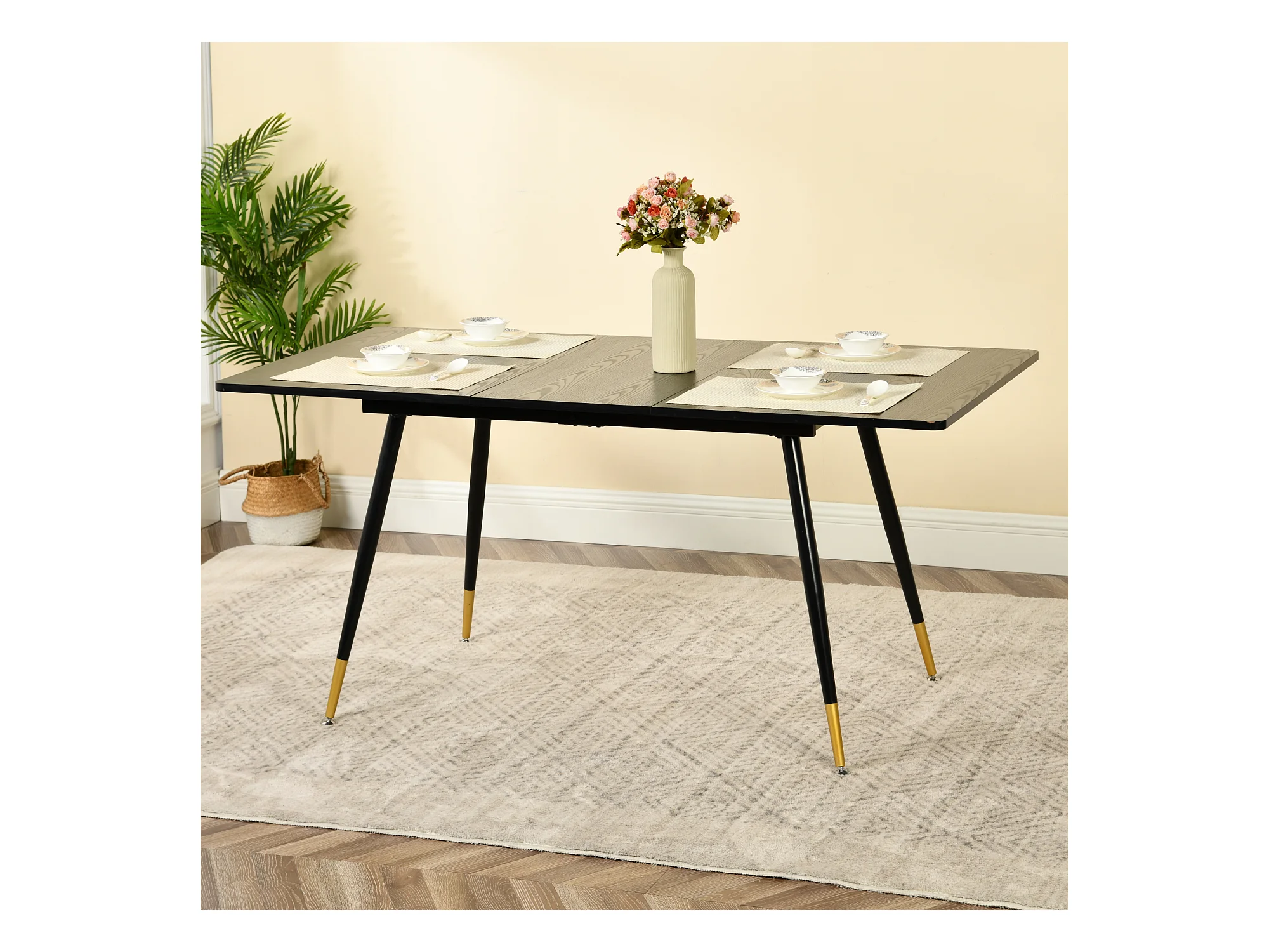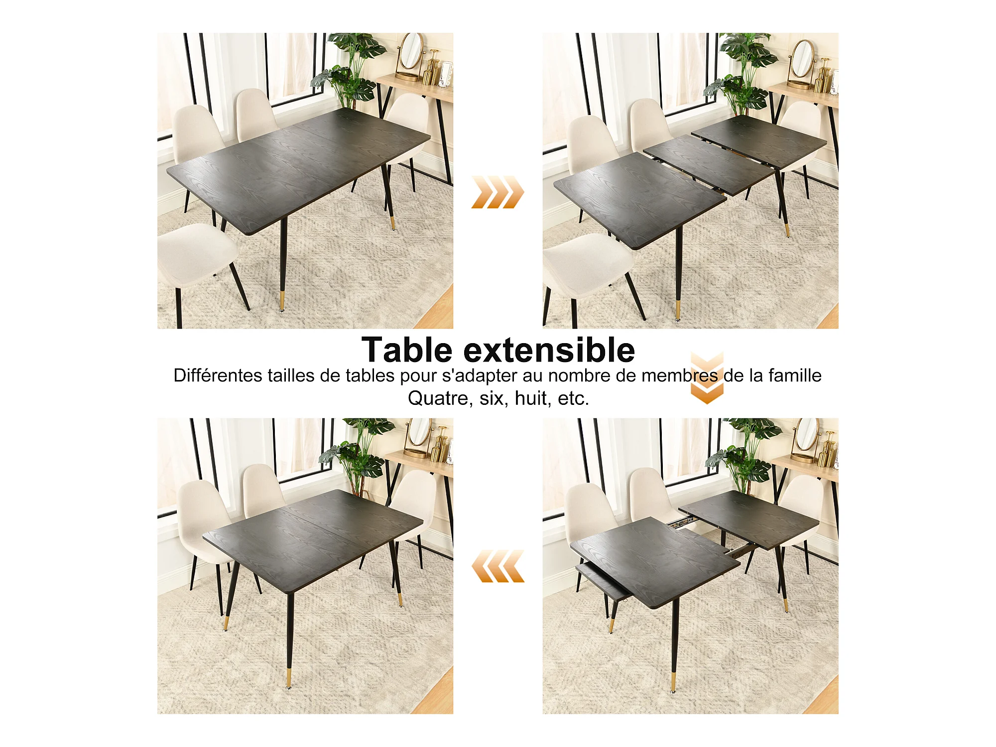 URBAN MEUBLE Table de salle à manger rectangulaire extensible noir effet bois de style scandinave pieds points dorés 120-160