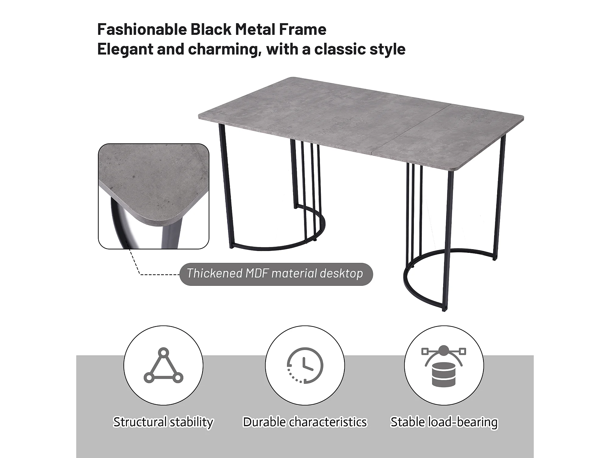 URBAN MEUBLE Table de salle à manger rectangulaire moderne effet marbre gris pieds métalliques noirs 140 x 80 cm