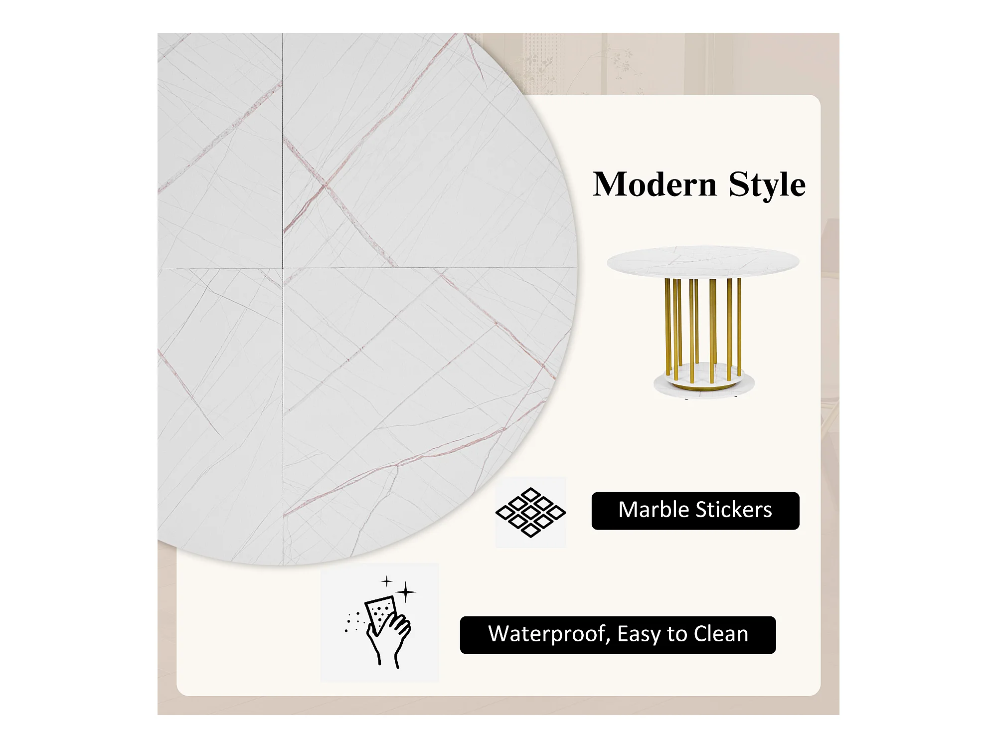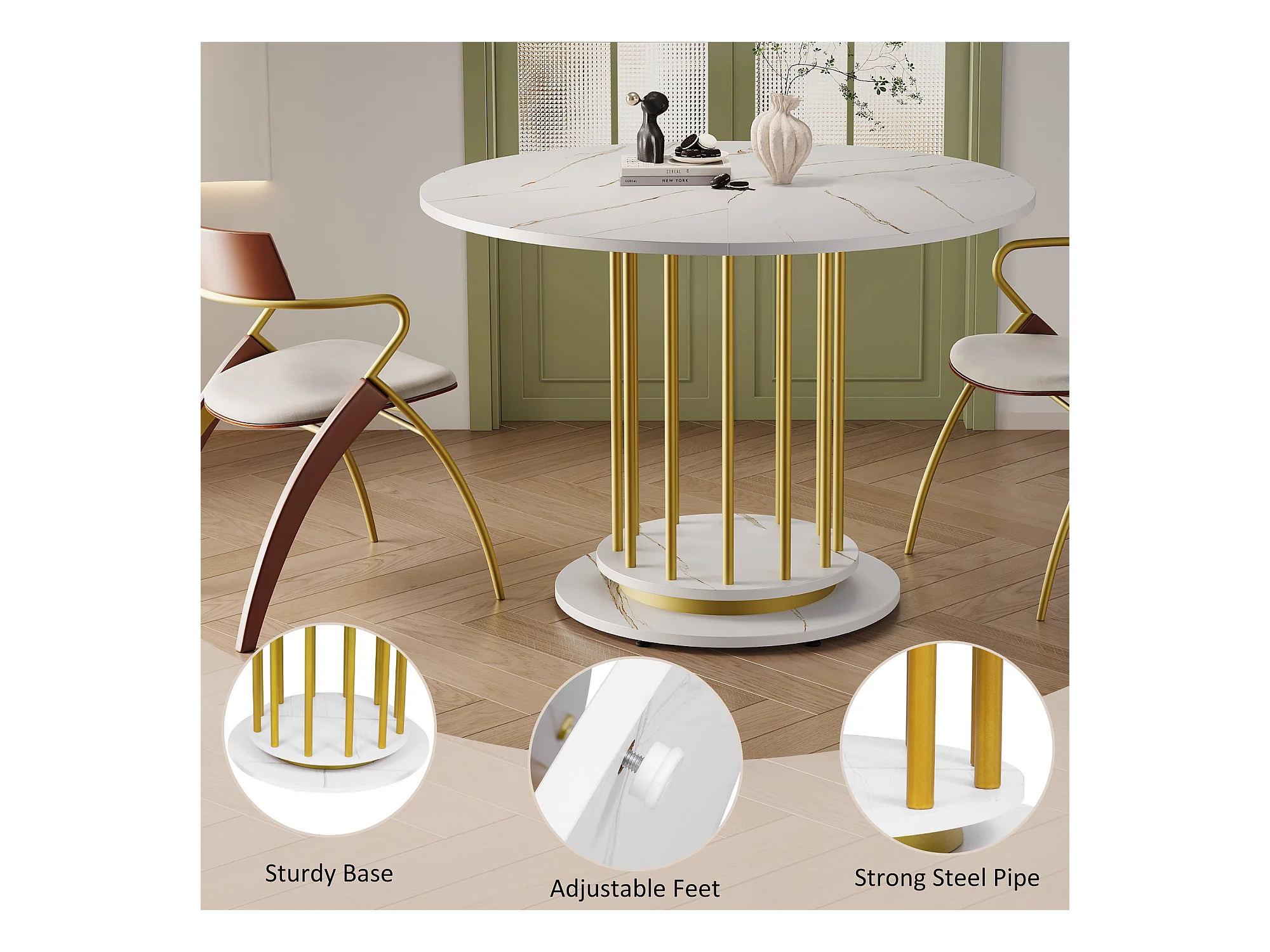 URBAN MEUBLE Table de salle à manger ronde effet marbre blanc avec piètement cylindrique doré