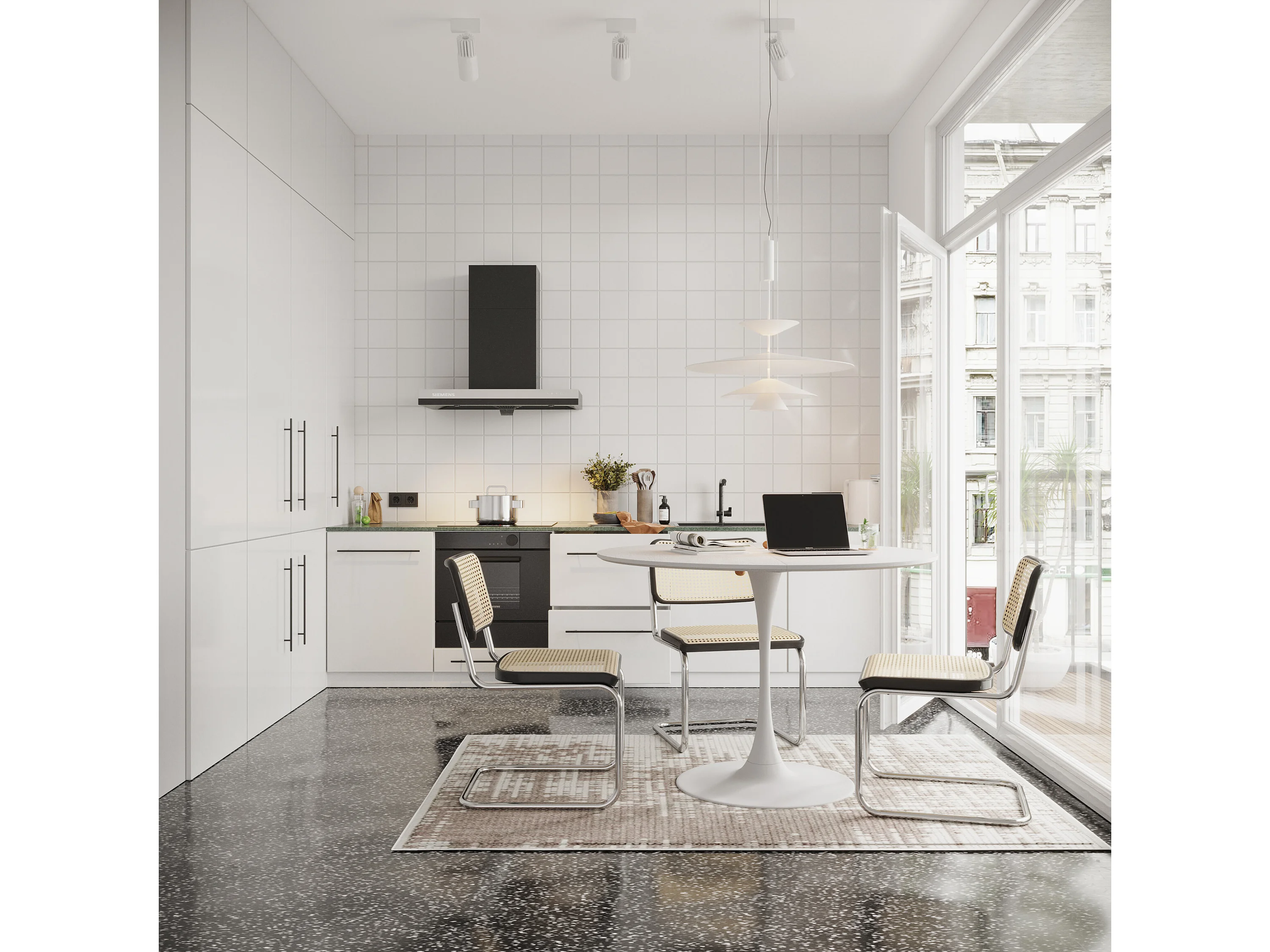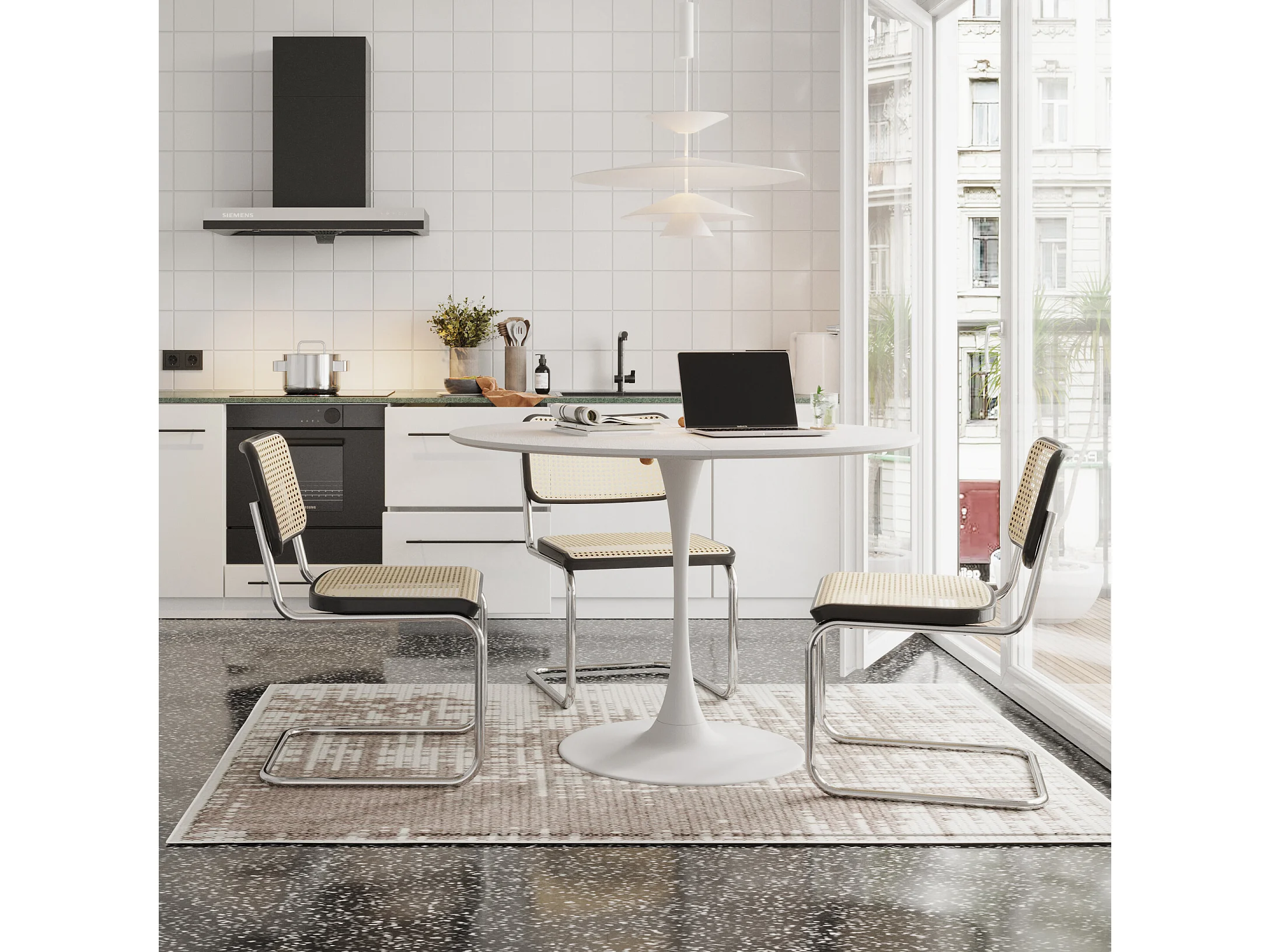 URBAN MEUBLE Table de salle à manger ronde moderne effet grain de bois blanche structure métallique 120*120*75cm