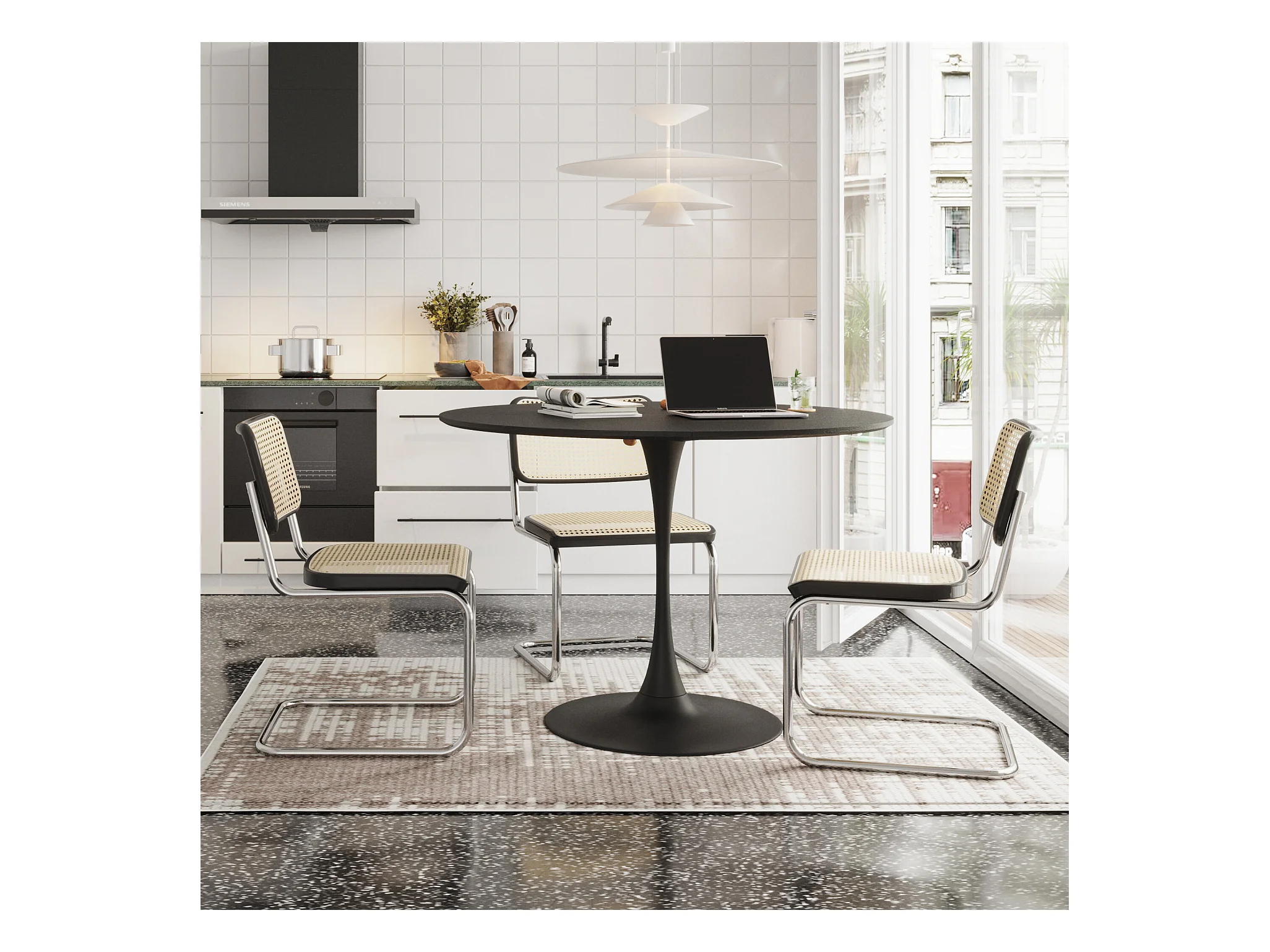 URBAN MEUBLE Table de salle à manger ronde moderne effet grain de bois noir structure métallique 120*120*75cm