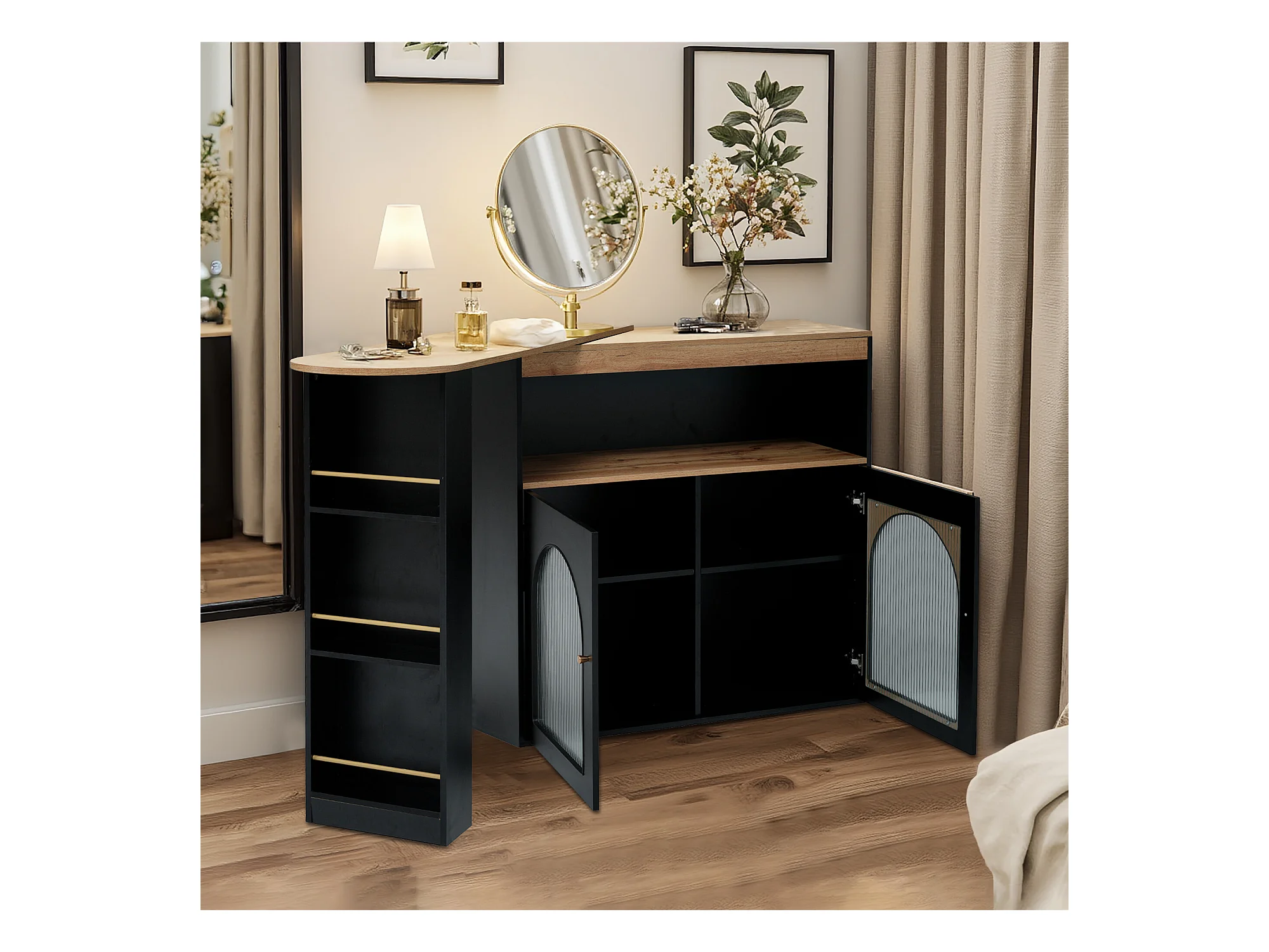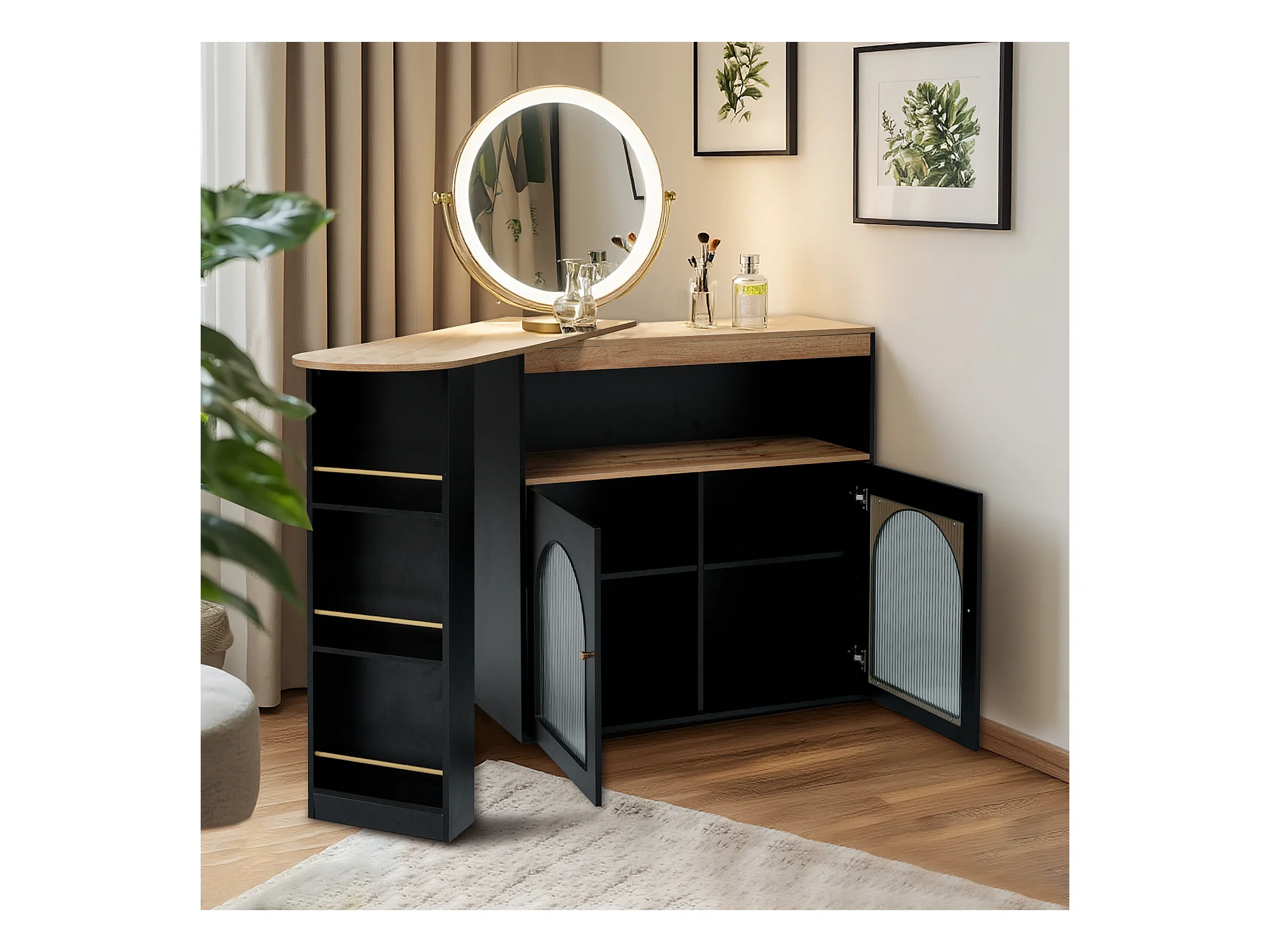 URBAN MEUBLE Vanité extensible rotative moderne noir avec rangement et bande lumineuse LED