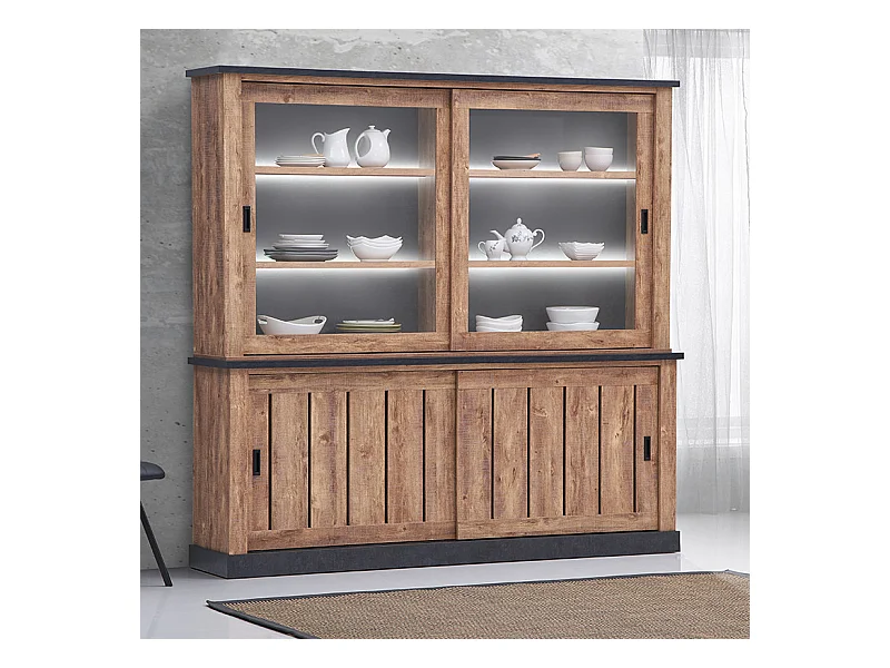 Vaisselier 2 + 2 portes avec éclairage Edouard