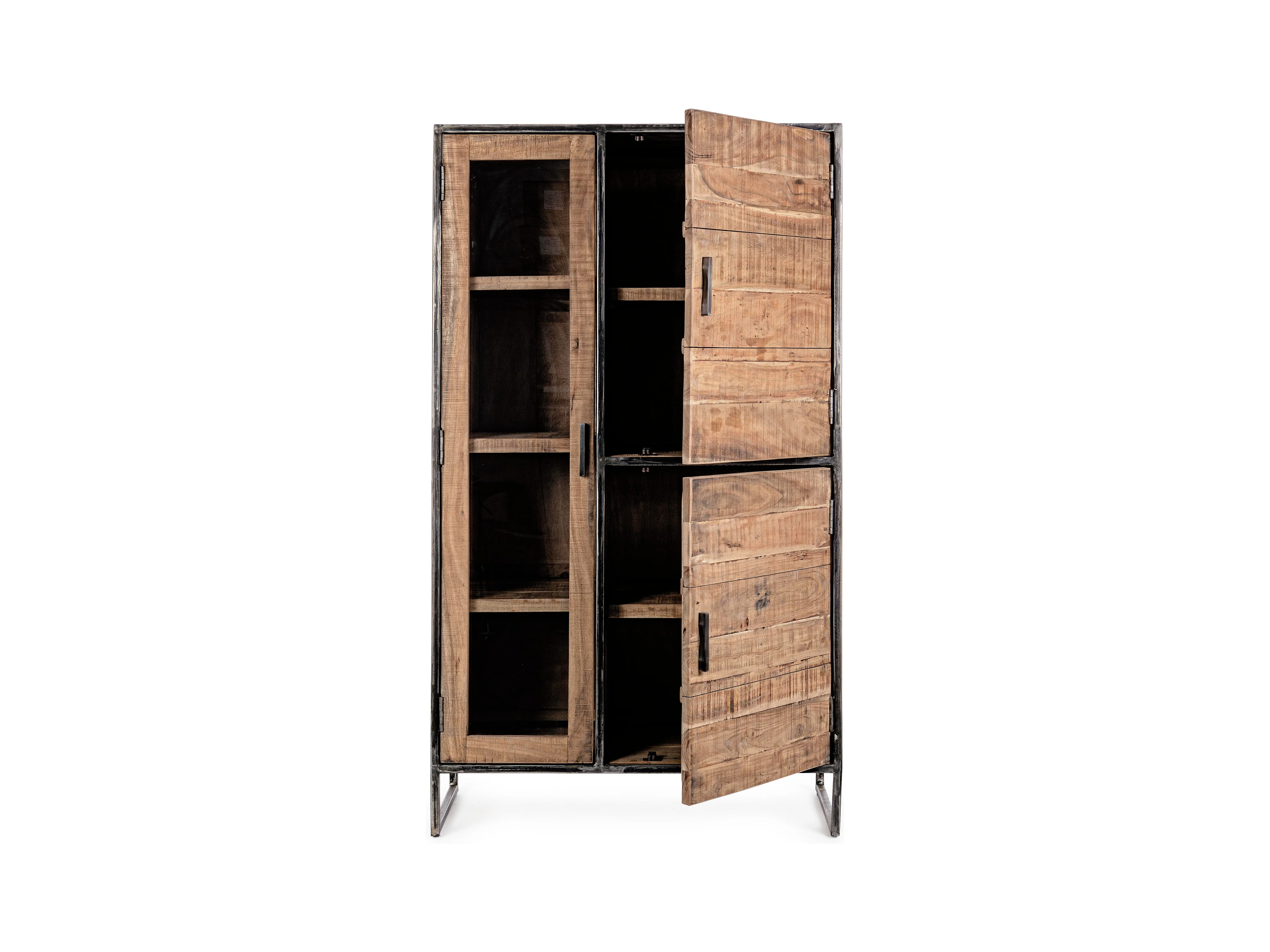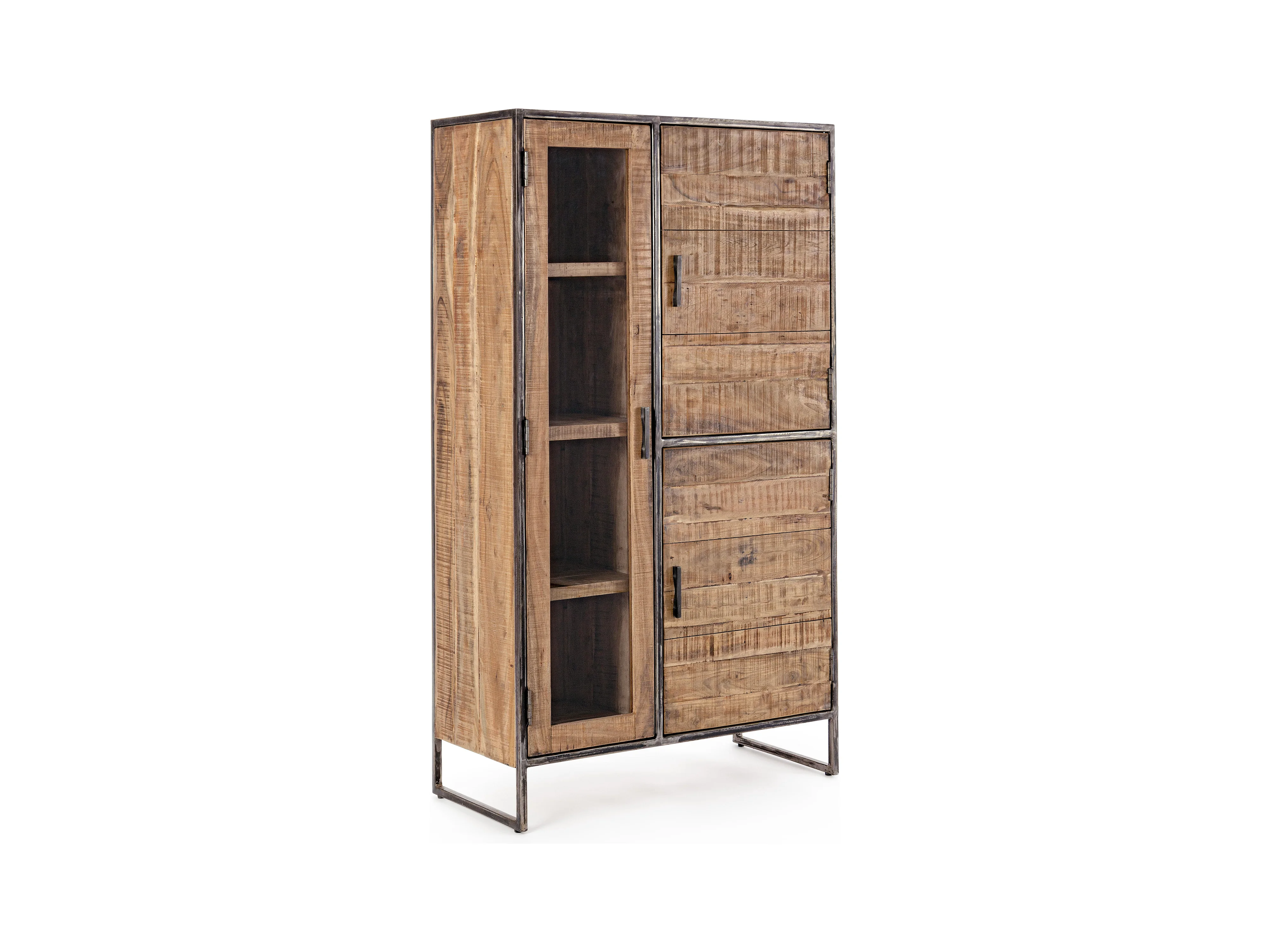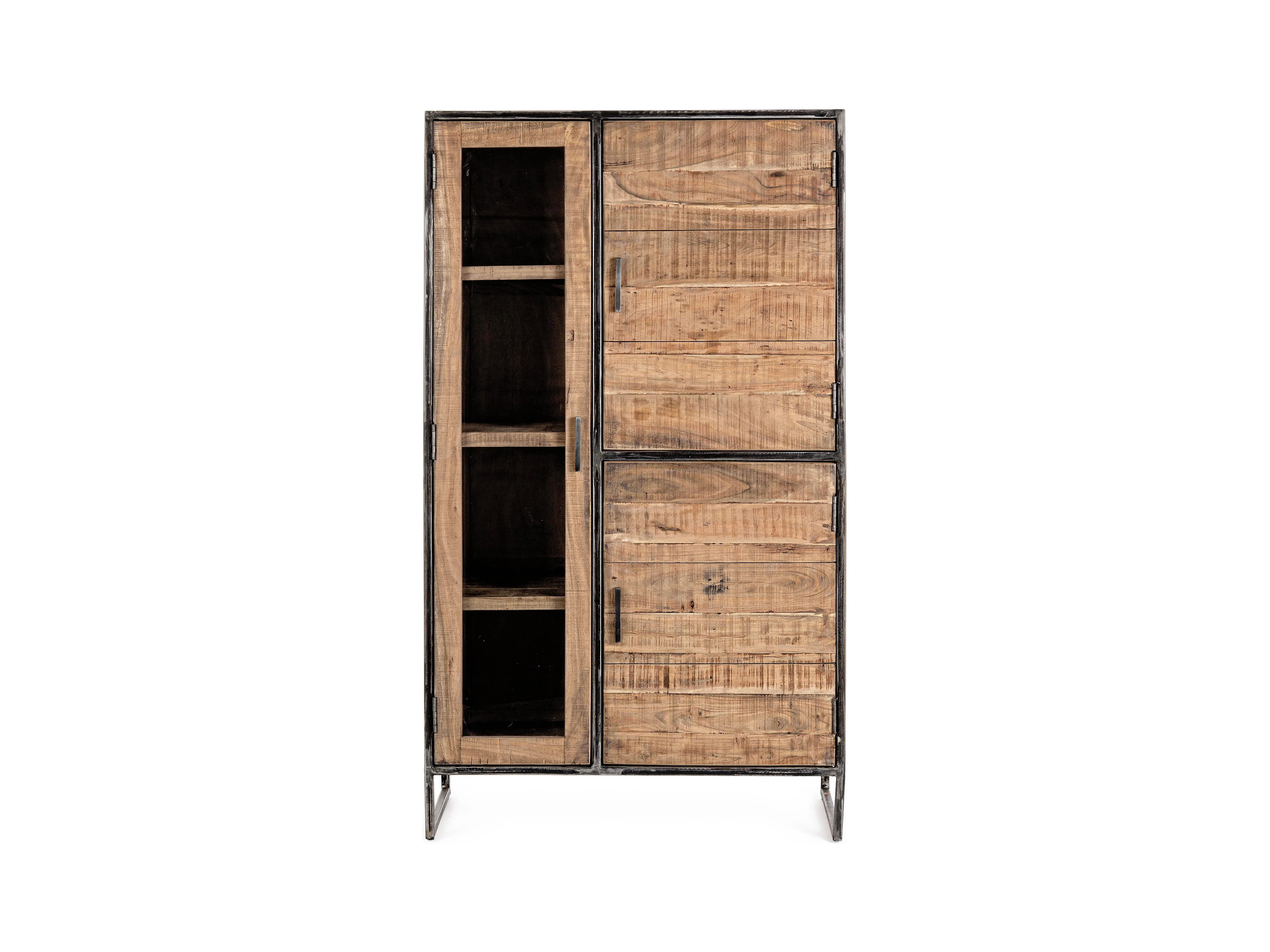 Vaisselier 3 portes acacia et acier naturel Emete L 90cm