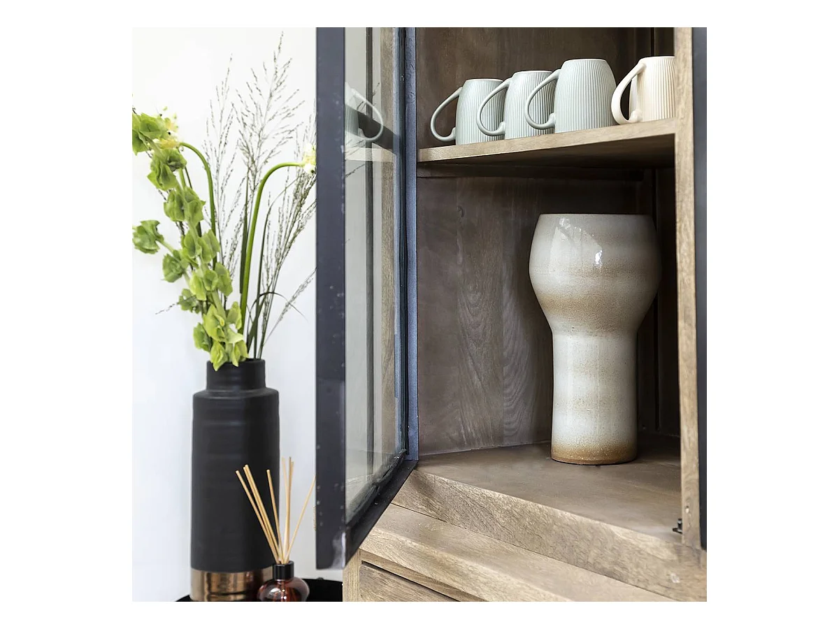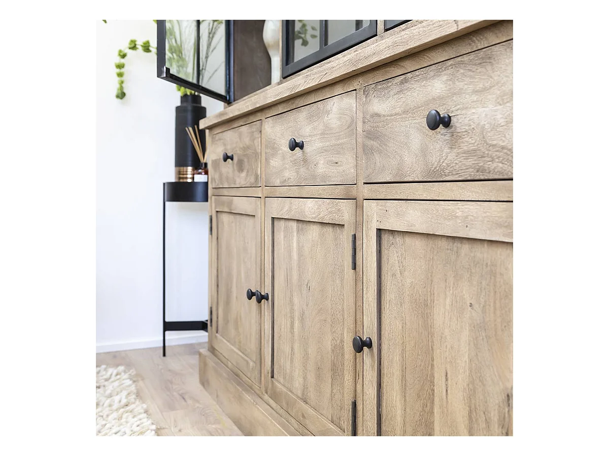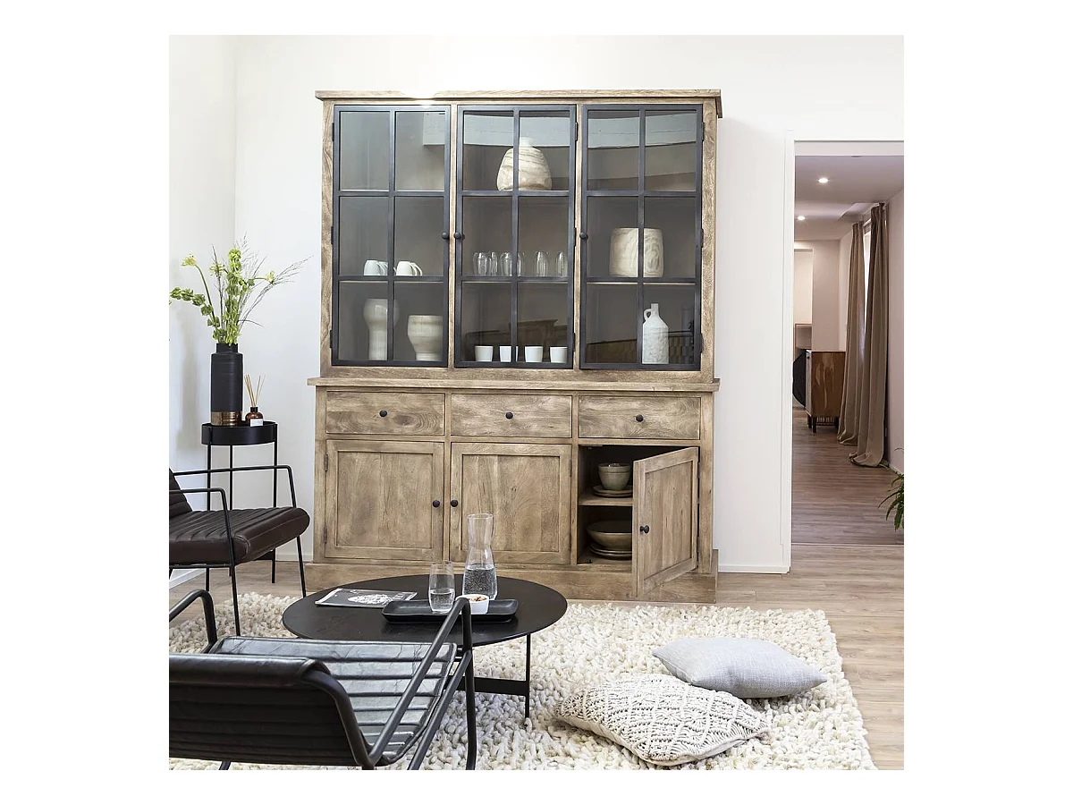 Vaisselier en bois de manguier brossée et métal noir Clotilde