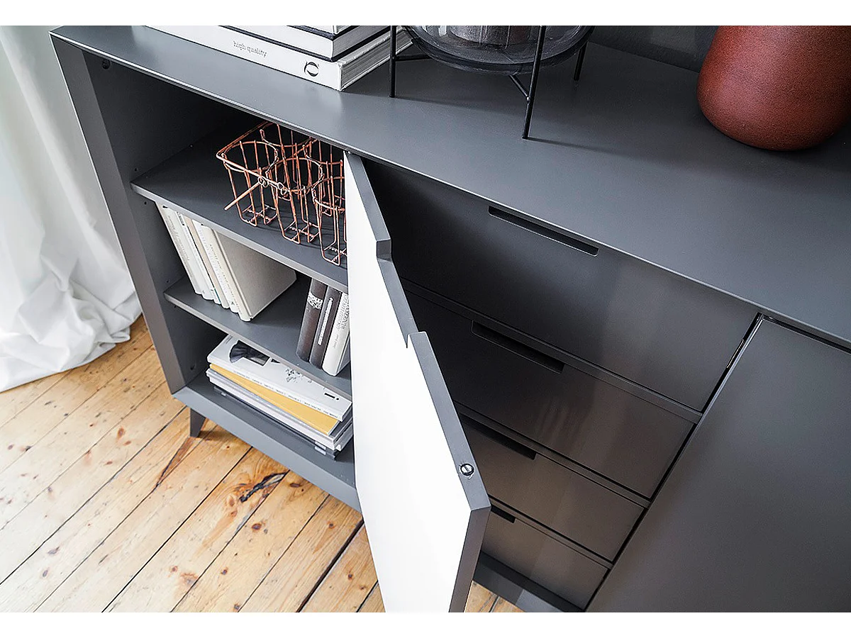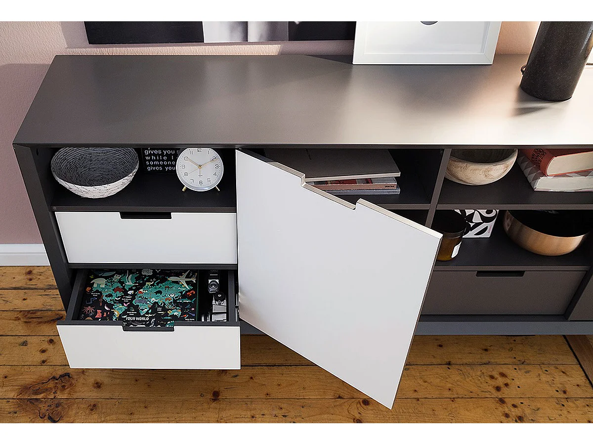 Vaisselier finition laquée gris mat et blanc - Longueur 137 x Hauteur 92 x Profondeur 40 cm