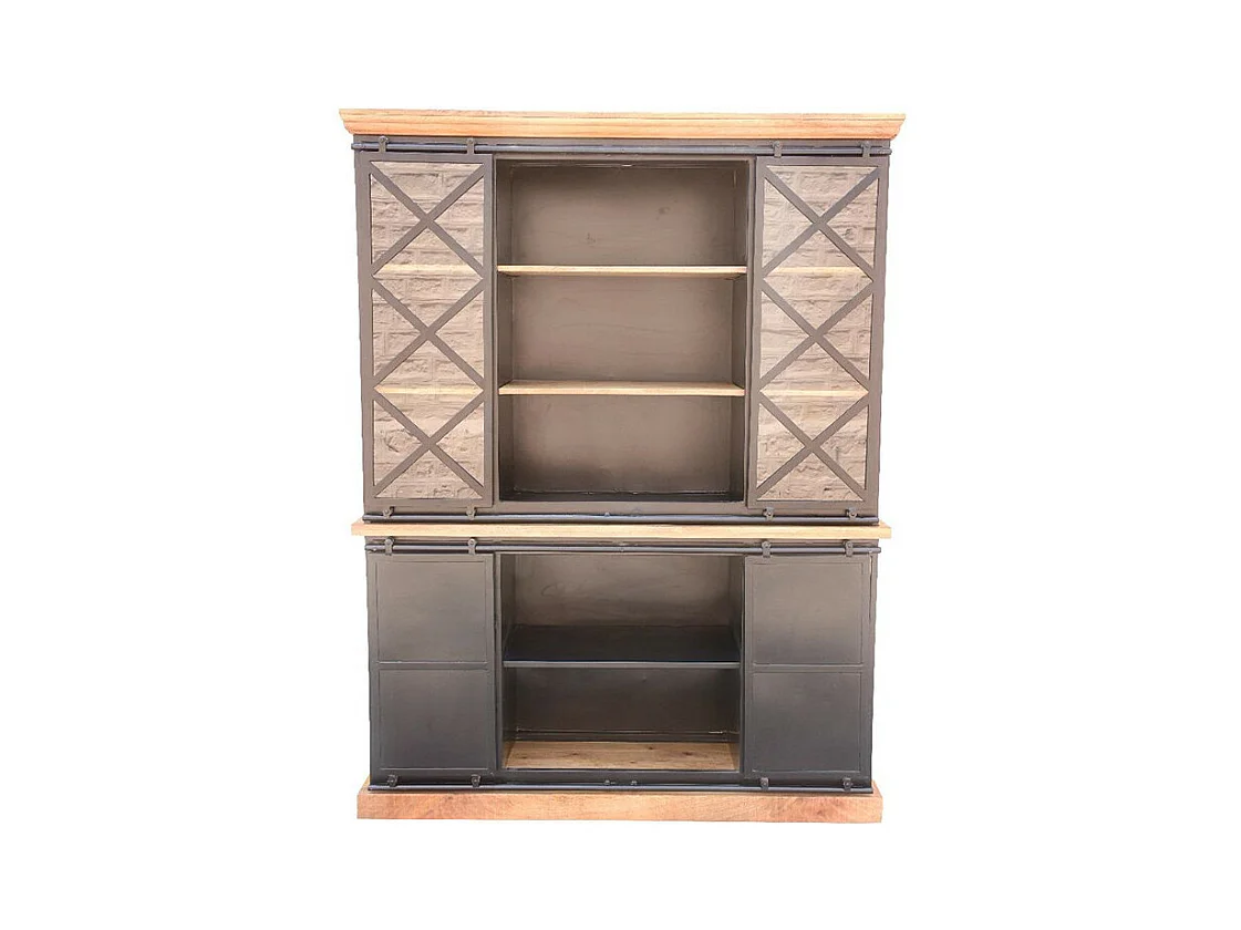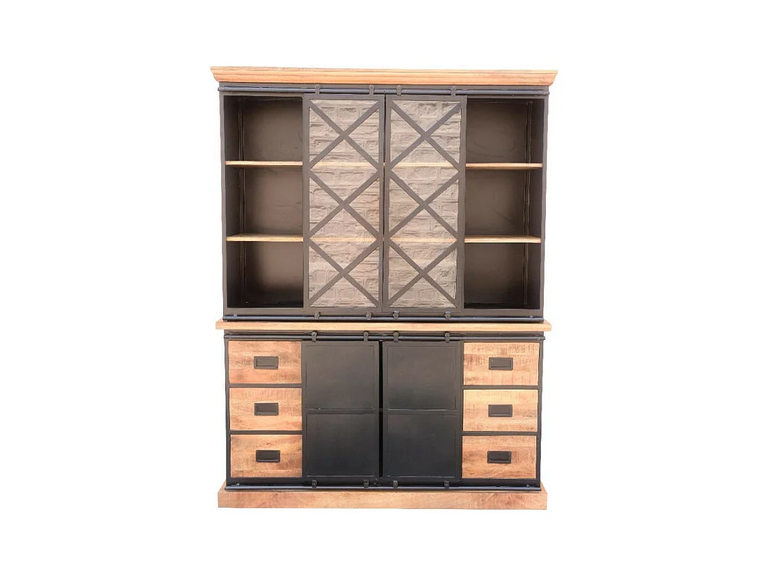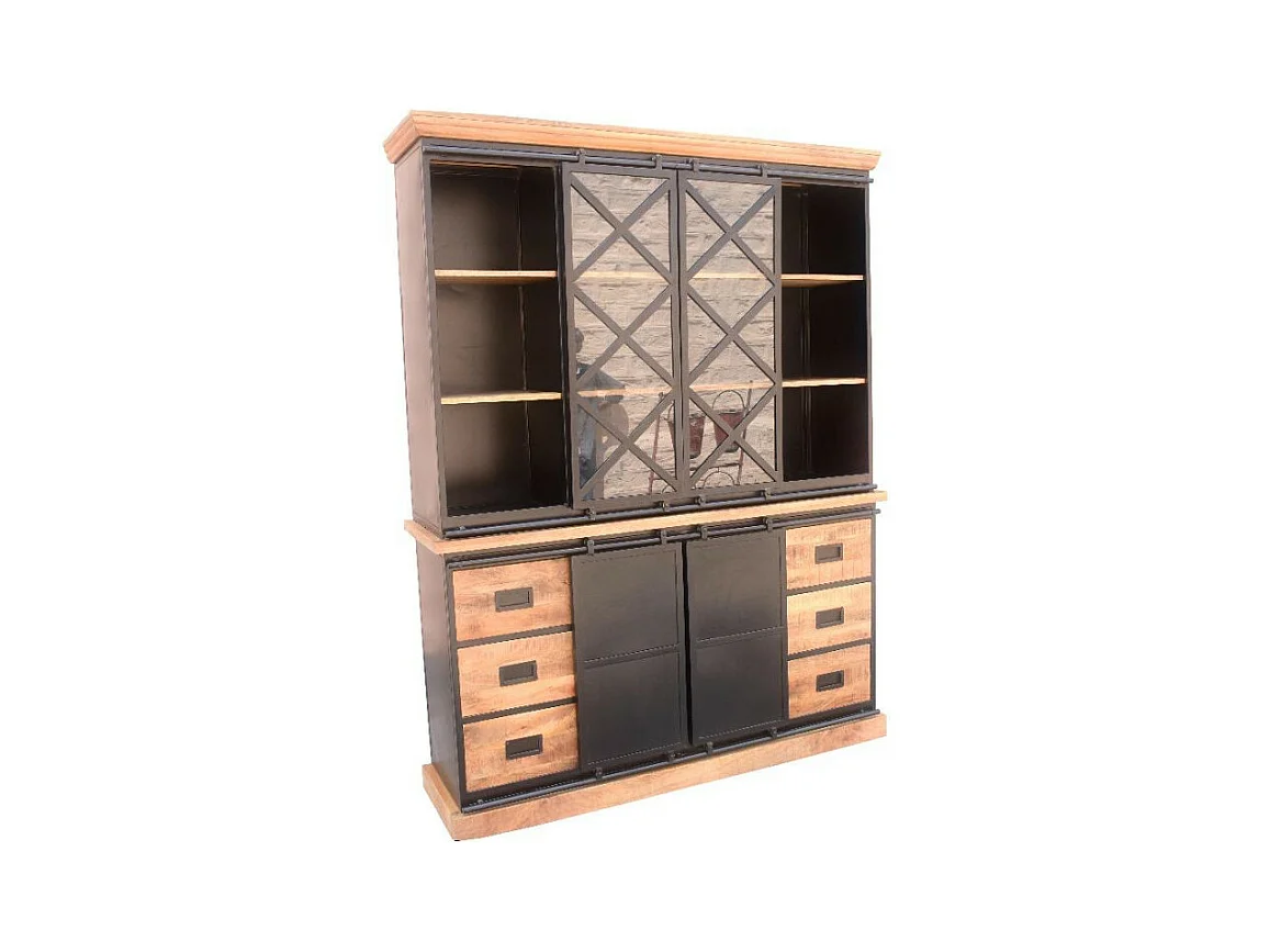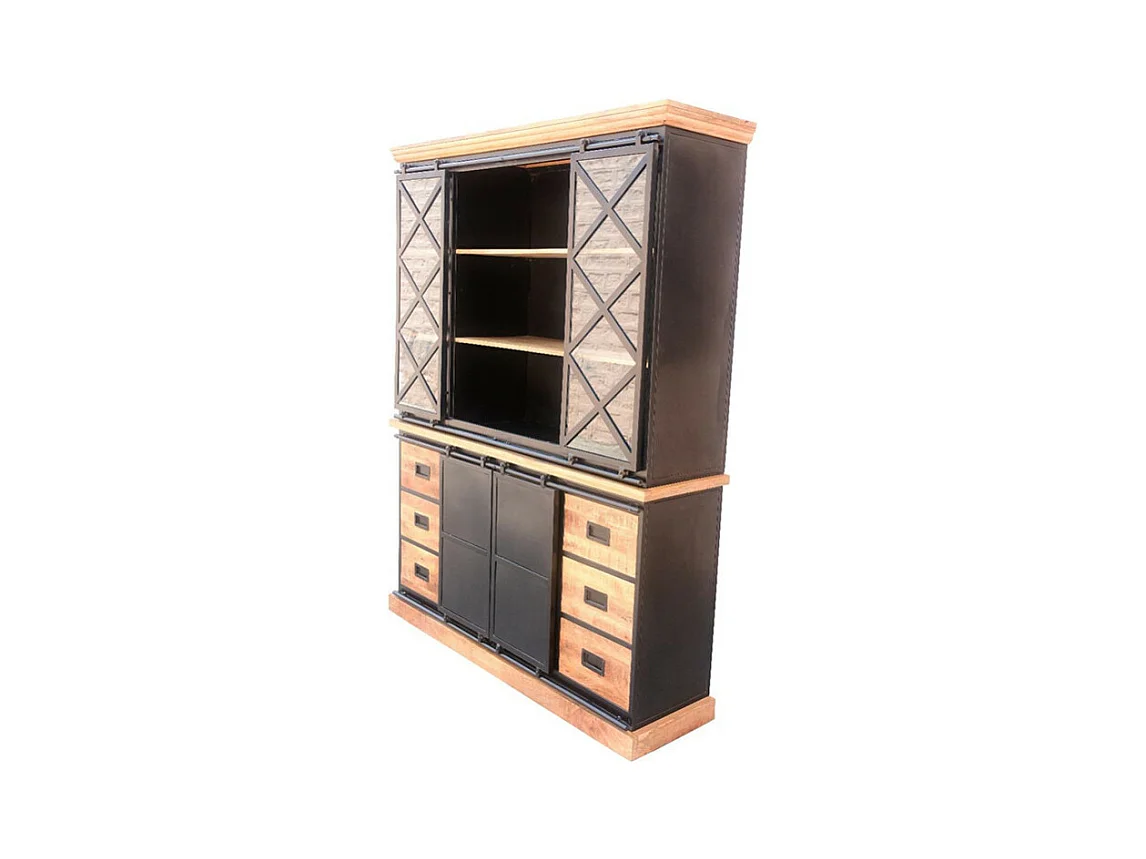 Vaisselier grand modèle Bakou portes coulissantes manguier et métal